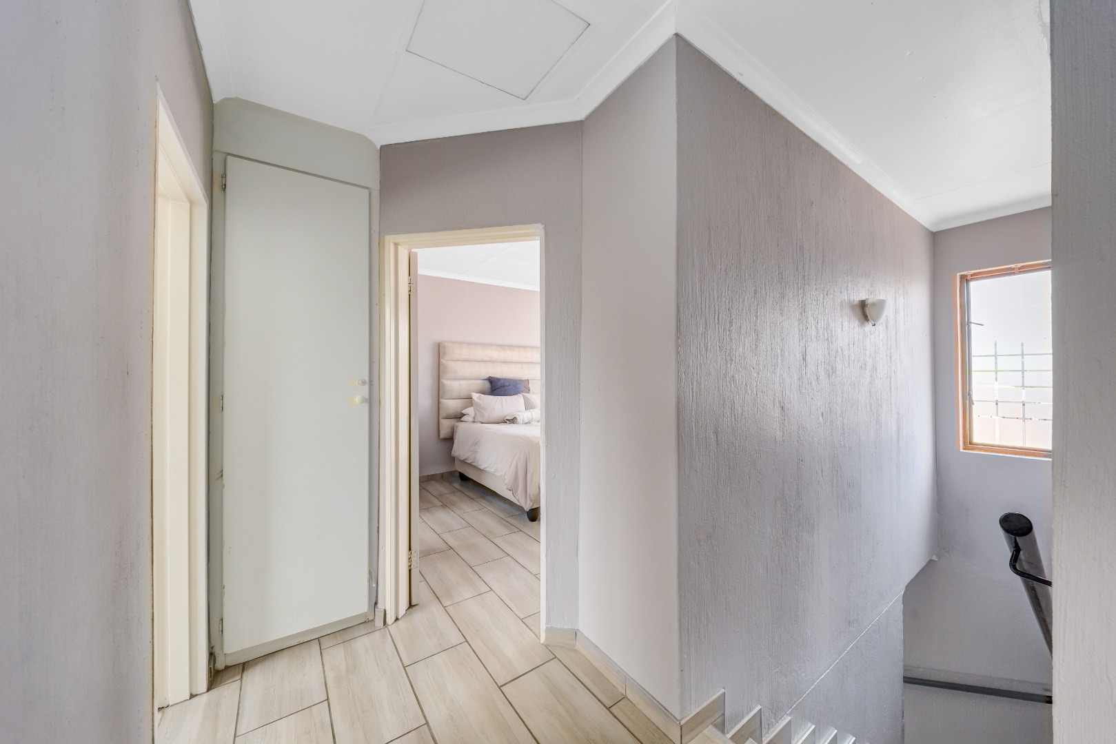 Upstairs - Bright landing with linen cupboard - Generous main bedroom with private balcony – your personal retreat to enjoy morning coffee or evening sunsets - Full en-suite bathroom (bath, shower, vanity and toilet) - 2 additional well-sized bedrooms with built-in cupboards and tiled floors - Second shared family bathroom (bath, basin, toilet)