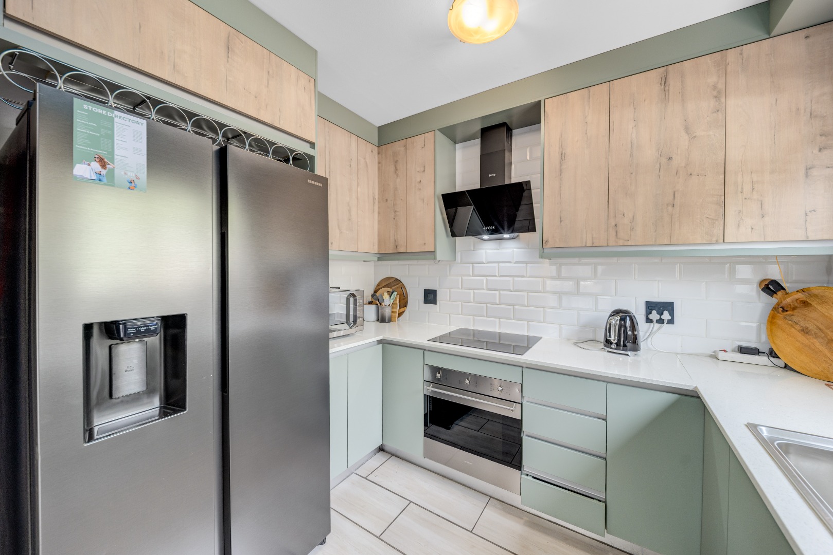 • Electric under-counter oven, glass hob and extractor fan