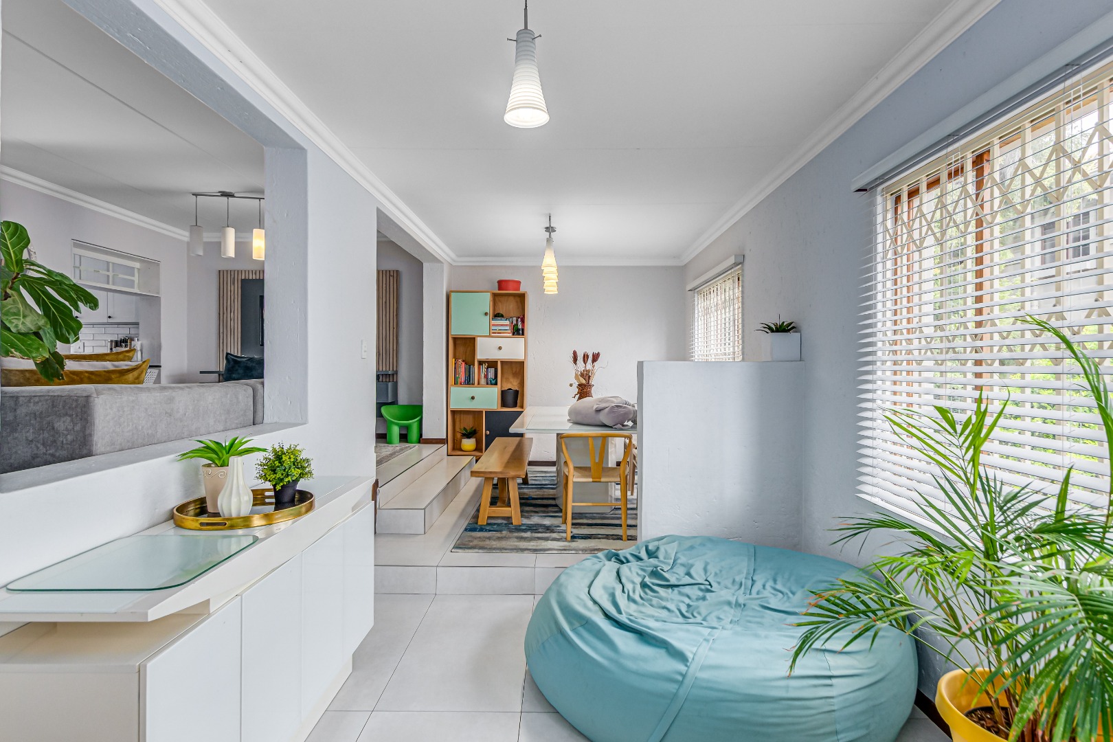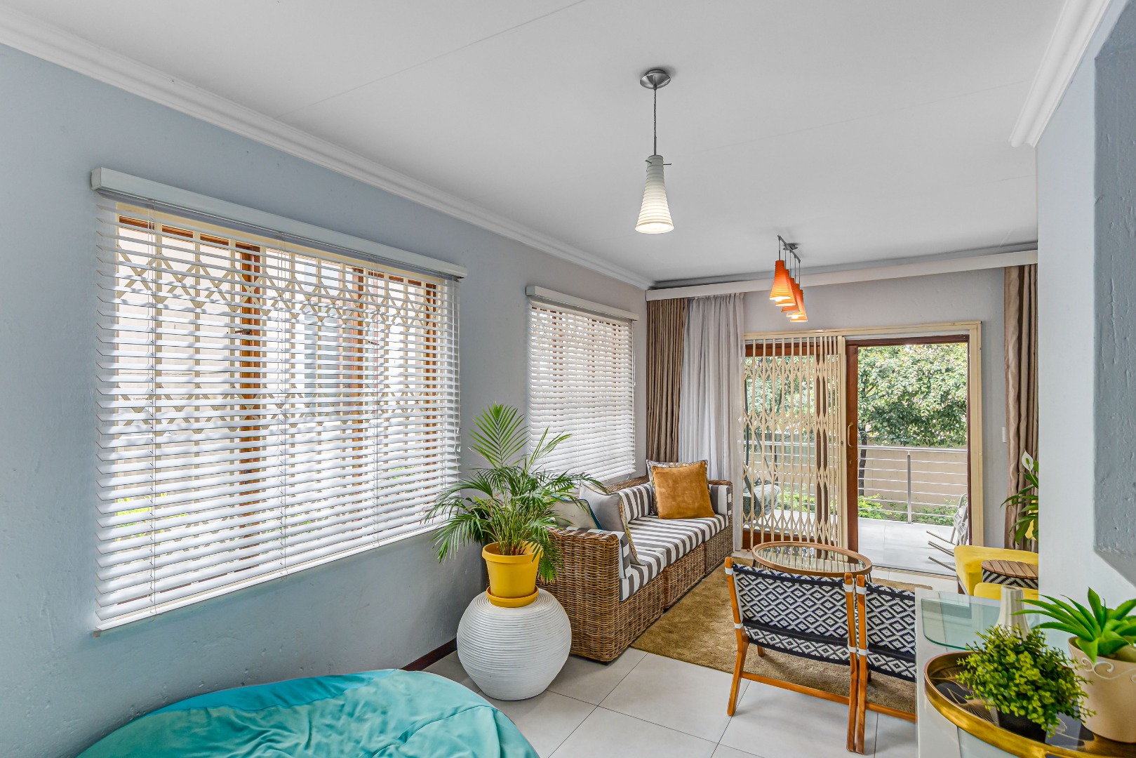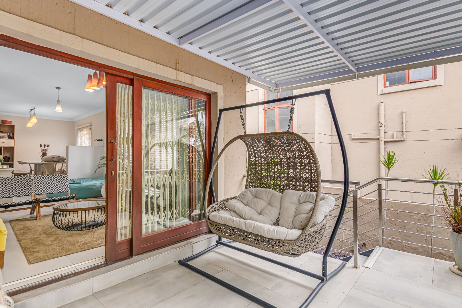Enjoy outdoor living on the private patio, complete with an awning, overlooking a well-maintained garden. The property is pet-friendly and benefits from comprehensive security features including 24-hour security, an access gate, and an intercom system. For sustainable living and energy efficiency, the home is equipped with solar panels and a battery inverter, ensuring reduced utility costs and uninterrupted power. Fibre connectivity is also available.