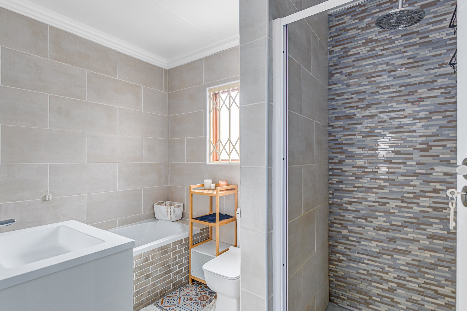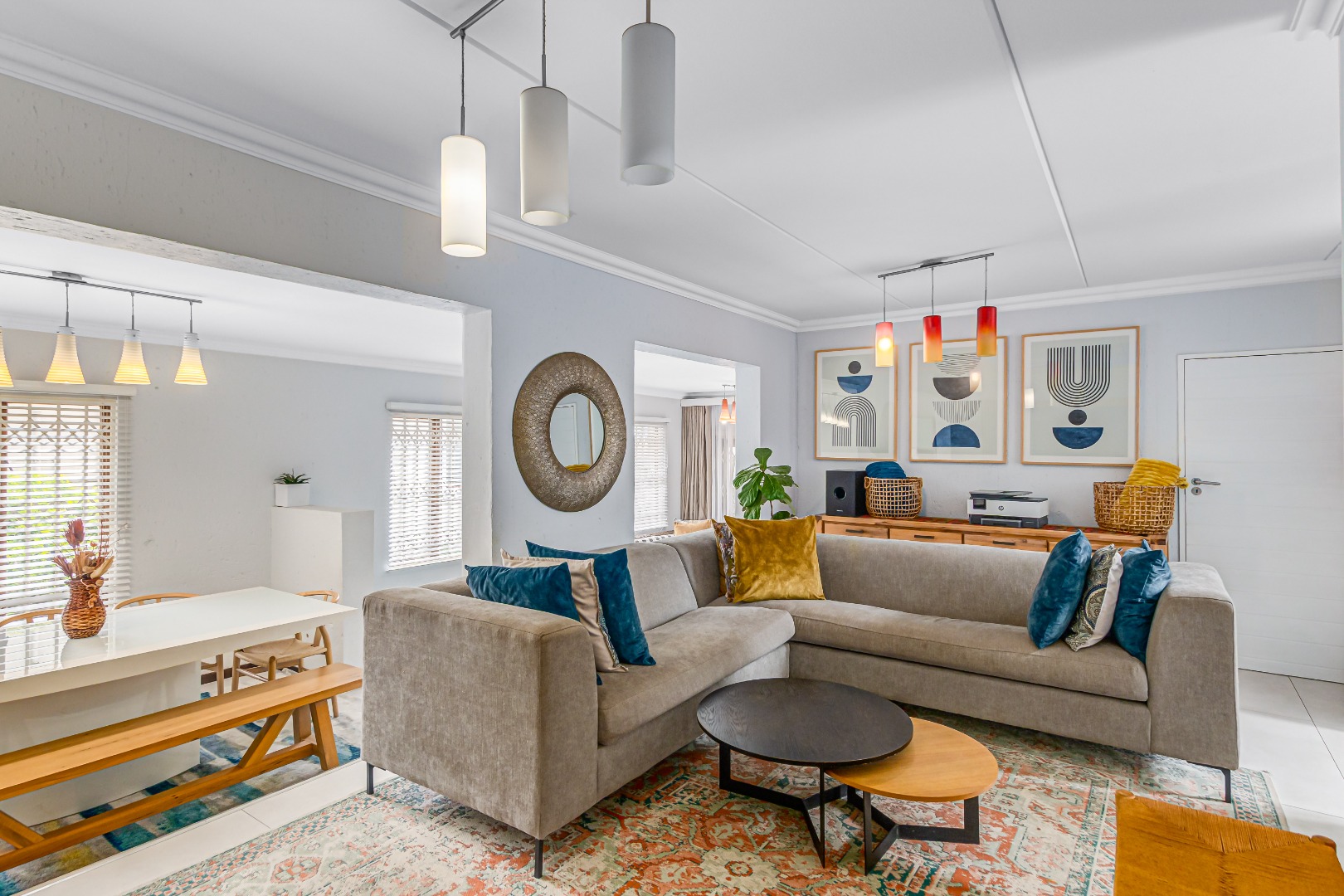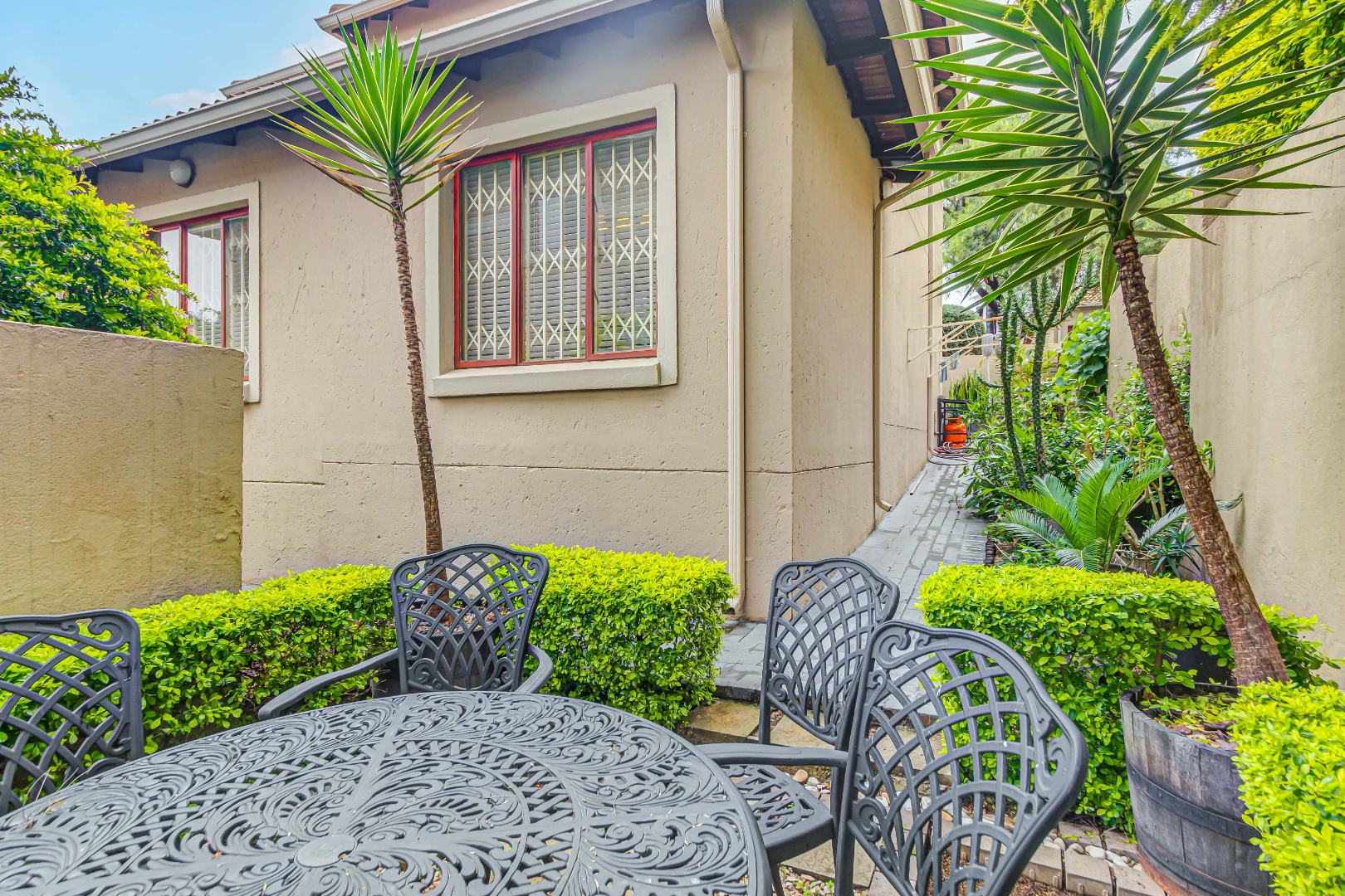 Enjoy outdoor living on the private patio, complete with an awning, overlooking a well-maintained garden. The property is pet-friendly and benefits from comprehensive security features including 24-hour security, an access gate, and an intercom system. For sustainable living and energy efficiency, the home is equipped with solar panels and a battery inverter, ensuring reduced utility costs and uninterrupted power. Fibre connectivity is also available.