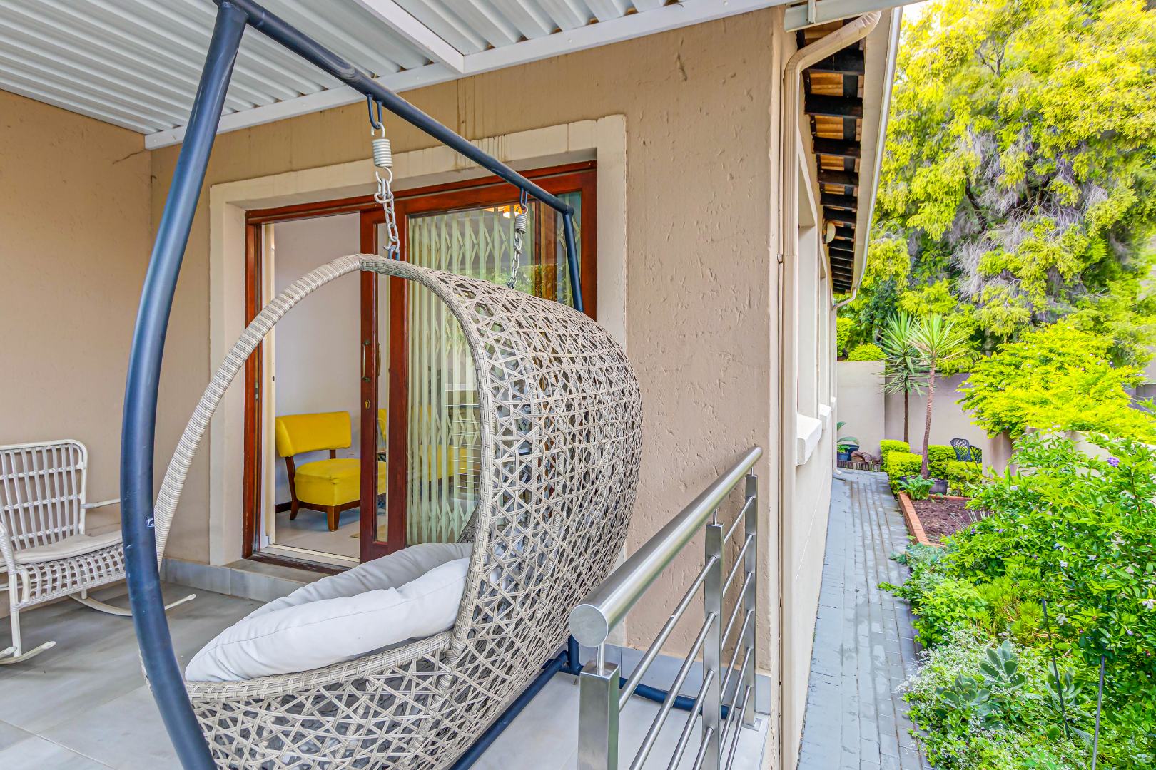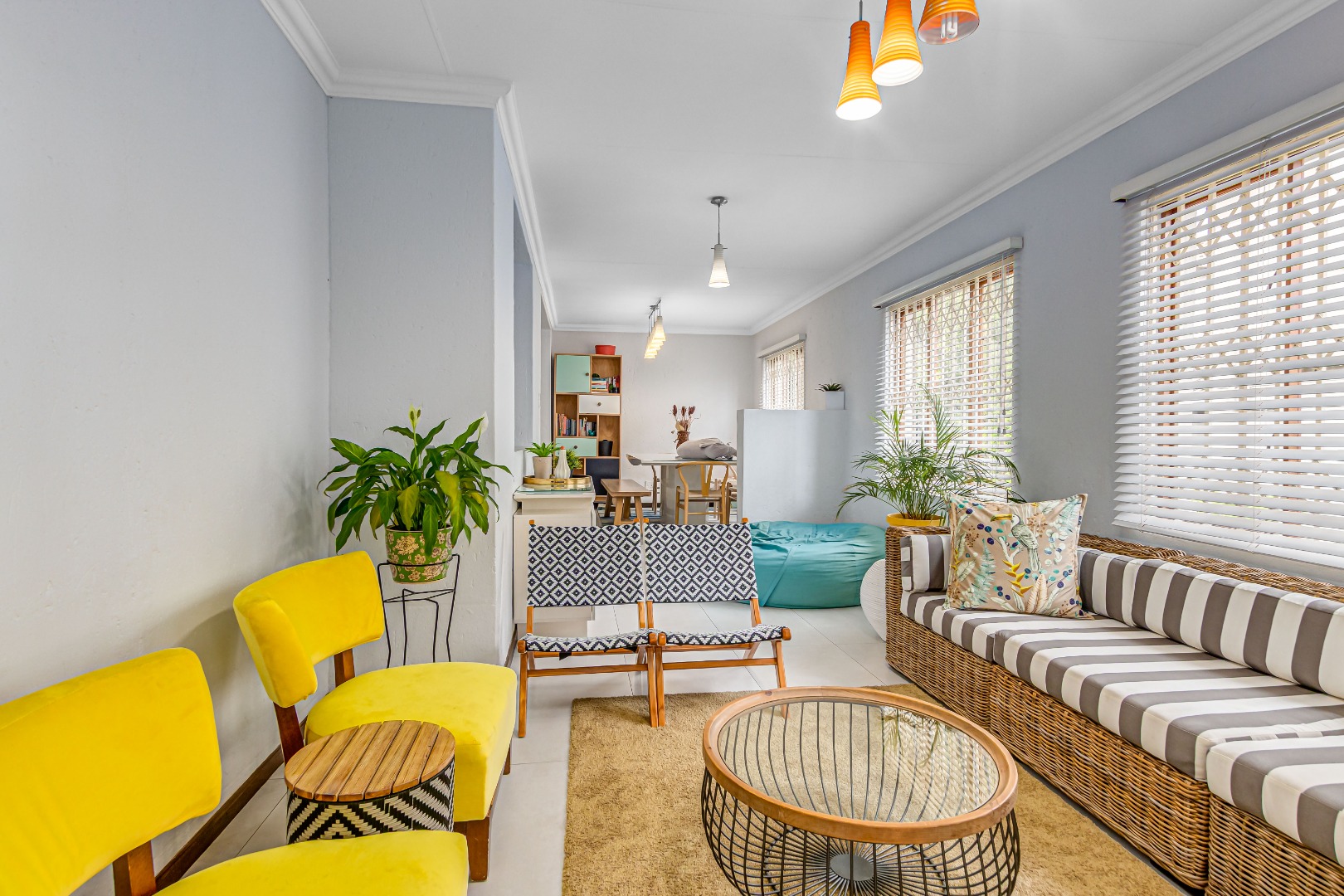 Enjoy outdoor living on the private patio, complete with an awning, overlooking a well-maintained garden. The property is pet-friendly and benefits from comprehensive security features including 24-hour security, an access gate, and an intercom system. For sustainable living and energy efficiency, the home is equipped with solar panels and a battery inverter, ensuring reduced utility costs and uninterrupted power. Fibre connectivity is also available.