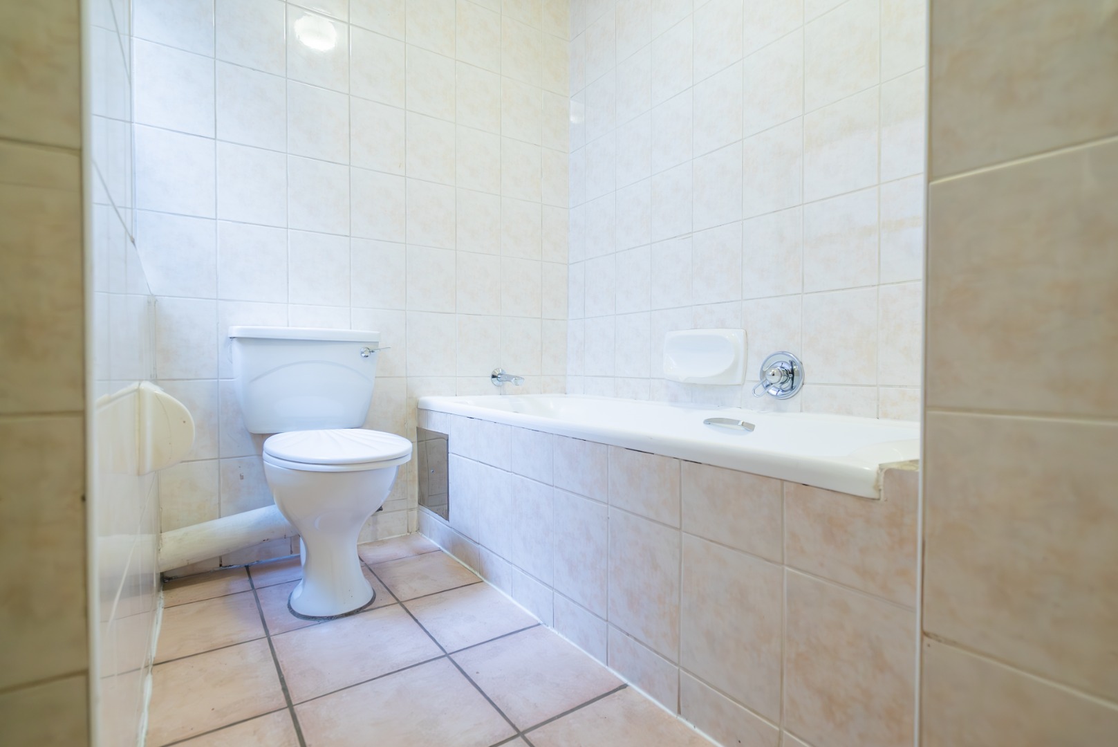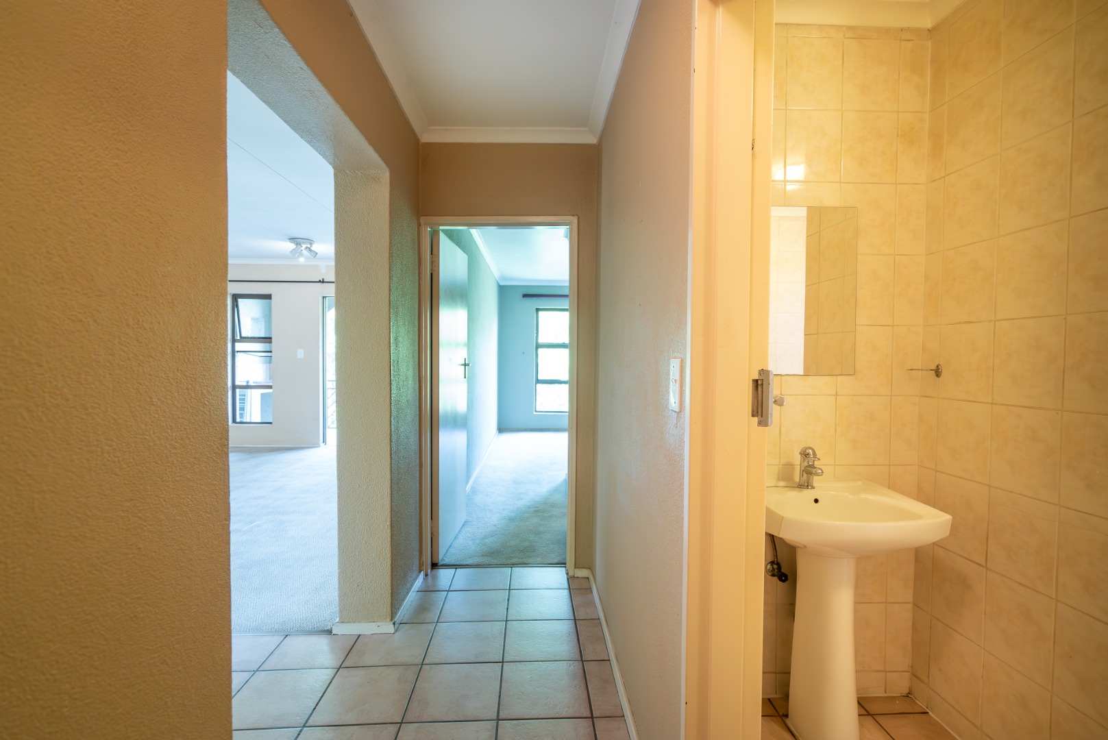 Inside, the layout is straightforward and comfortable. The lounge and bedrooms are carpeted, with the original tiles still in place beneath the lounge carpet should a tiled finish be preferred. Both bedrooms are well sized. The main bedroom has an en-suite bathroom with a shower, while the second bathroom offers a bath.