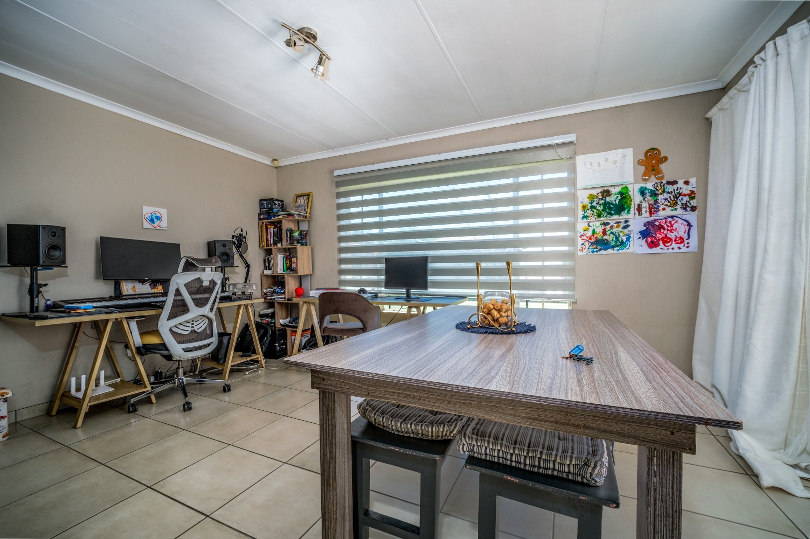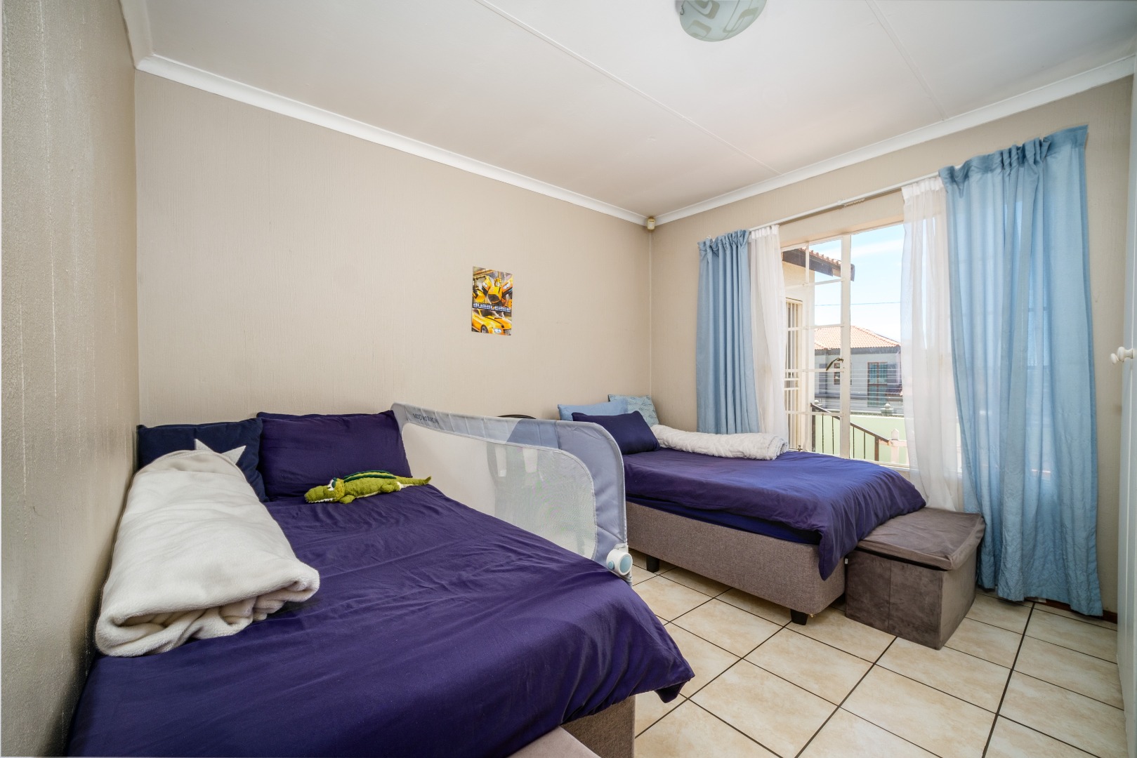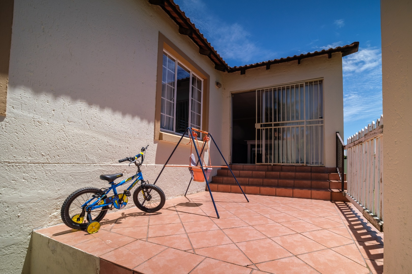 Nestled in the desirable Amorosa suburb of Roodepoort, this property offers convenient living in a well-established South African community. This residential sale presents a fantastic opportunity for those seeking comfort and security. Upon arrival, the residence presents a neat and inviting kerb appeal, featuring a well-maintained tiled roof and an attractive double garage with wooden-look doors. The paved driveway and secure access gate contribute to a welcoming first impression within this security complex, ensuring a tidy and consistent architectural style. Step inside to discover an open-plan layout seamlessly connecting the lounge, dining area, and kitchen. The functional kitchen boasts ample white cabinetry, dark speckled countertops, a double sink, and an integrated oven and gas hob, complemented by a practical breakfast bar and a pantry. Tiled flooring extends throughout these living spaces, enhancing the flow and ease of maintenance, while large windows ensure abundant natural light. This home offers three comfortable bedrooms, providing ample space for family living. There are two well-appointed bathrooms, with one being an en-suite, ensuring privacy and convenience for residents. Outside, a private garden and patio area offer a perfect setting for relaxation or entertaining. The property includes a double garage and additional parking, providing secure accommodation for vehicles. Situated within a secure complex, residents benefit from 24-hour security, an access gate with electric fencing, and an intercom system, ensuring peace of mind. Fibre connectivity is available, and a solar water heater contributes to energy efficiency, making this a practical and comfortable choice for modern living. Pets are allowed, adding to the home's appeal. Key Features: * 3 Bedrooms, 2 Bathrooms (1 en-suite) * Open-plan Lounge, Dining, Kitchen * Functional Kitchen with Pantry & Breakfast Bar * Double Garage & Additional Parking * Private Garden & Patio * Secure Complex with 24-hour Security & Electric Fencing * Fibre Ready & Solar Water Heater * Pet-Friendly * Floor Size: 156 sqm
