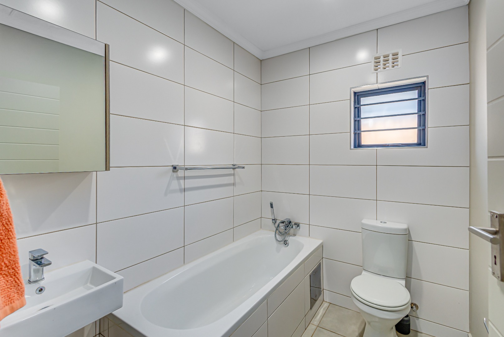 The home offers three well-sized bedrooms, including a main bedroom with an en-suite bathroom complete with a shower, basin, and toilet. The other two bedrooms share a modern bathroom with a bathtub, basin, and toilet β all tastefully designed for comfort and convenience.
