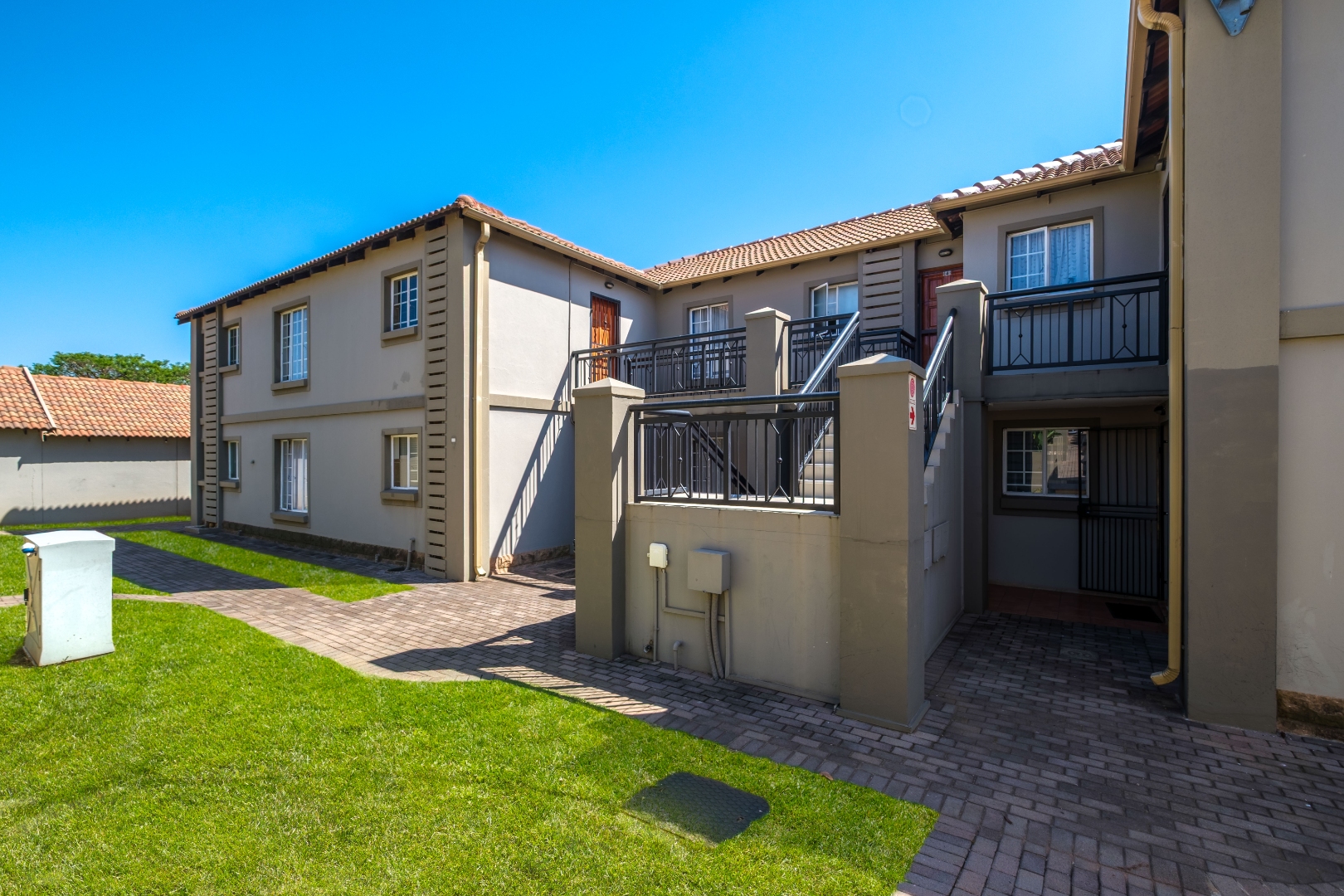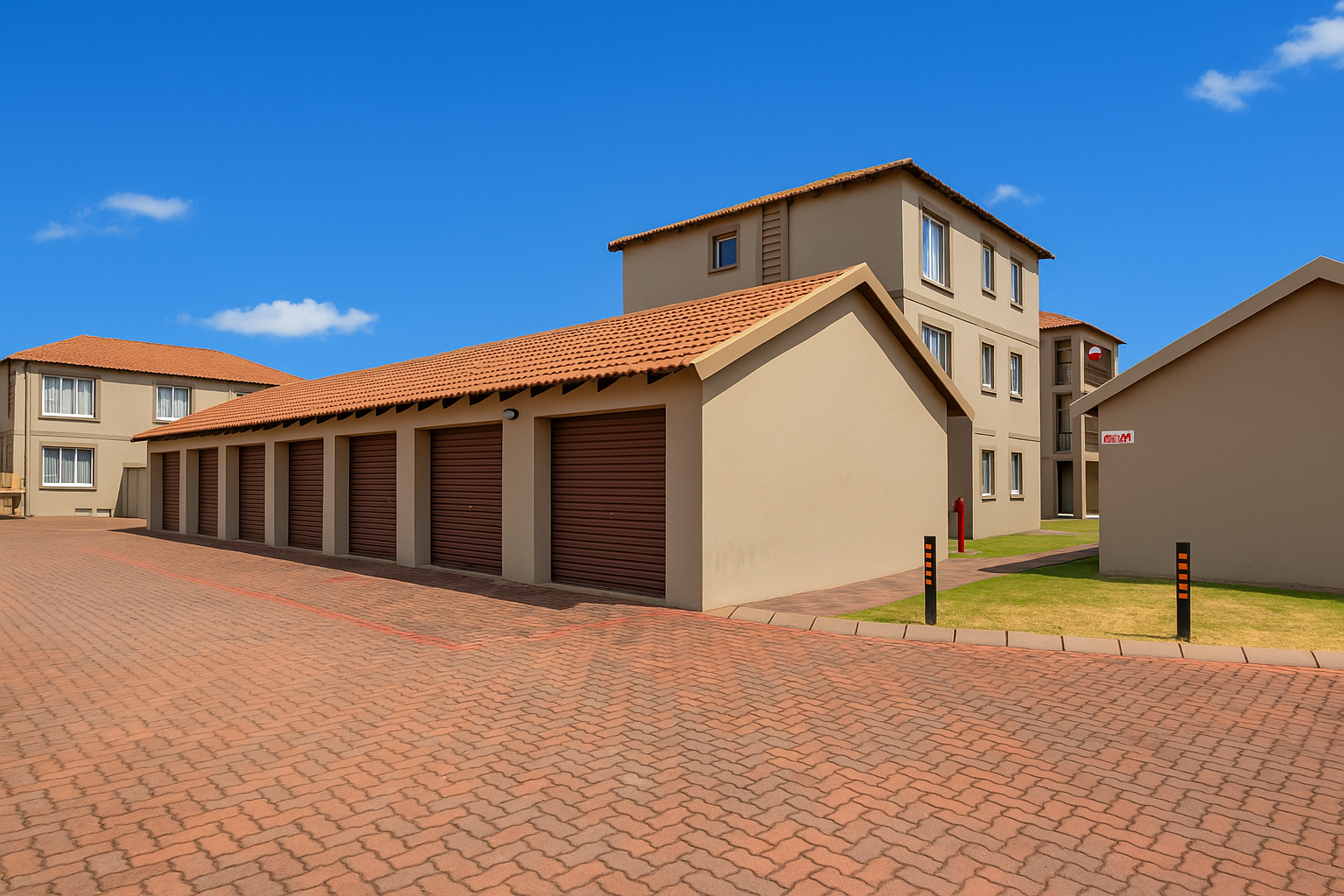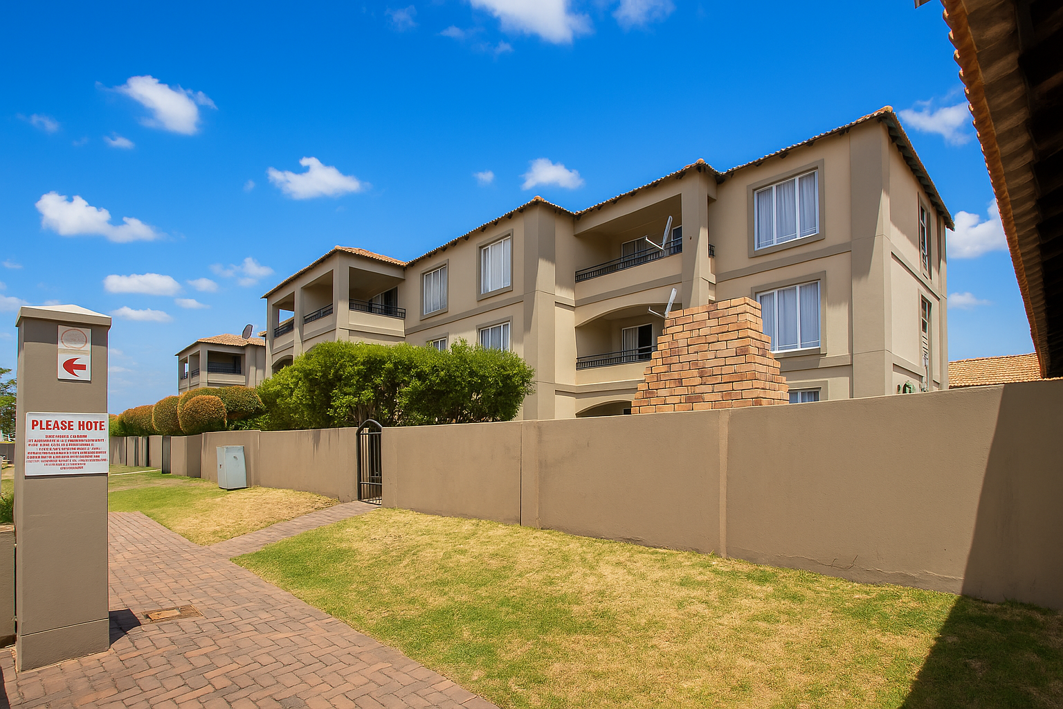 Discover this inviting 2-bedroom, 2-bathroom apartment located in a secure residential complex in the desirable suburban area of Florida Glen, Roodepoort. Boasting a modern Mediterranean-inspired architectural style with light beige stucco-like walls and terracotta-tiled roofs, this property offers excellent kerb appeal and a well-maintained exterior.