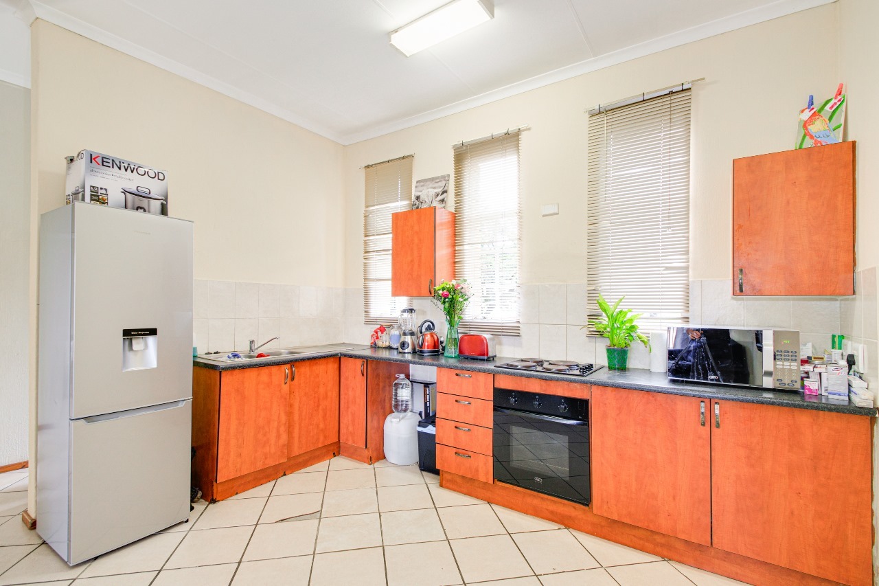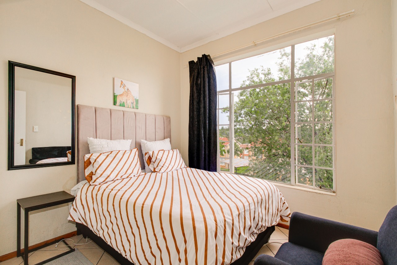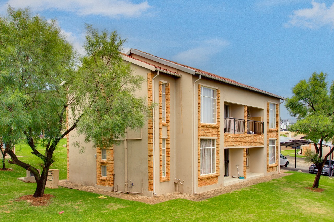 This 2-bedroom, 1-bathroom apartment is situated within a well-maintained residential complex in the vibrant Roodepoort area. The complex boasts a contemporary aesthetic with red-tiled roofs, light-colored walls, and brick accents, complemented by green lawns and mature trees. Residents benefit from dedicated covered parking facilities and the peace of mind offered by a secure complex environment. The property's kerb appeal is enhanced by its tidy presentation and thoughtful design, featuring paved roads and individual unit balconies.