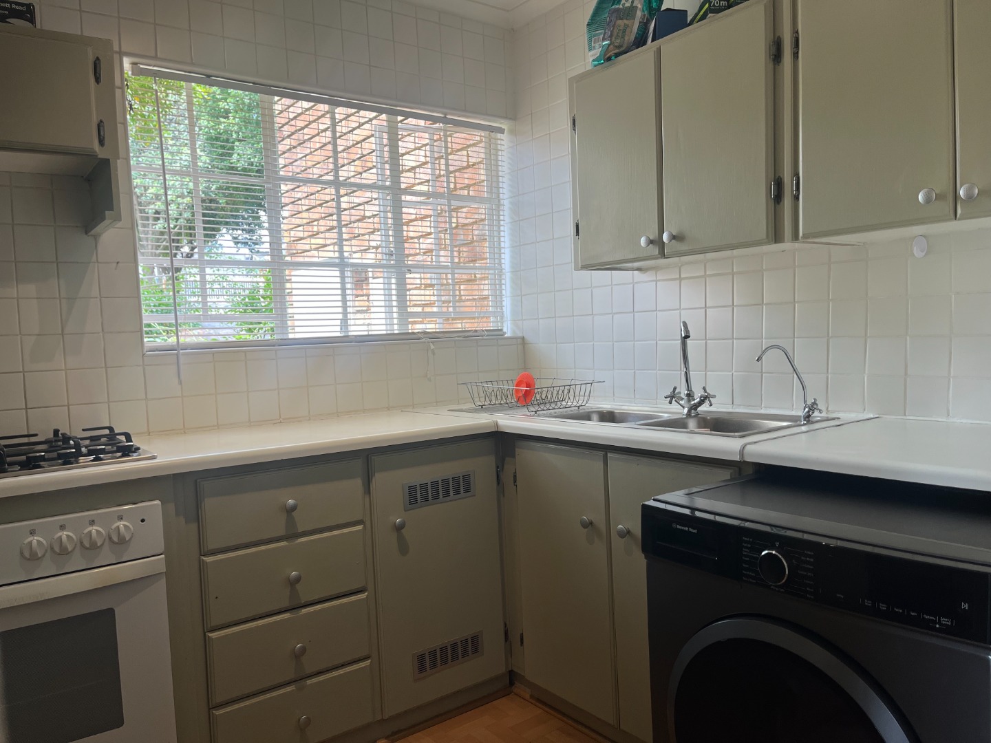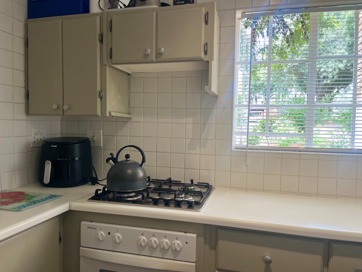 Step inside to a light-filled living space that opens onto a private garden, framed by lush greenery. The layout is practical and inviting, with two well-sized bedrooms and a full bathroom. Outside, the complex offers secure access control and a warm, community feel.