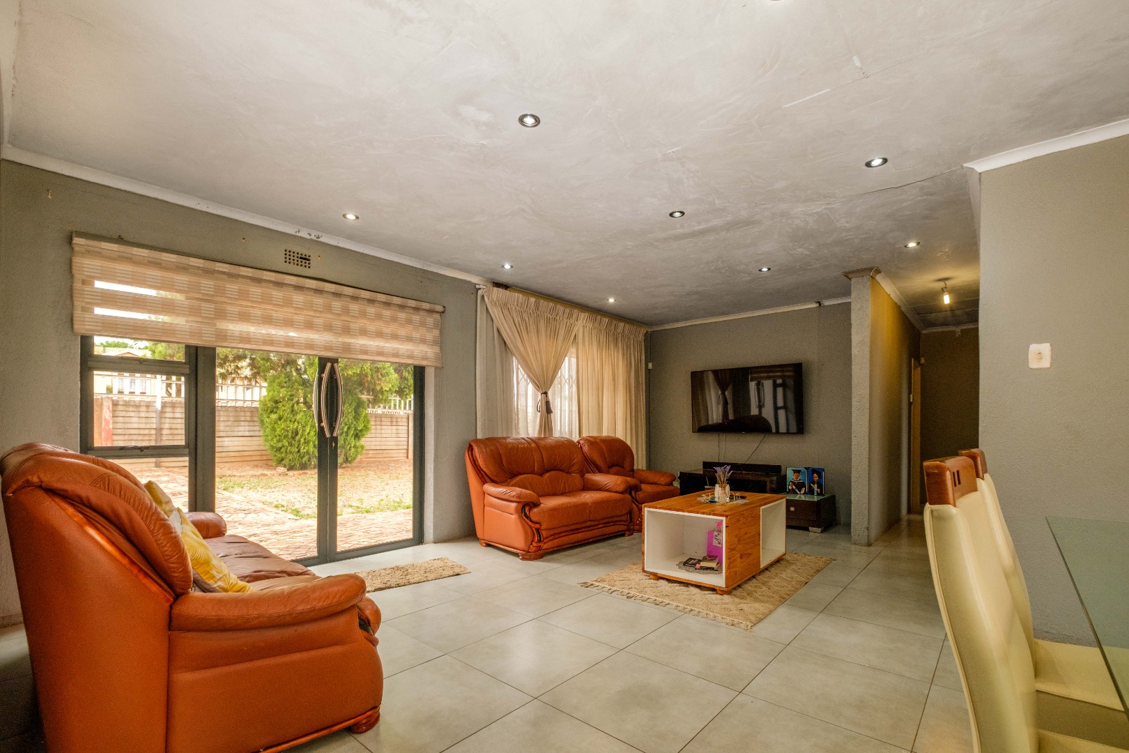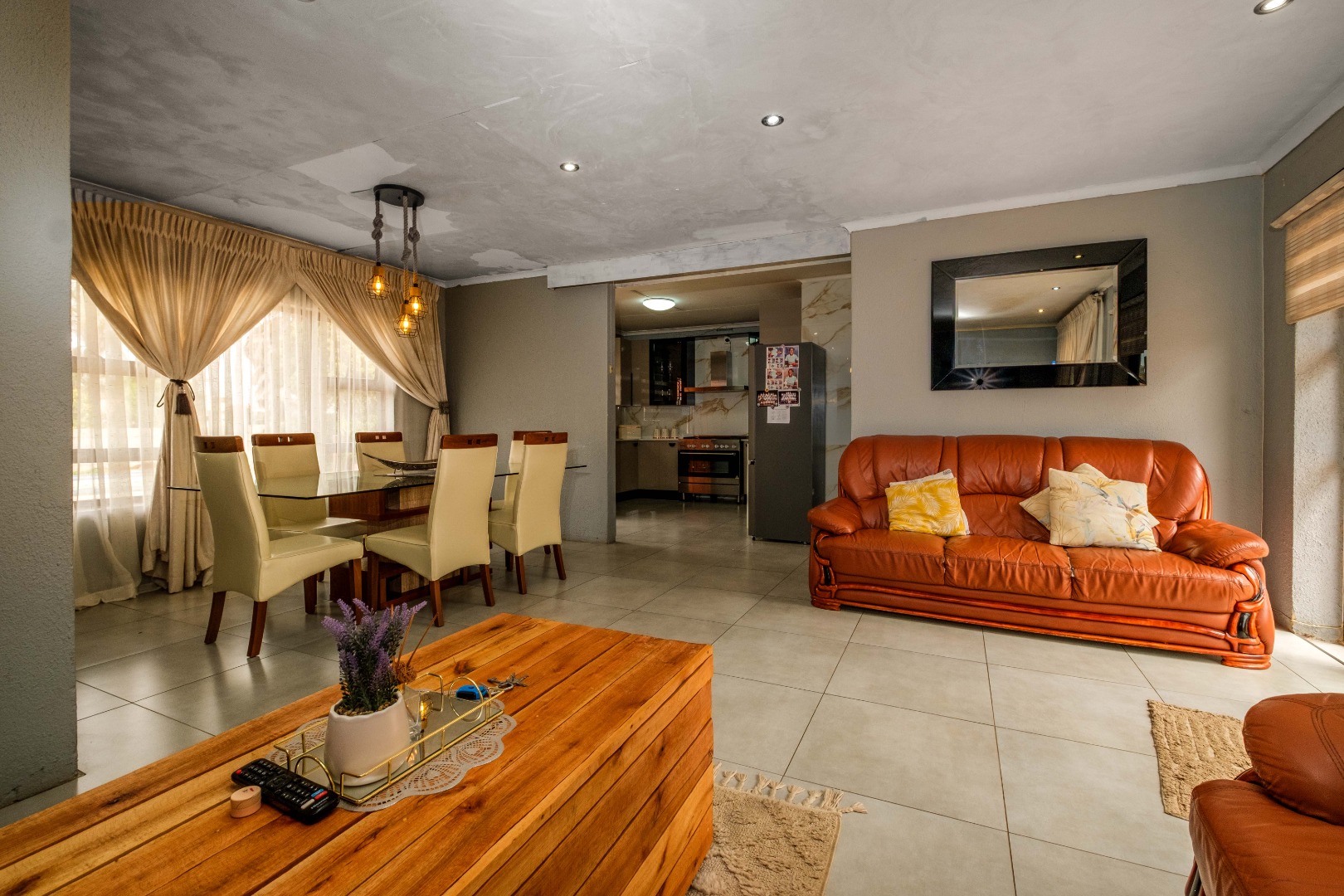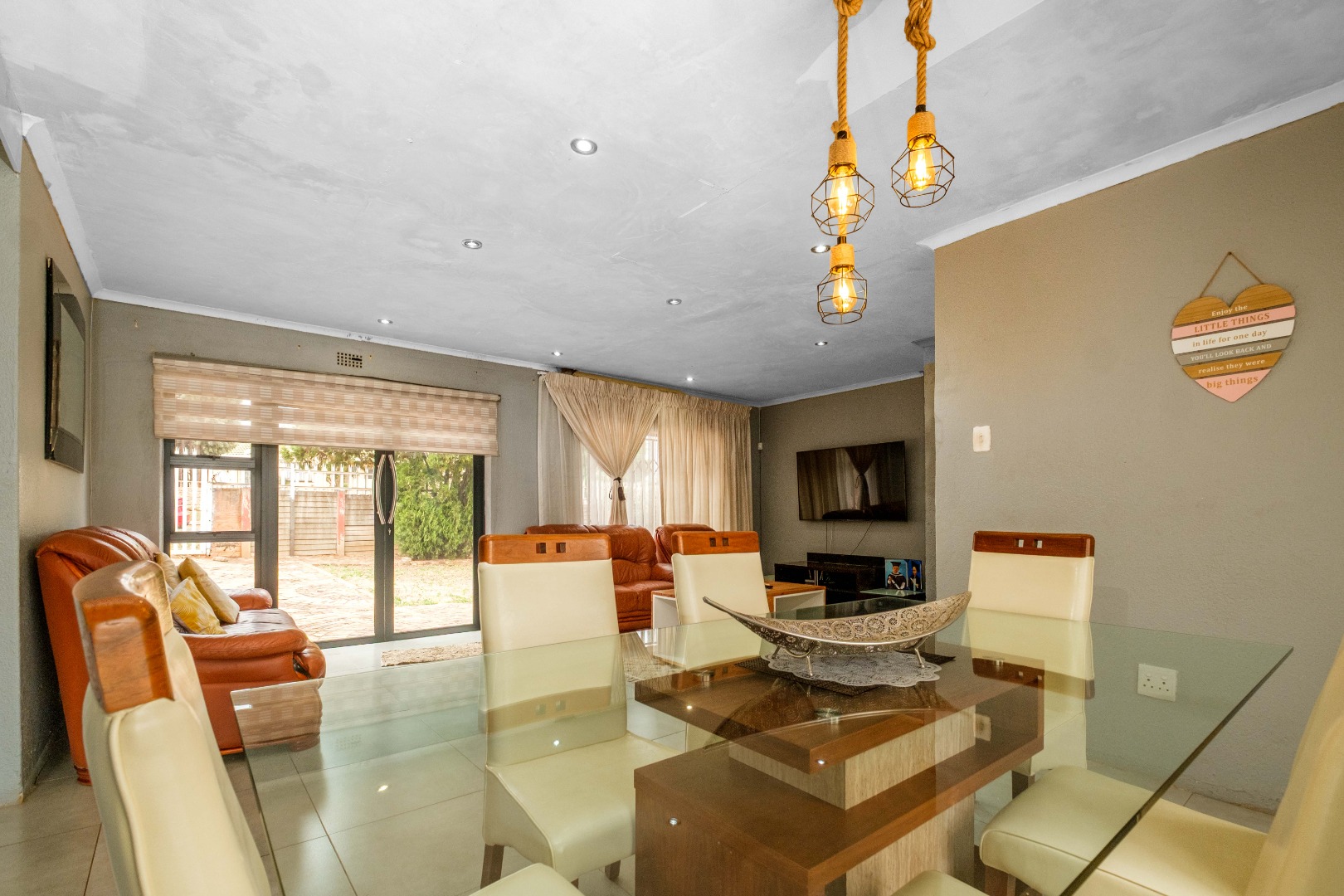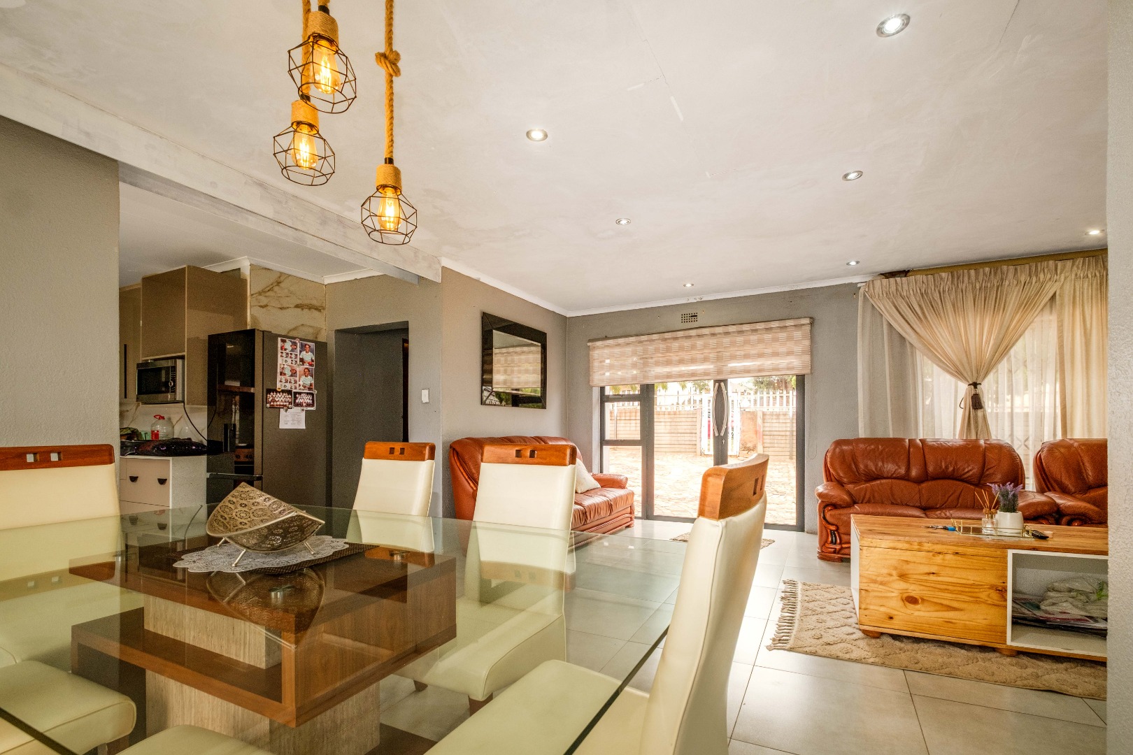 Step inside to a warm and inviting living and dining area, filled with natural light and featuring modern finishes. The open-plan layout creates a seamless flow, with a stylish dining space leading into the cozy lounge—perfect for family gatherings or relaxed evenings at home.