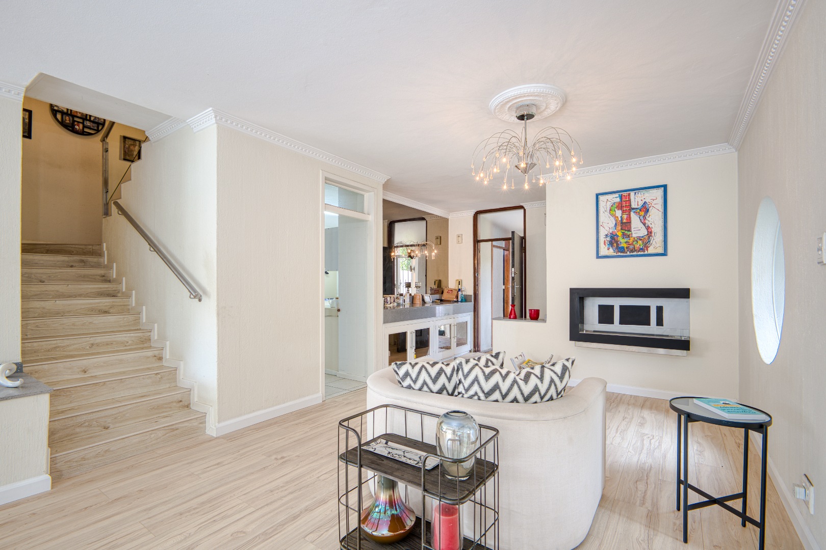 Huge Garden | Covered Patio | InverterA beautifully renovated townhouse offering an exceptional lifestyle of comfort, space and tranquility. Set within a magnificent wrap-around garden on the north and west sides, this impressive residence boasts 293sqm under roof and the convenience of a power-backup inverter system.From the moment you enter, the home feels bright, spacious and welcoming, with abundant natural light streaming throughout. The entrance, finished with elegant laminated flooring, leads to a guest bathroom, a generous kitchen, and into a stylish open-plan lounge and dining area complete with a charming gas fireplace.The living space flows effortlessly onto a 33sqm covered patio, perfect for entertaining or relaxing while enjoying the serene garden views.Upstairs, the home offers a luxuriously spacious main en-suite bedroom with a large study area, complemented by two additional well-sized bedrooms and a family bathroom. Thoughtfully positioned windows throughout ensure excellent natural light in every room. Staff quarters , double garage anndA beautifully renovated townhouse offering an exceptional lifestyle of comfort, space and tranquility. Set within a magnificent wrap-around garden on the north and west sides, this impressive residence boasts 293sqm under roof and the convenience of a power-backup inverter system.