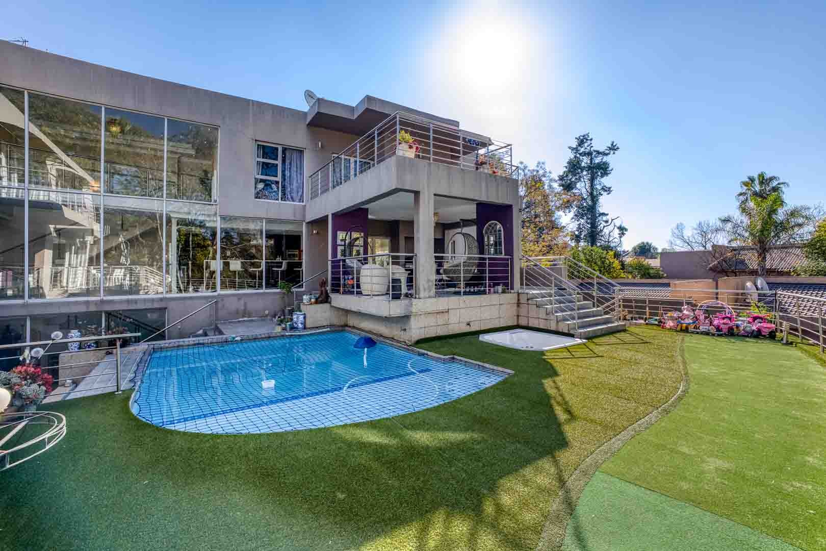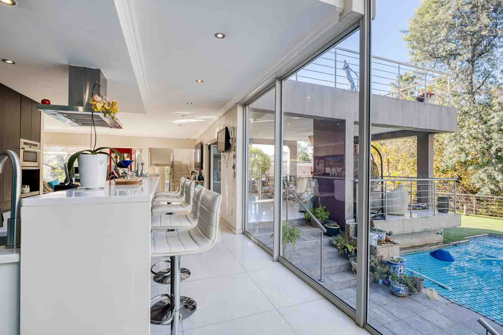 Upon entering, you are welcomed into a beautifully designed open-plan lounge, dining and bar area, and gourmet kitchen—all featuring large north-facing windows and stacking glass doors that flood the home with natural light. These lead onto a spacious covered patio and balcony that overlook a sparkling swimming pool, a relaxing jacuzzi, and an AstroTurf golf putting green—all set against a well sized garden and expansive Lapa. This thoughtfully designed outdoor entertainment area is ideal for hosting or unwinding in privacy.