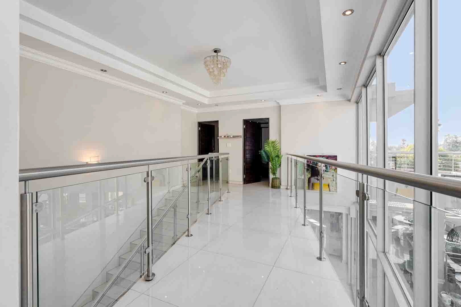 Nestled within a secure, gated road with 24-hour access control, this exquisite multi-storey home offers refined living in a tranquil setting. A private pan-handle driveway leads you to a magnificent residence that is fully tiled throughout, showcasing seamless indoor-outdoor living and an entertainer’s dream. Equipped with a generator and Inverter.