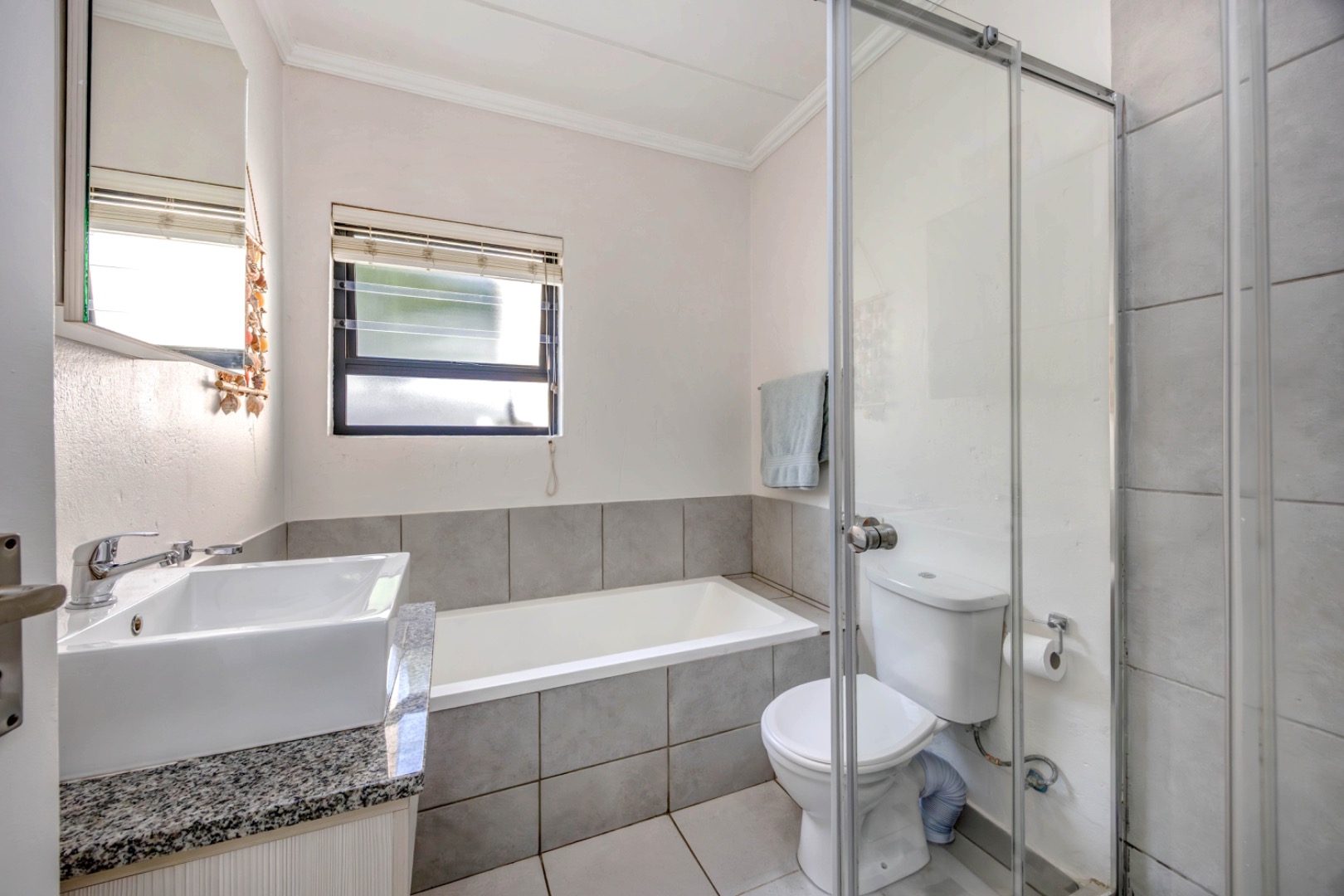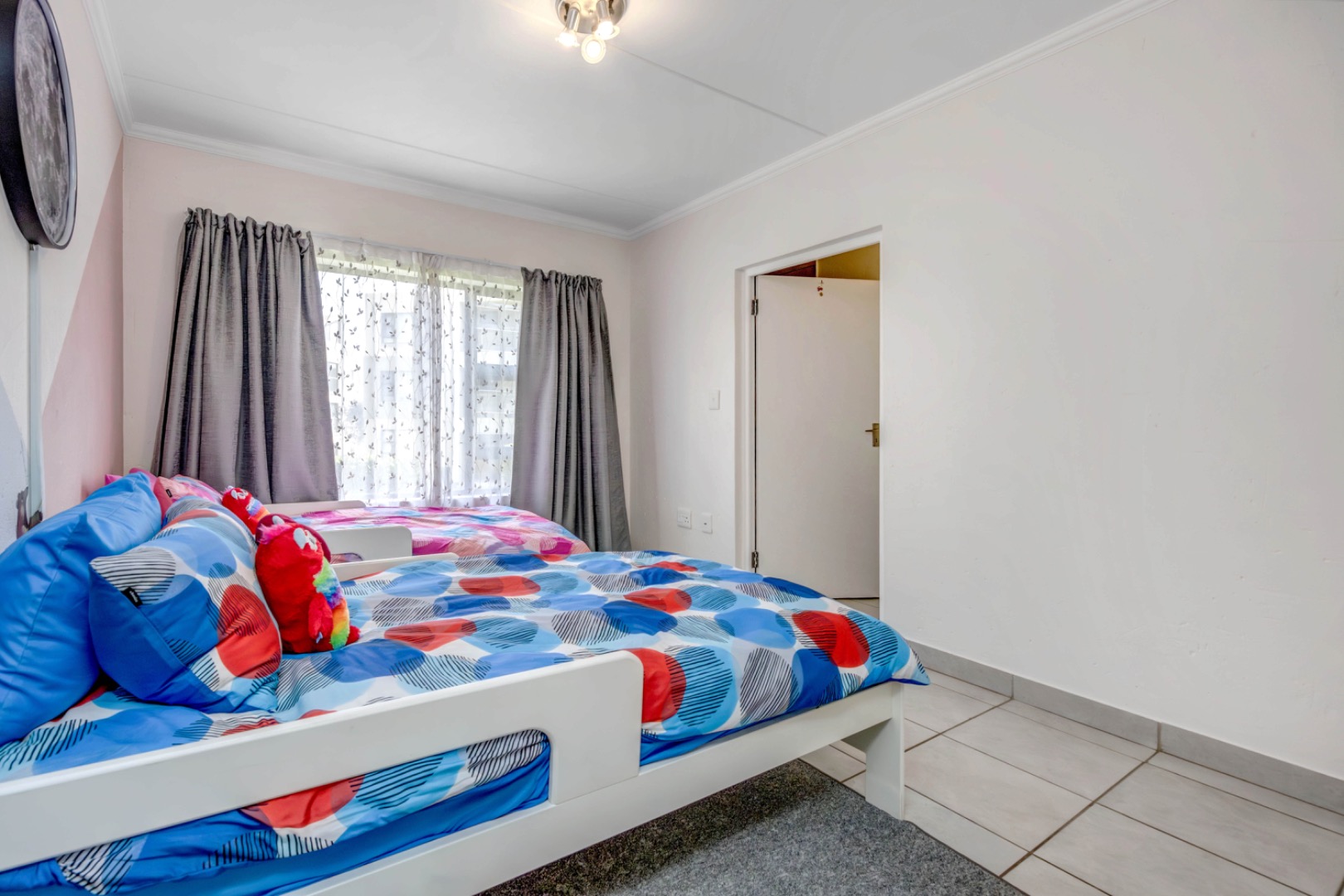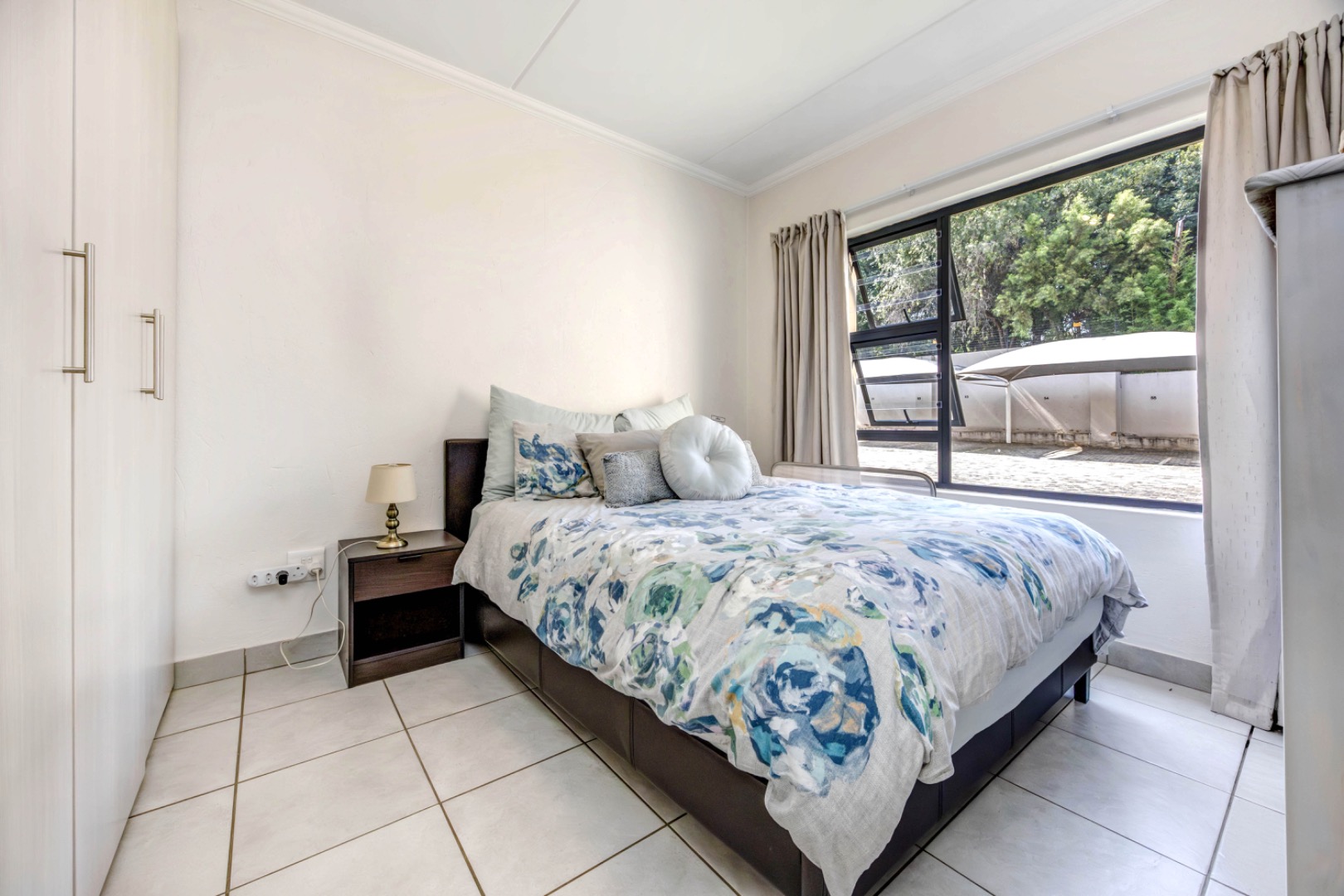 The property comprises two well-proportioned bedrooms, with the main bedroom benefiting from an en-suite bathroom for added privacy and convenience. Residents of this security complex enjoy access to a range of communal amenities, including a refreshing swimming pool, a clubhouse for social gatherings, and well-maintained gardens. The complex prioritises safety with 24-hour security, an access gate, and burglar bars on the unit, ensuring peace of mind.