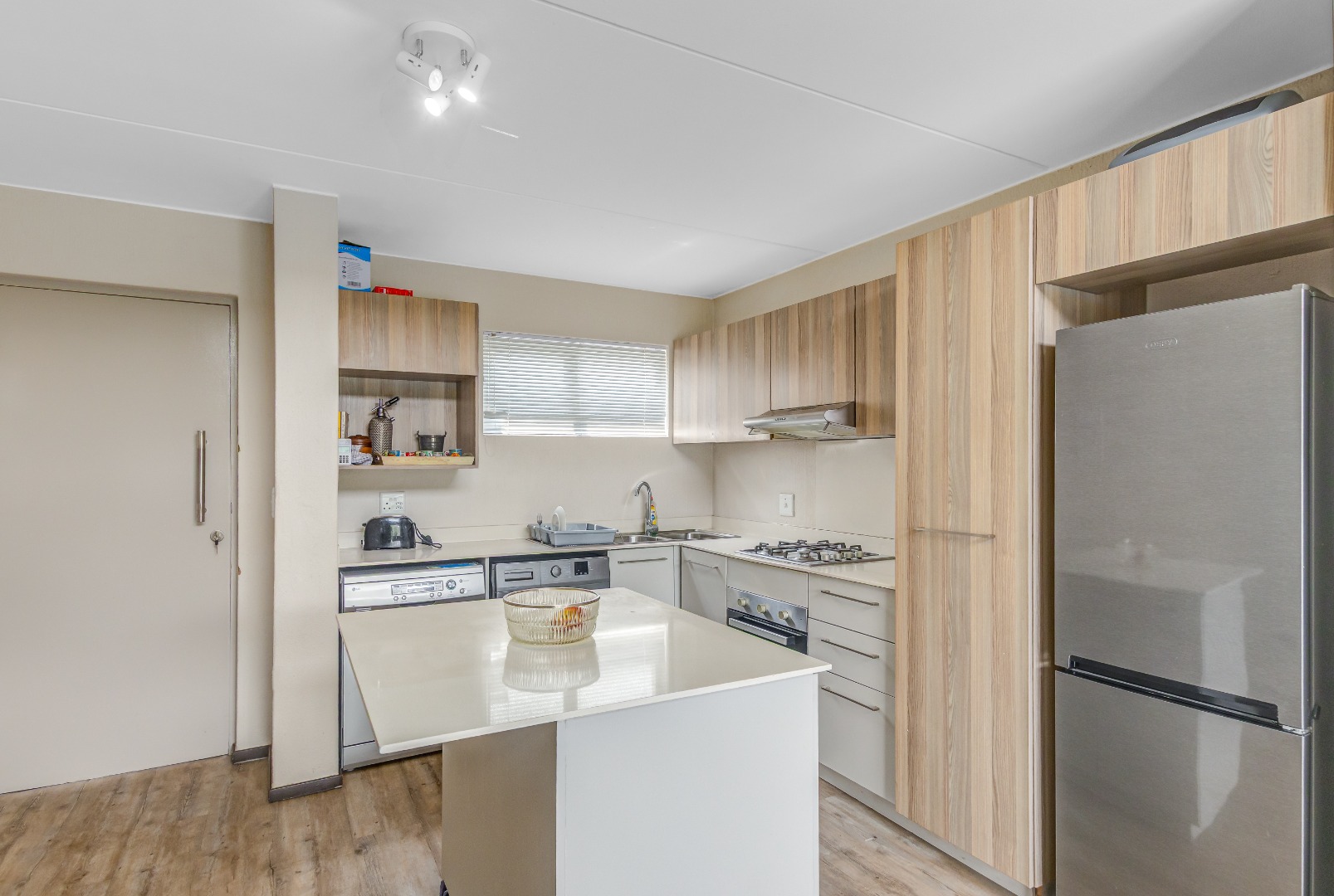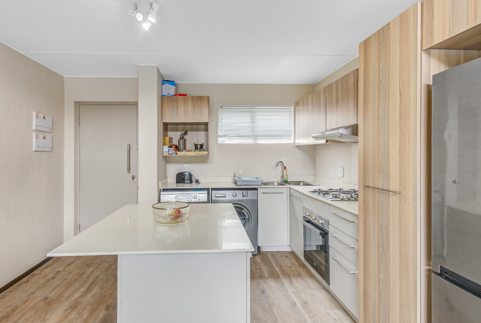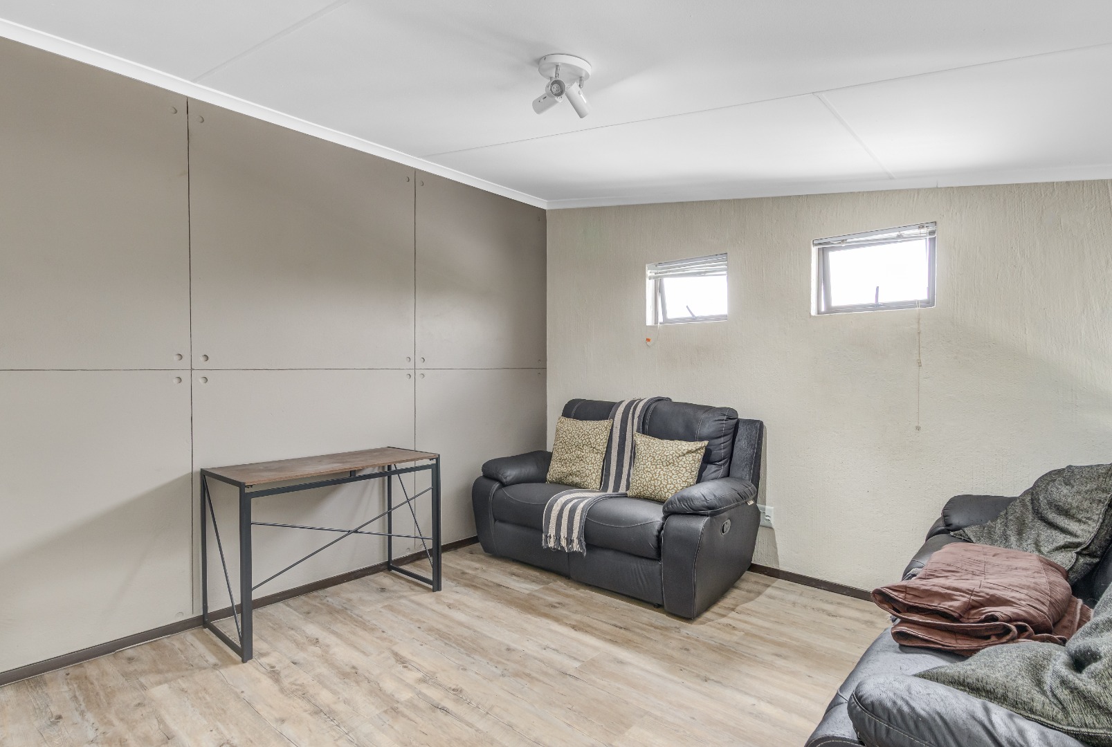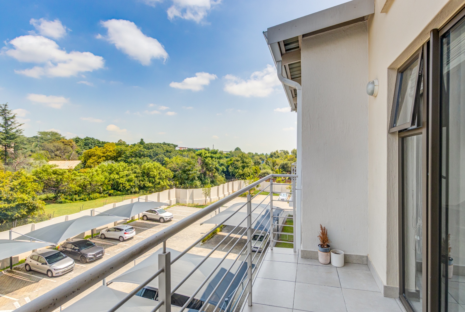 Step into this stylish 2-bedroom, 2-bathroom loft apartment in Broadacres, Sandton! This 82 sqm home offers a fantastic open-plan layout, perfect for contemporary living. High ceilings and expansive windows ensure abundant natural light, creating a bright, airy atmosphere. You'll appreciate the warm light wood laminate flooring throughout and the striking modern open-riser staircase leading to the large wooden floored loft area., adding architectural elegance.