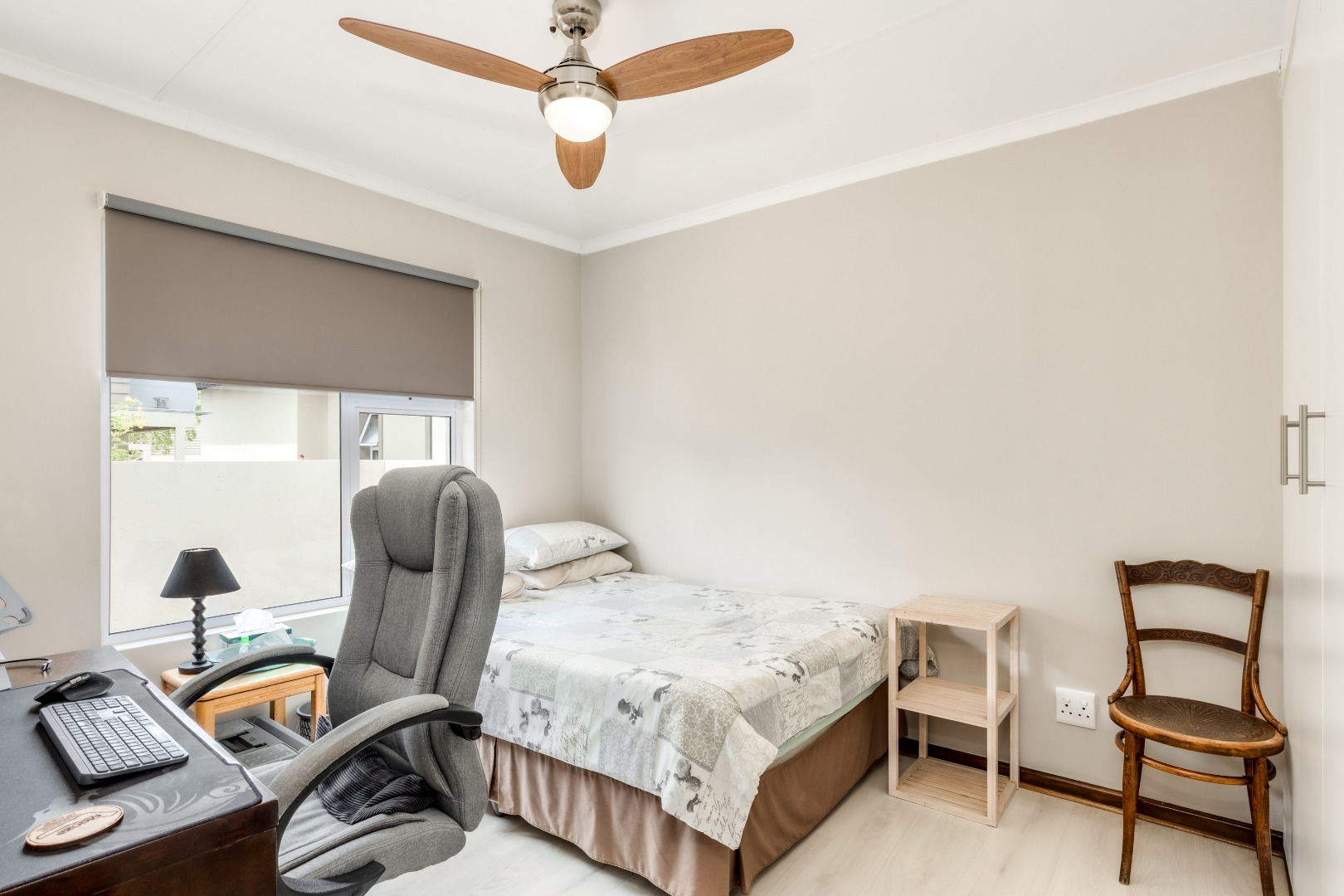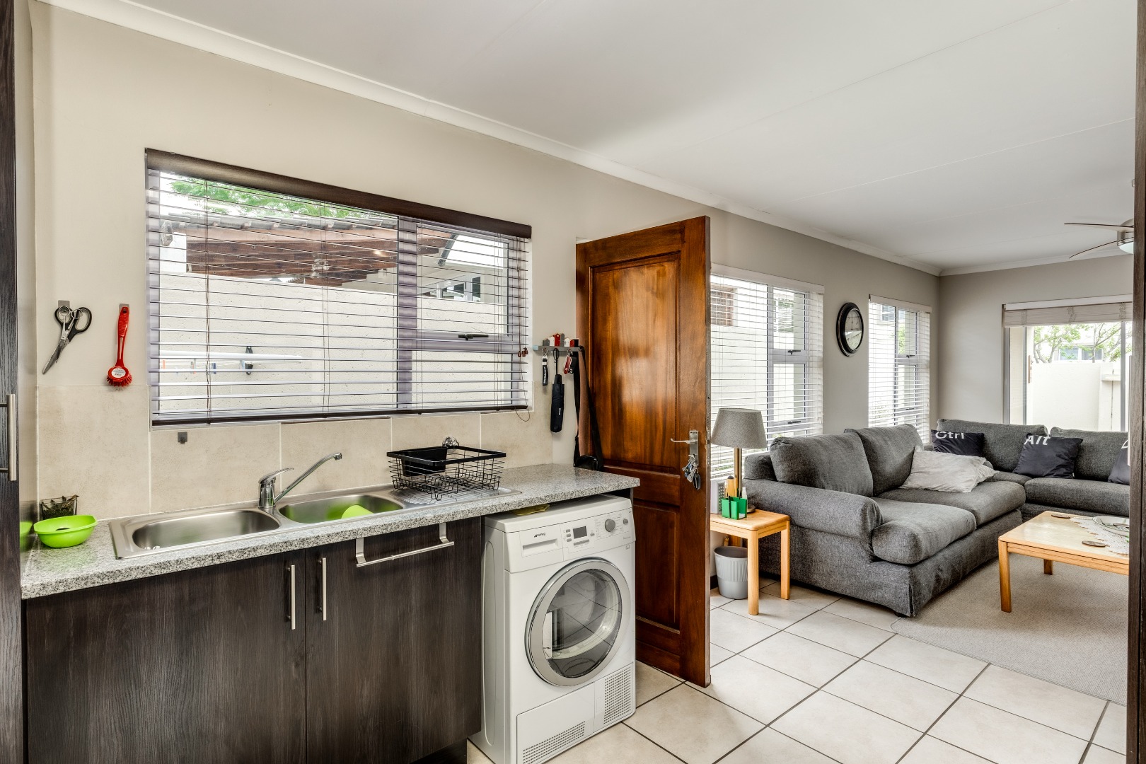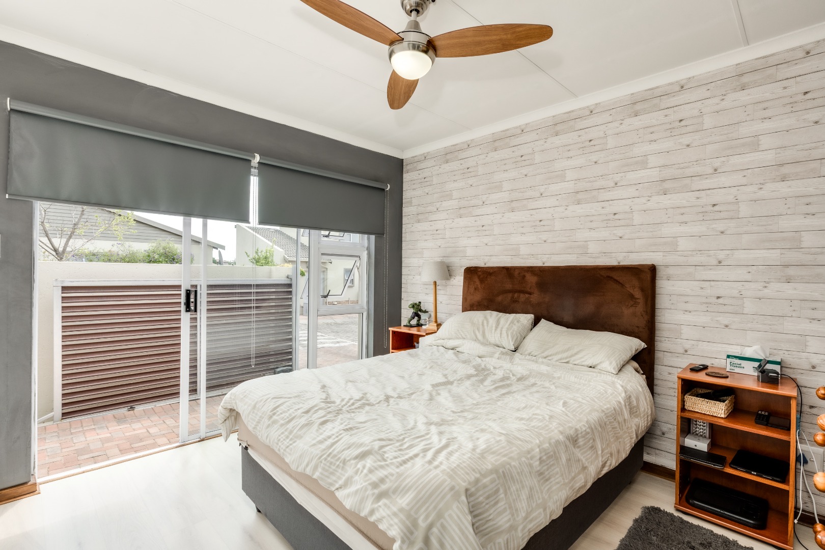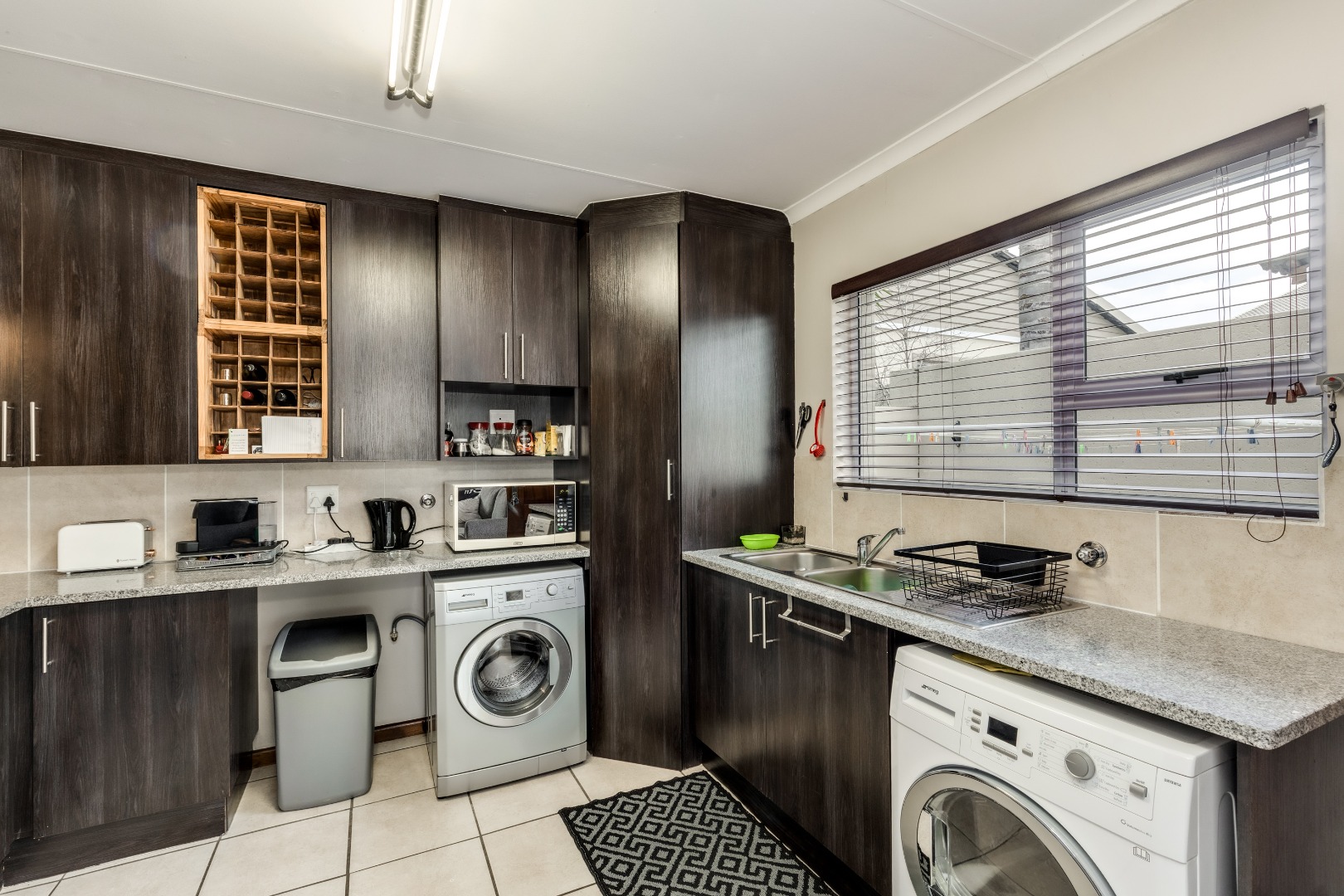This immaculately neat and modern single-storey home is the perfect blend of style, functionality, and low-maintenance living. Beautifully maintained and upgraded with thoughtful finishes throughout, it features a stunning remodeled kitchen with sleek cabinetry, additional storage by way of a pantry cupboard and built inn wine rack, a gas stove top, beautiful quartz counter tops and under counter space for three appliances. The two spacious bedrooms are fitted with elegant laminated flooring, and both have ceiling fans warm weather. The master bedroom has it's own en-suite bathroom with a shower and a stylish barn door entrance which adds further character to this home, as well as beautiful sliding doors that open out onto the garden, and black our roller blinds. Every detail has been thought of in this lovely home! With its clean lines and contemporary design, this home is move-in ready and ideal for those who appreciate a modern, fuss-free lifestyle, as well as an affordable and easy to maintain property with exceptionally low levies, pre-paid electricity, a gas stove top and solar geyser.