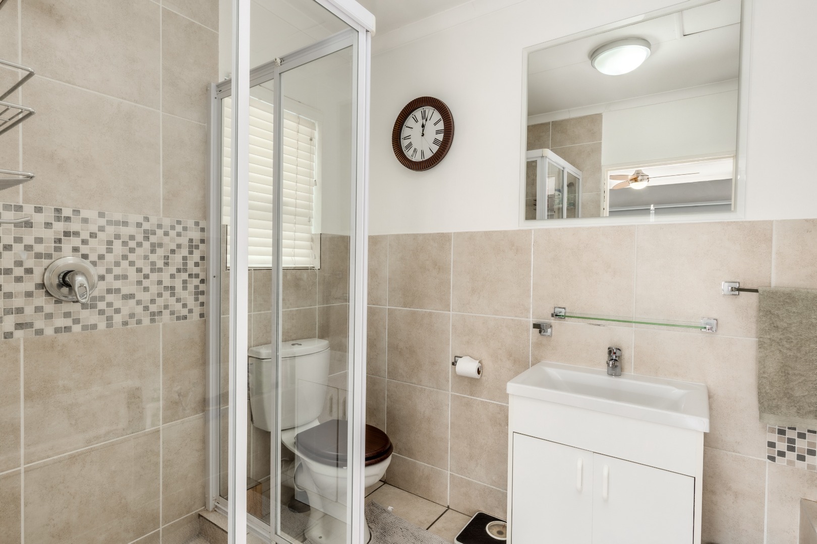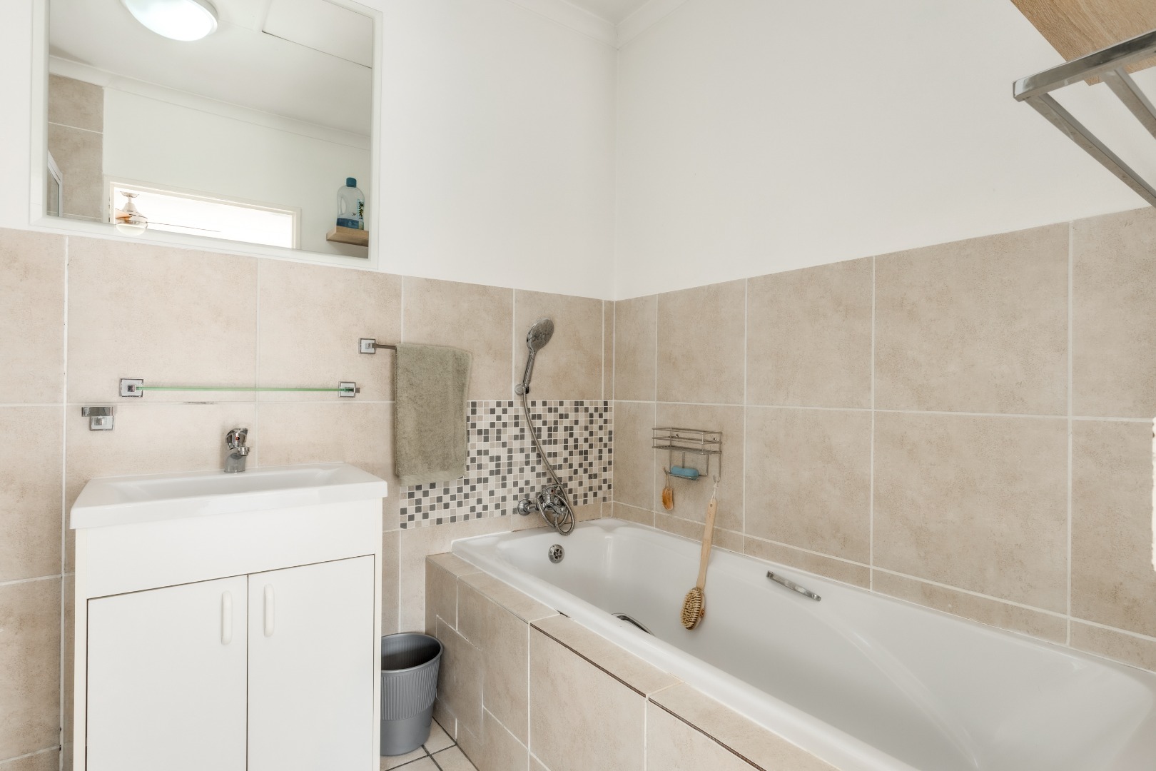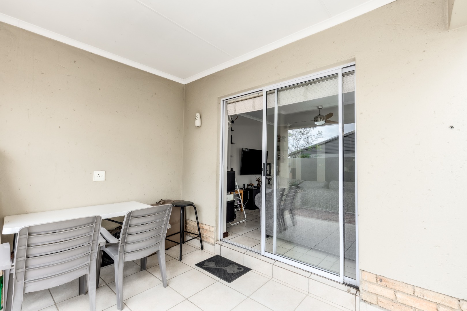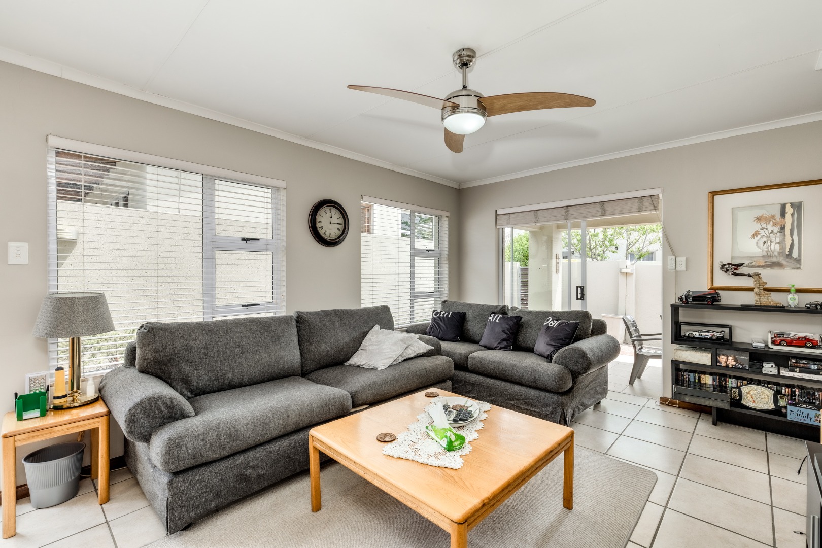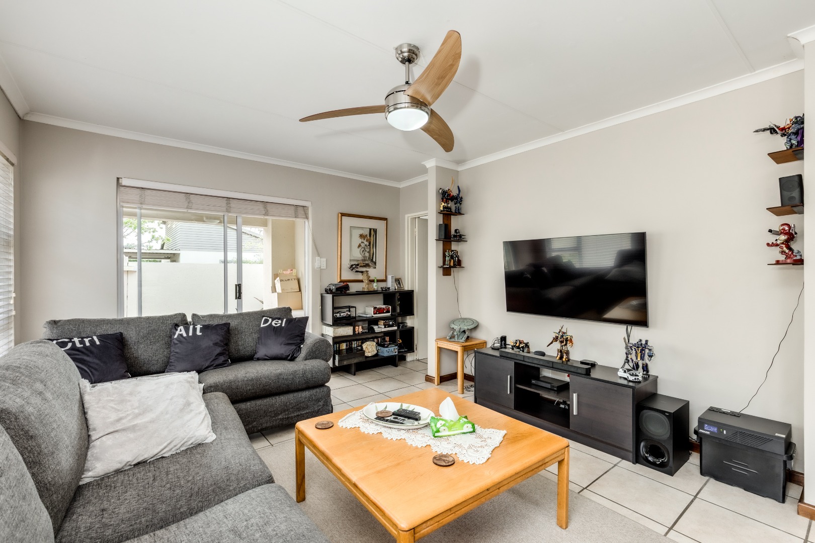This immaculately neat and modern single-storey home is the perfect blend of style, functionality, and low-maintenance living. Beautifully maintained and upgraded with thoughtful finishes throughout, it features a stunning remodeled kitchen with sleek cabinetry, additional storage by way of a pantry cupboard and built inn wine rack, a gas stove top, beautiful quartz counter tops and under counter space for three appliances. The two spacious bedrooms are fitted with elegant laminated flooring, and both have ceiling fans warm weather. The master bedroom has it's own en-suite bathroom with a shower and a stylish barn door entrance which adds further character to this home, as well as beautiful sliding doors that open out onto the garden, and black our roller blinds. Every detail has been thought of in this lovely home! With its clean lines and contemporary design, this home is move-in ready and ideal for those who appreciate a modern, fuss-free lifestyle, as well as an affordable and easy to maintain property with exceptionally low levies, pre-paid electricity, a gas stove top and solar geyser.