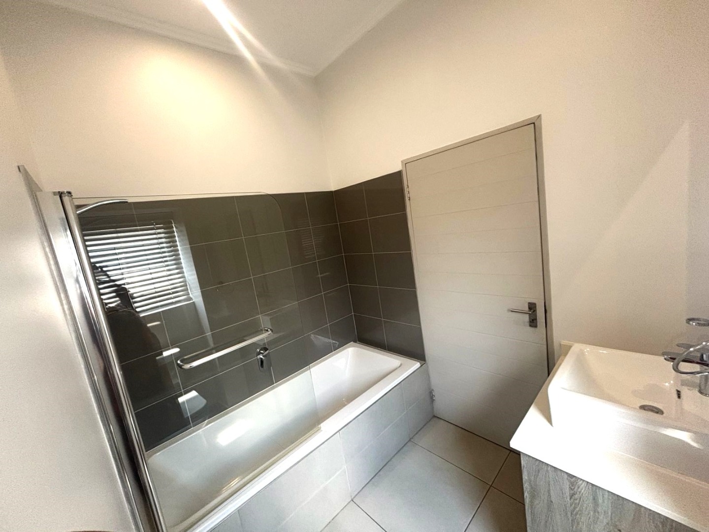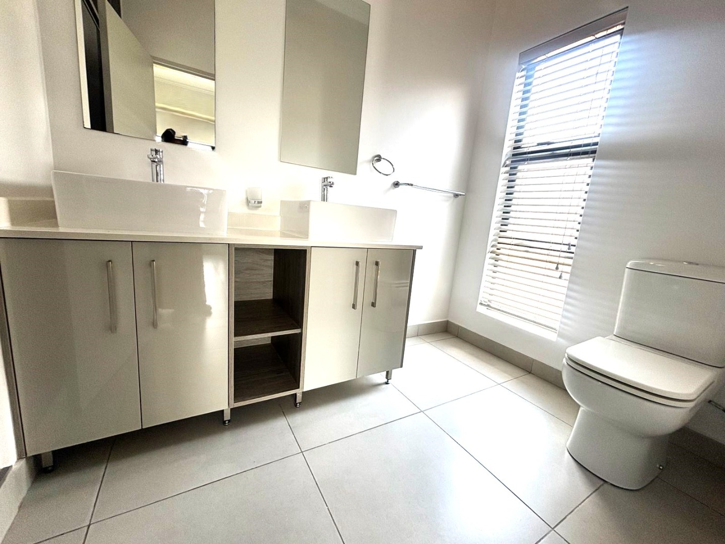 Discover modern living in this inviting 3-bedroom, 2-bathroom apartment, spanning 103 sqm, located in the desirable Broadacres. This contemporary residence boasts an open-plan layout, seamlessly connecting the living areas. The stylish kitchen features light wood-grain and grey cabinetry, a gas hob, and an oven, complemented by a breakfast bar, a large fridge and washing machine. Tiled flooring and recessed lighting enhance the modern aesthetic throughout the main living space.