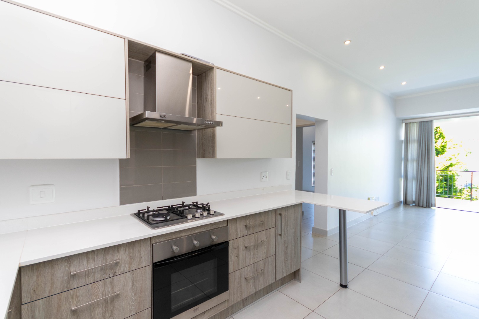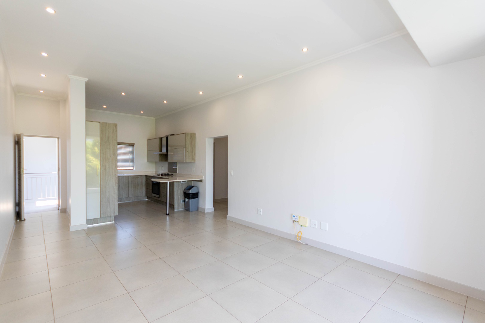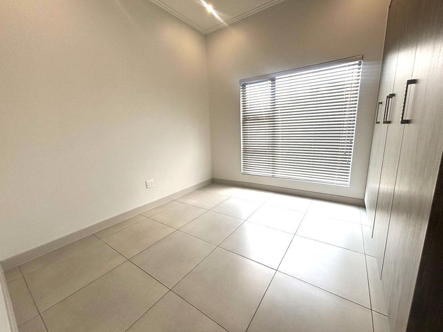 Discover modern living in this inviting 3-bedroom, 2-bathroom apartment, spanning 103 sqm, located in the desirable Broadacres. This contemporary residence boasts an open-plan layout, seamlessly connecting the living areas. The stylish kitchen features light wood-grain and grey cabinetry, a gas hob, and an oven, complemented by a breakfast bar, a large fridge and washing machine. Tiled flooring and recessed lighting enhance the modern aesthetic throughout the main living space.