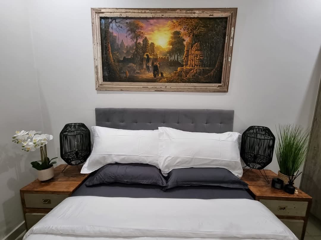 The kitchen has been reworked to improve both layout and storage, with additional cabinetry added to accommodate a double-door fridge. The upward-folding cupboard doors introduce a more contemporary design detail, while the gas hob is a practical addition.