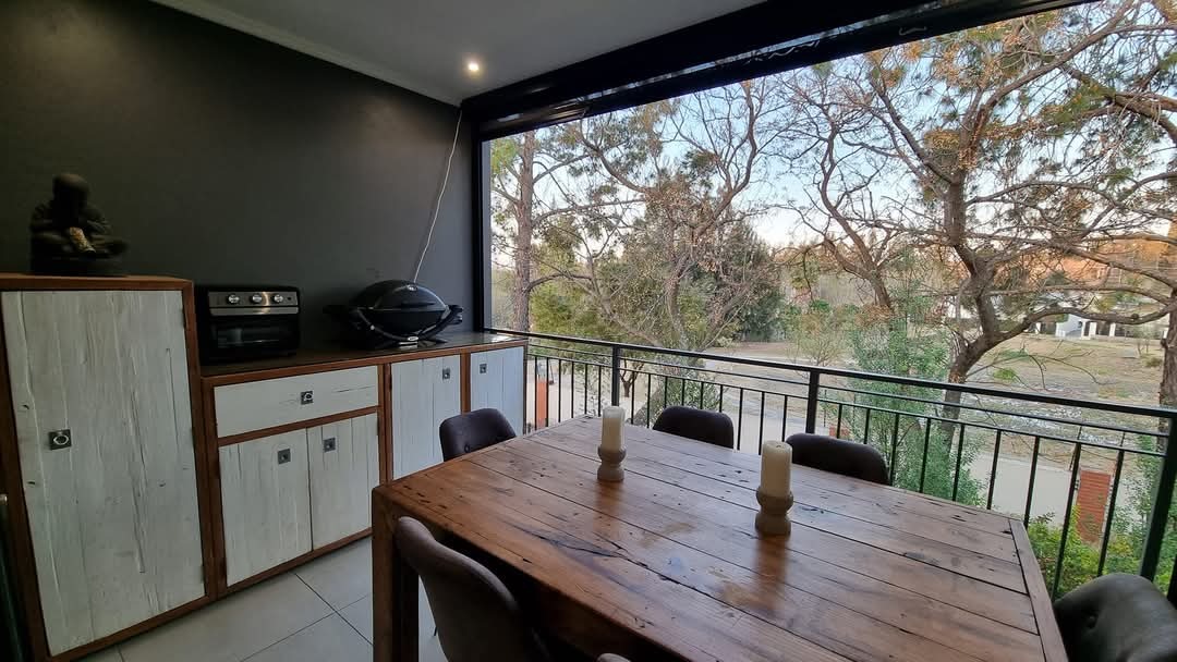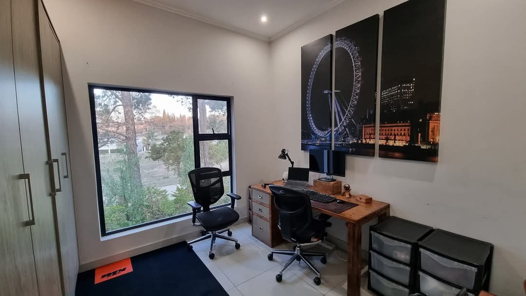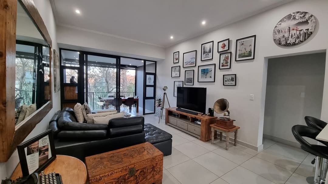The outlook over the greenery and estate walkways adds to that sense of calm, giving the living area a softer, more open feel while still being part of a well-designed, secure environment.