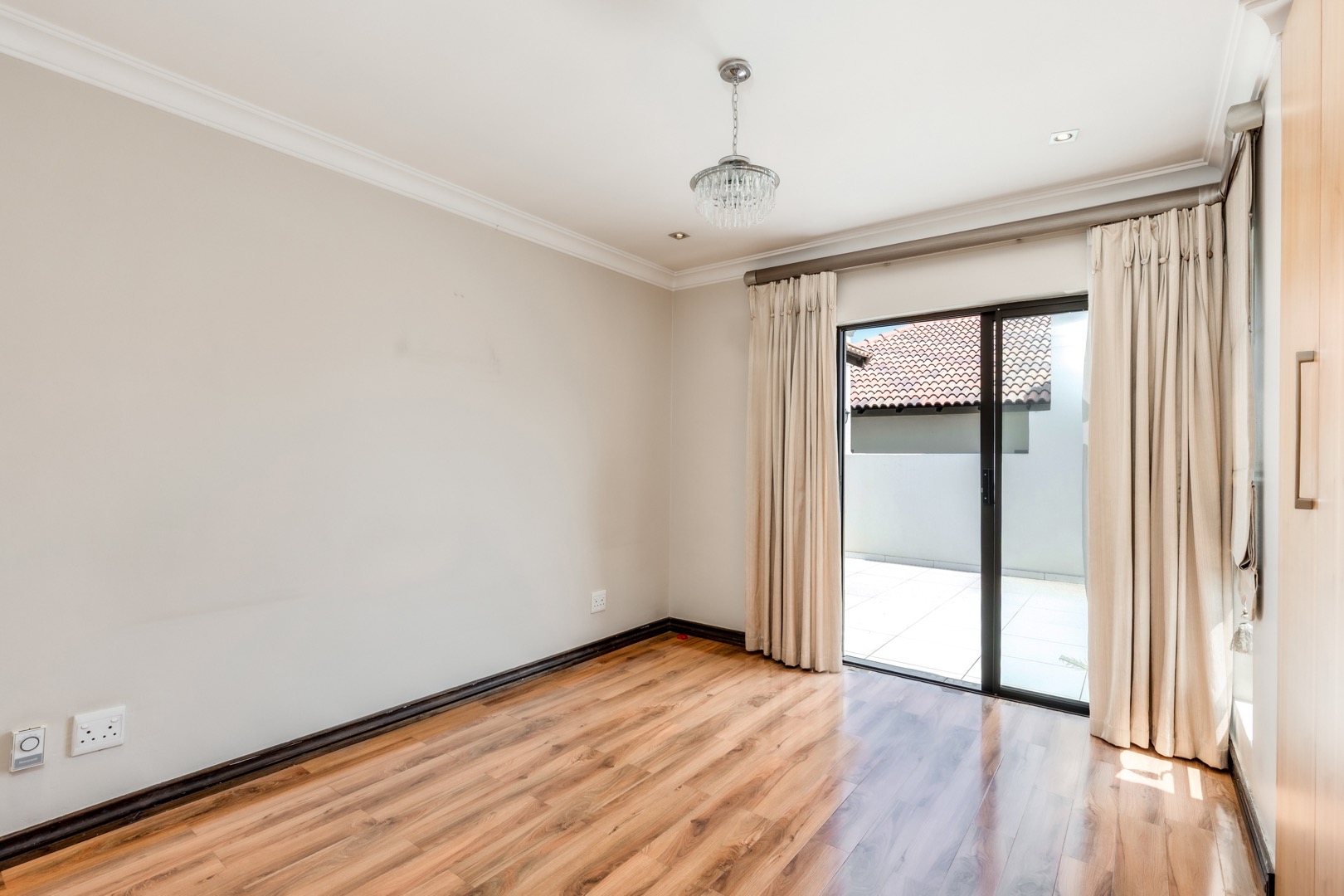 Ascending the staircase, highlighted by a crystal chandelier, you are greeted by a stylish pyjama lounge, creating a warm, intimate space for family relaxation. The home offers three generously proportioned bedrooms, all finished with rich laminate flooring. Two bedrooms share a luxurious full bathroom, while the primary suite features a sumptuous en suite bathroom with his and hers basins, a private dressing room, and tranquil garden views.
