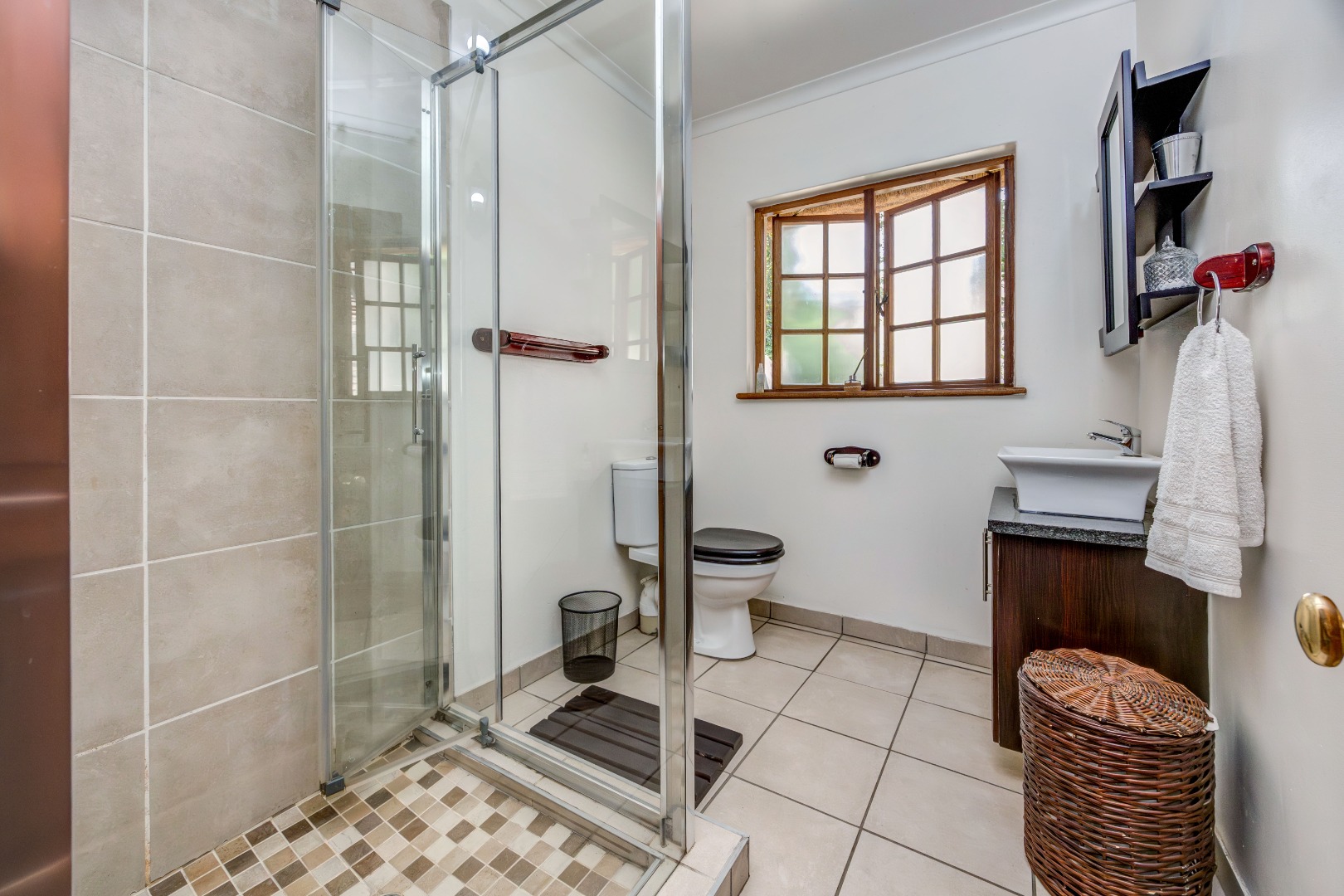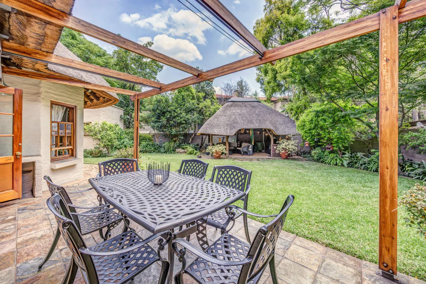 Outdoors, the property offers a beautifully manicured garden, surrounded by mature trees, with a cozy boma area — perfect for relaxed outdoor gatherings.