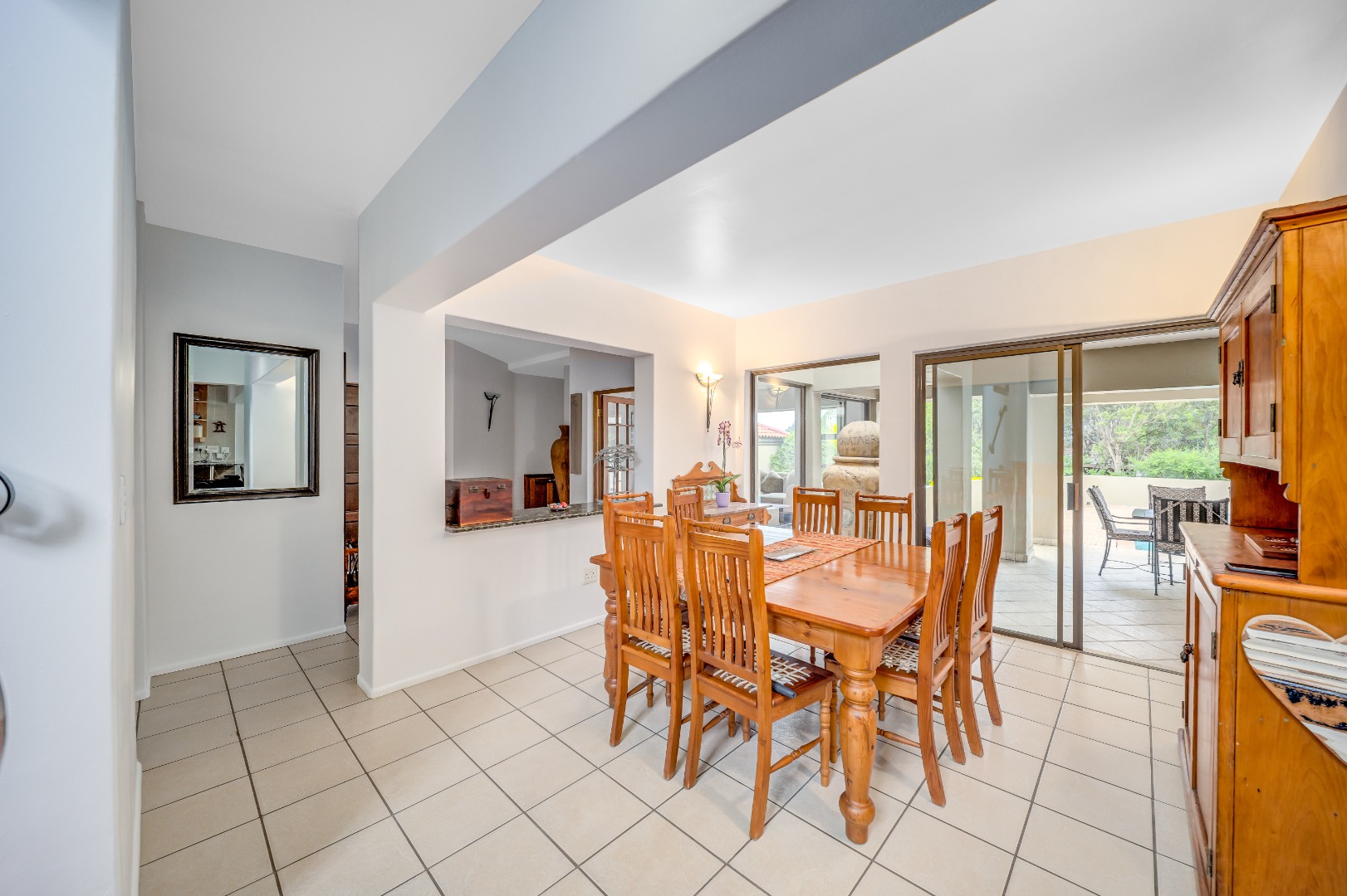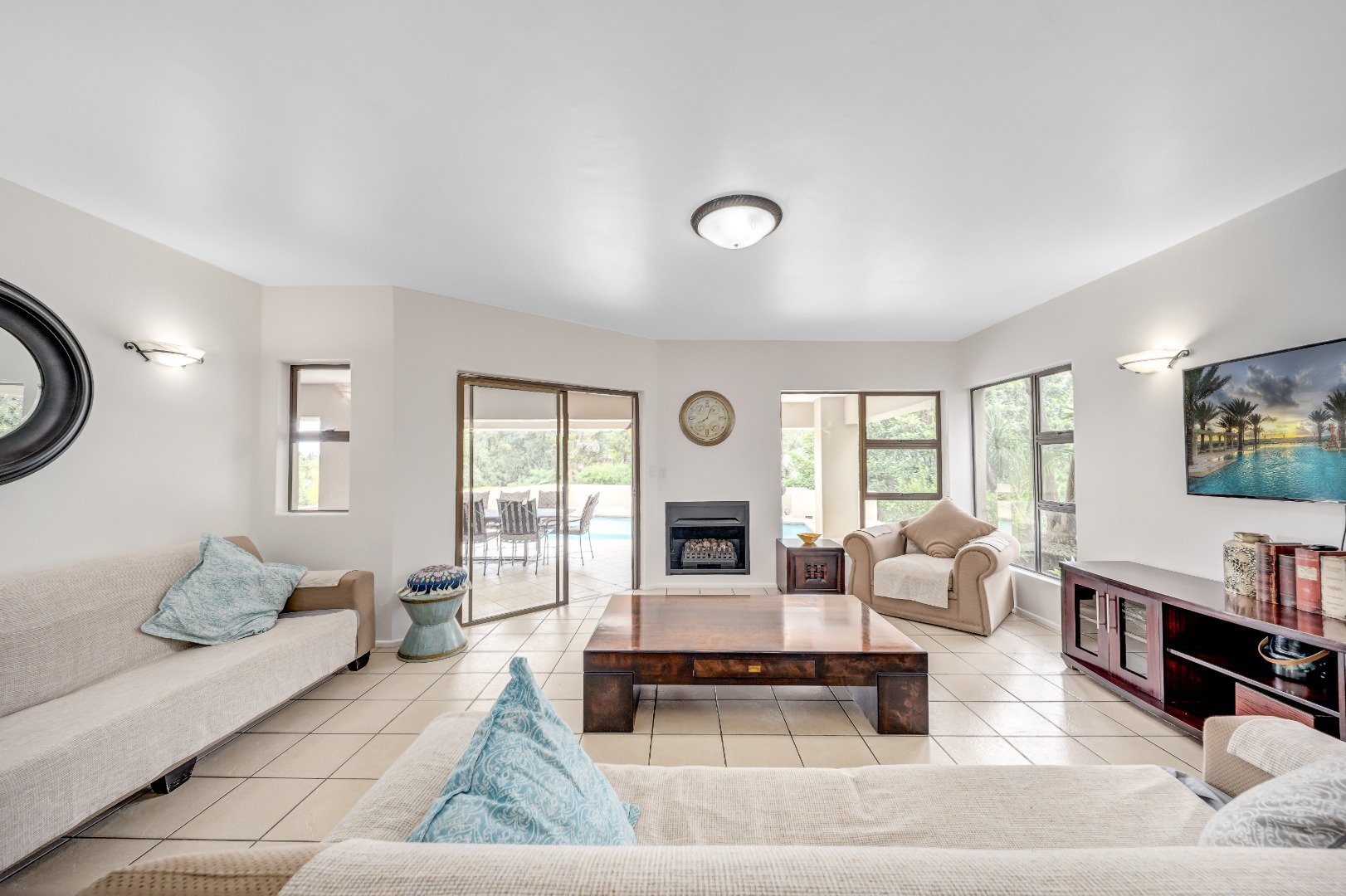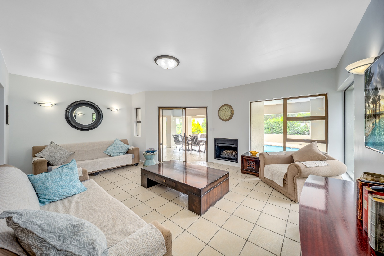 The expansive entertainment area opens seamlessly onto the