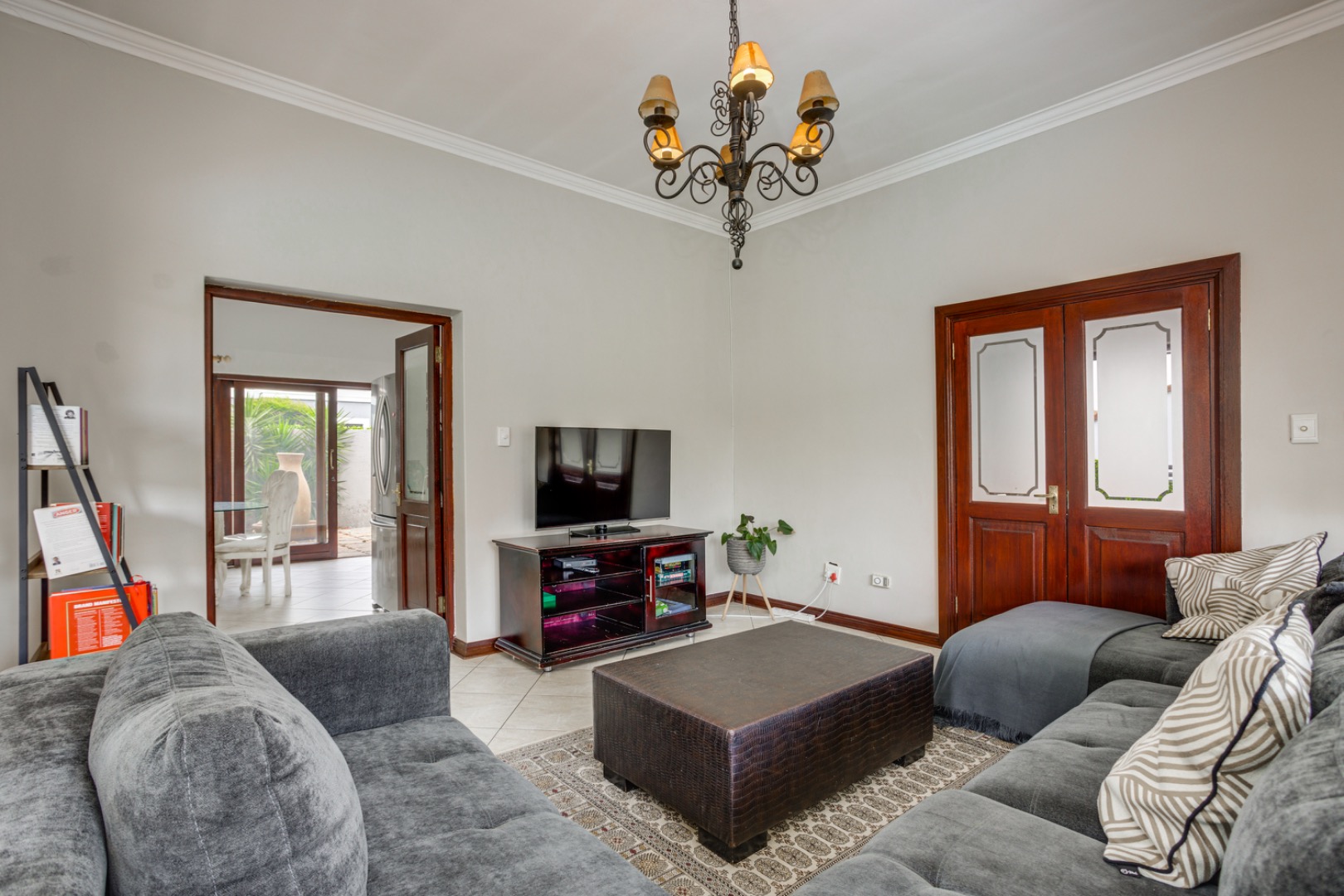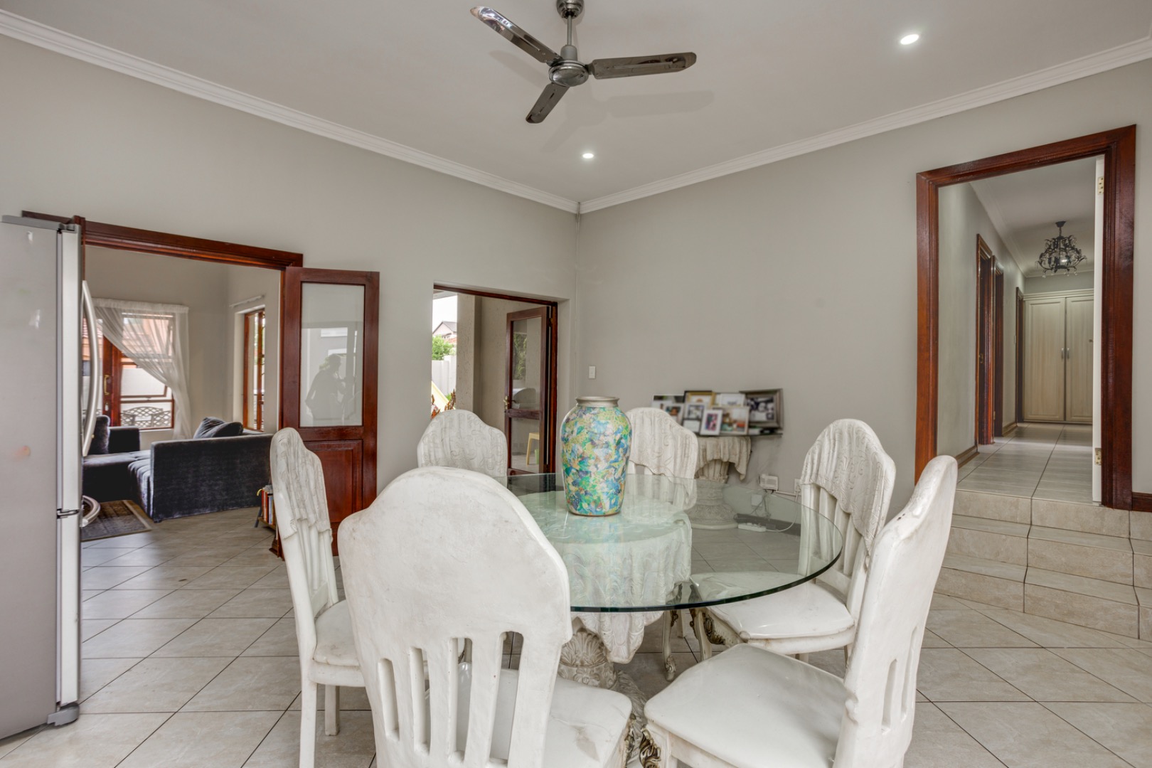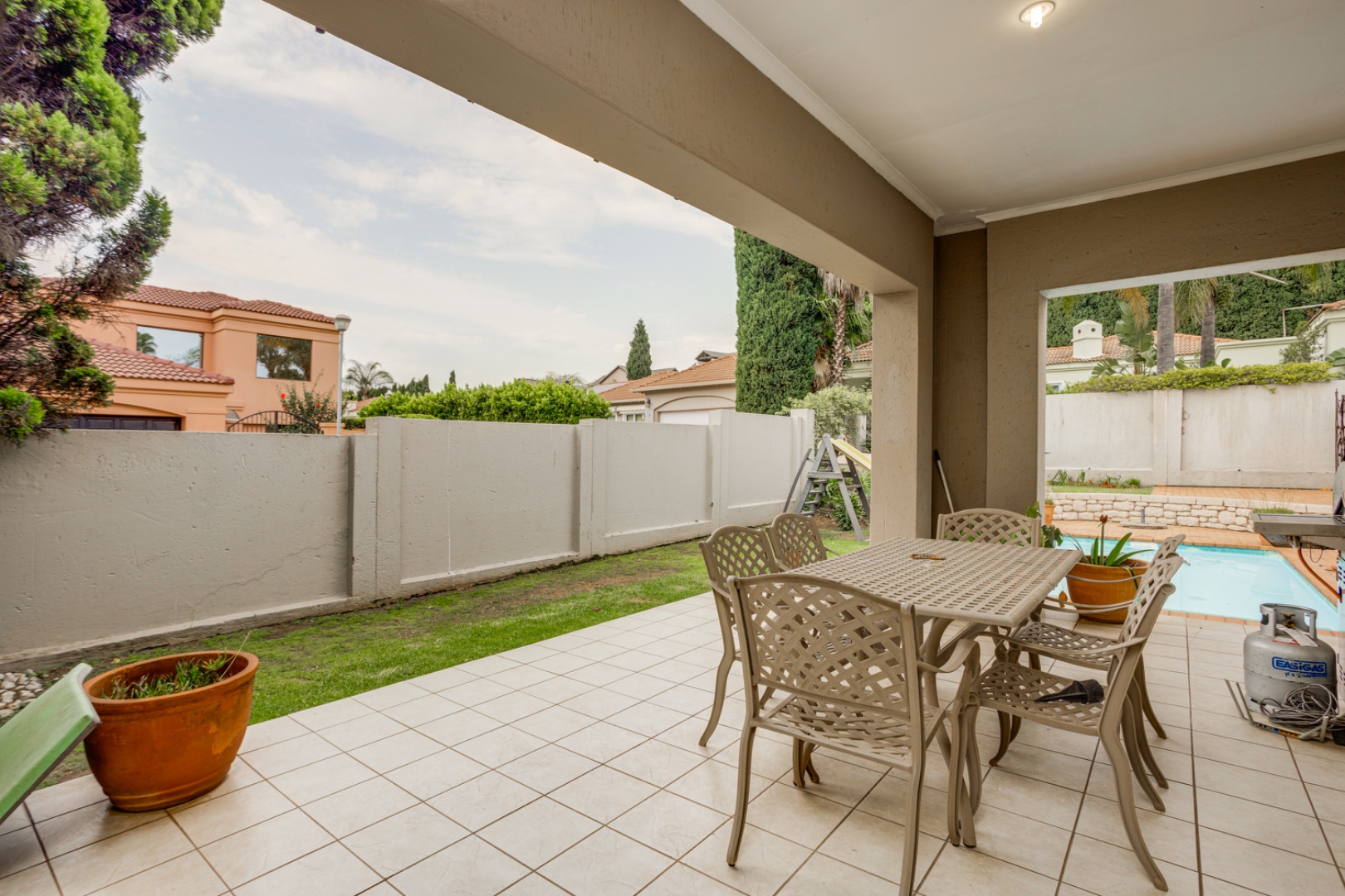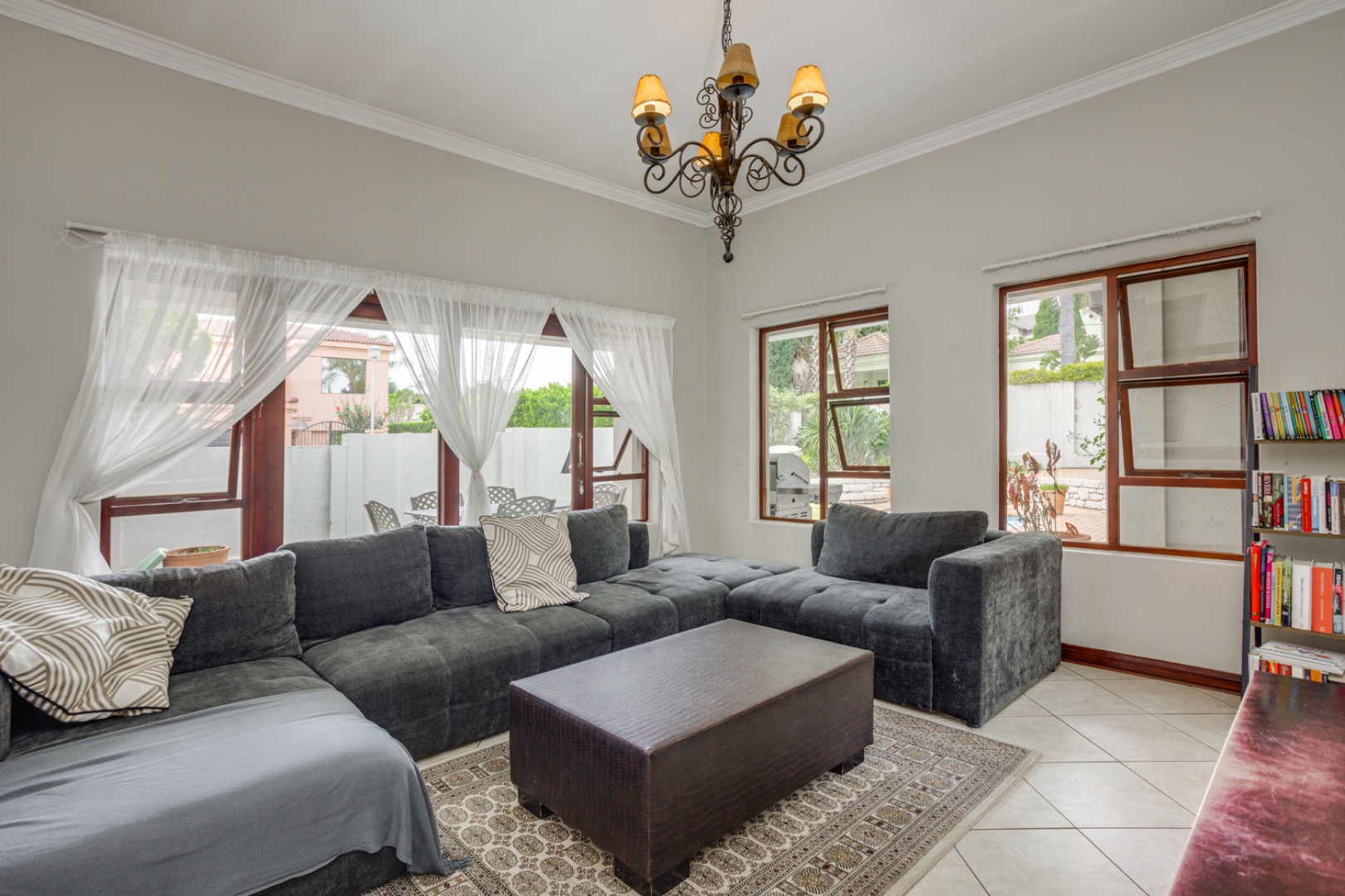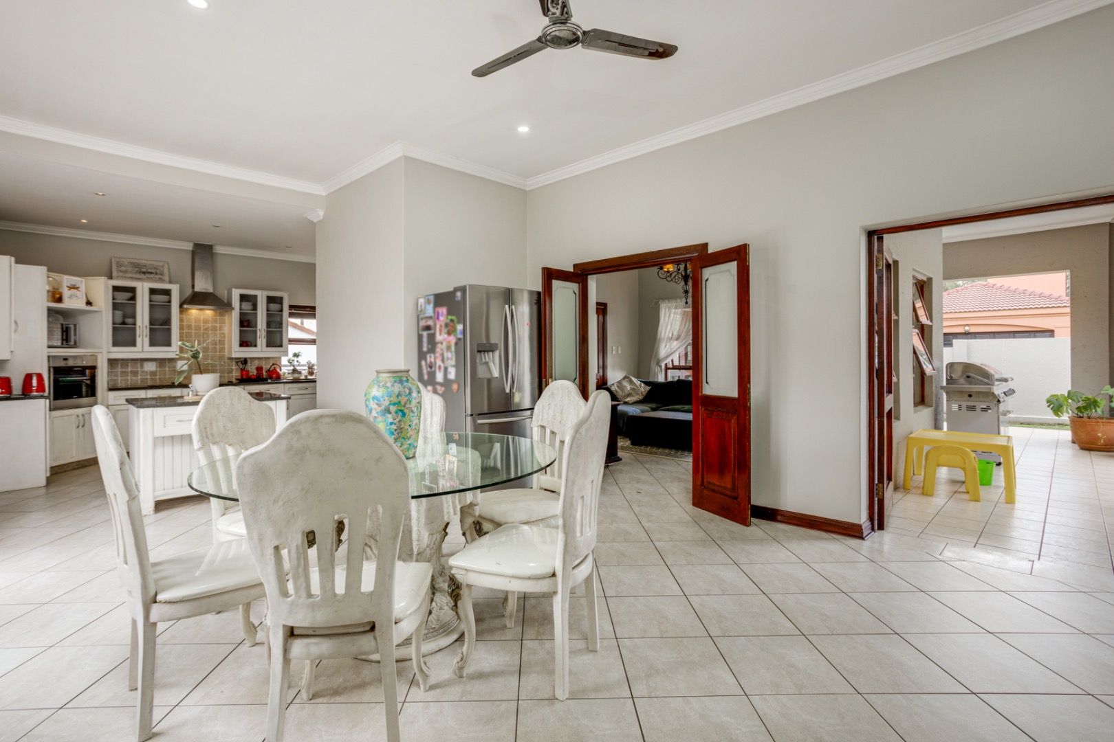 Discover this inviting 4-bedroom, 3-bathroom residence nestled within the secure estate, Dainfern Ridge. Spanning a generous 334 sqm under roof on a 680 sqm erf, this property offers ample space for comfortable family living. An inviting entrance hall leads into the home's well-designed interior, featuring an open-plan layout that seamlessly connects the two spacious lounges, a dedicated dining room, and a family/TV room. Abundant natural light streams through large windows and glass doors, enhancing the bright and airy atmosphere, complemented by durable tiled and wood-look flooring and refined crown molding.