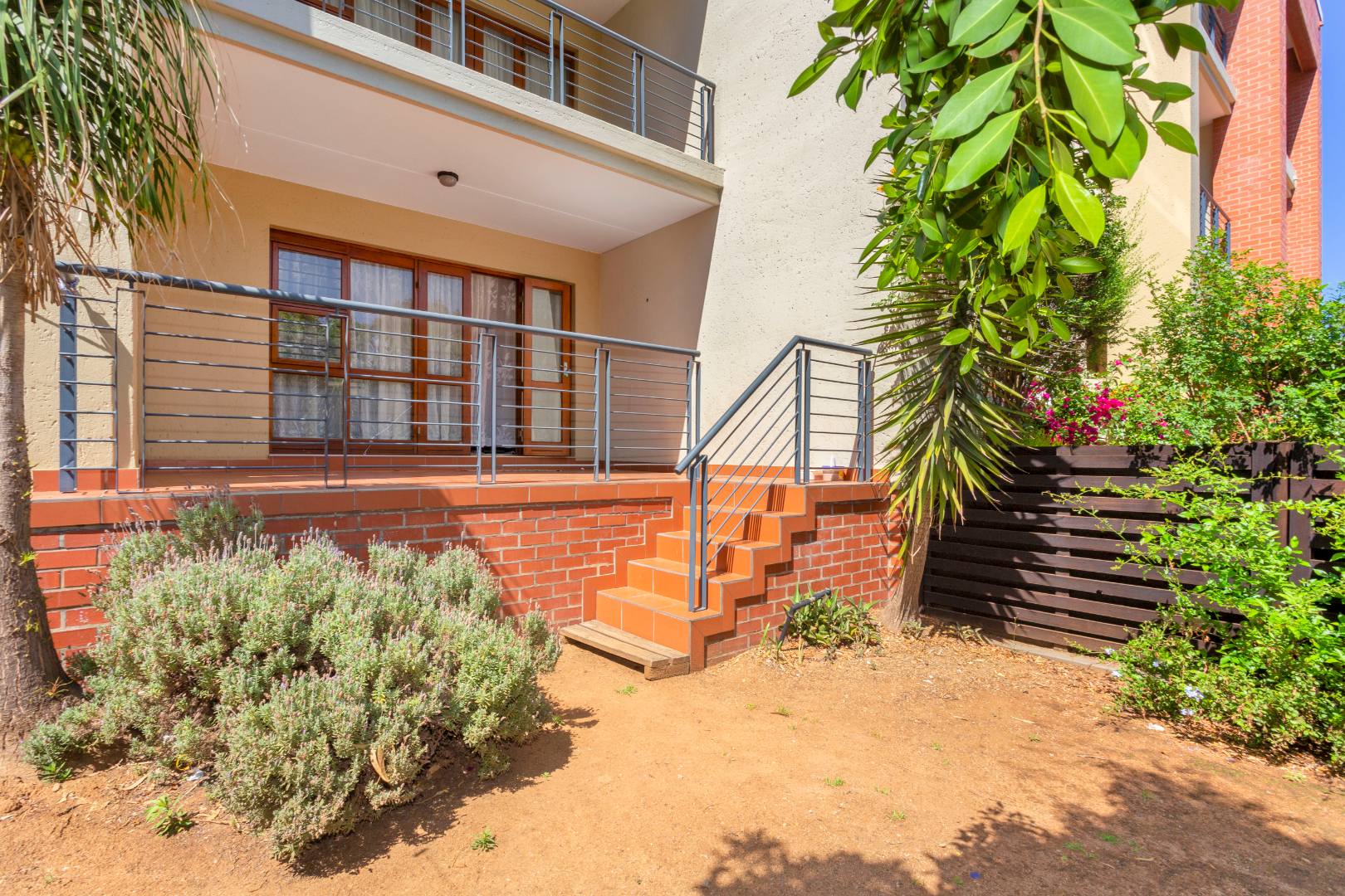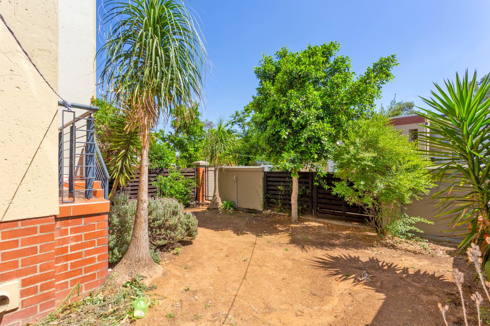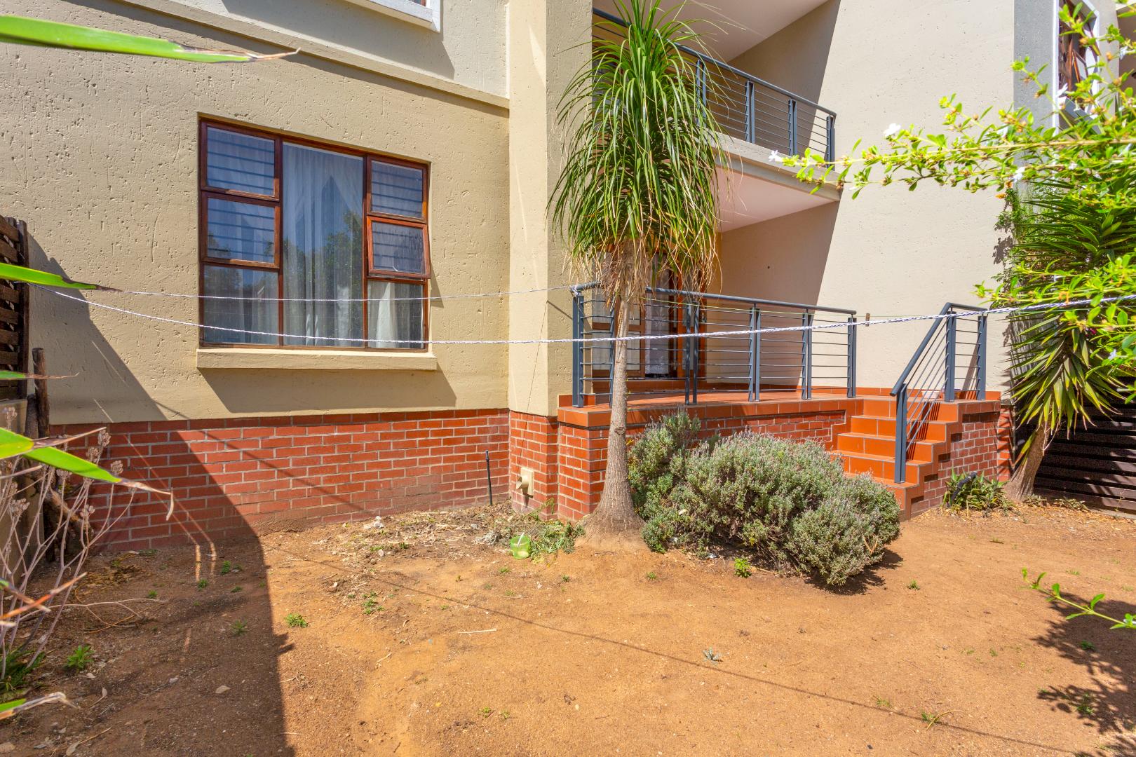 Discover modern living in this inviting 77sqm residence, ideally situated within a secure estate in Douglasdale, Sandton. The property boasts a welcoming exterior with a durable brick base, large windows, and a spacious tiled ground-floor patio, perfect for outdoor relaxation. Residents benefit from a large garden due to the unit being situated on a corner.