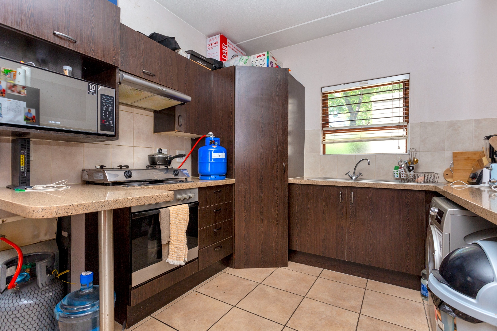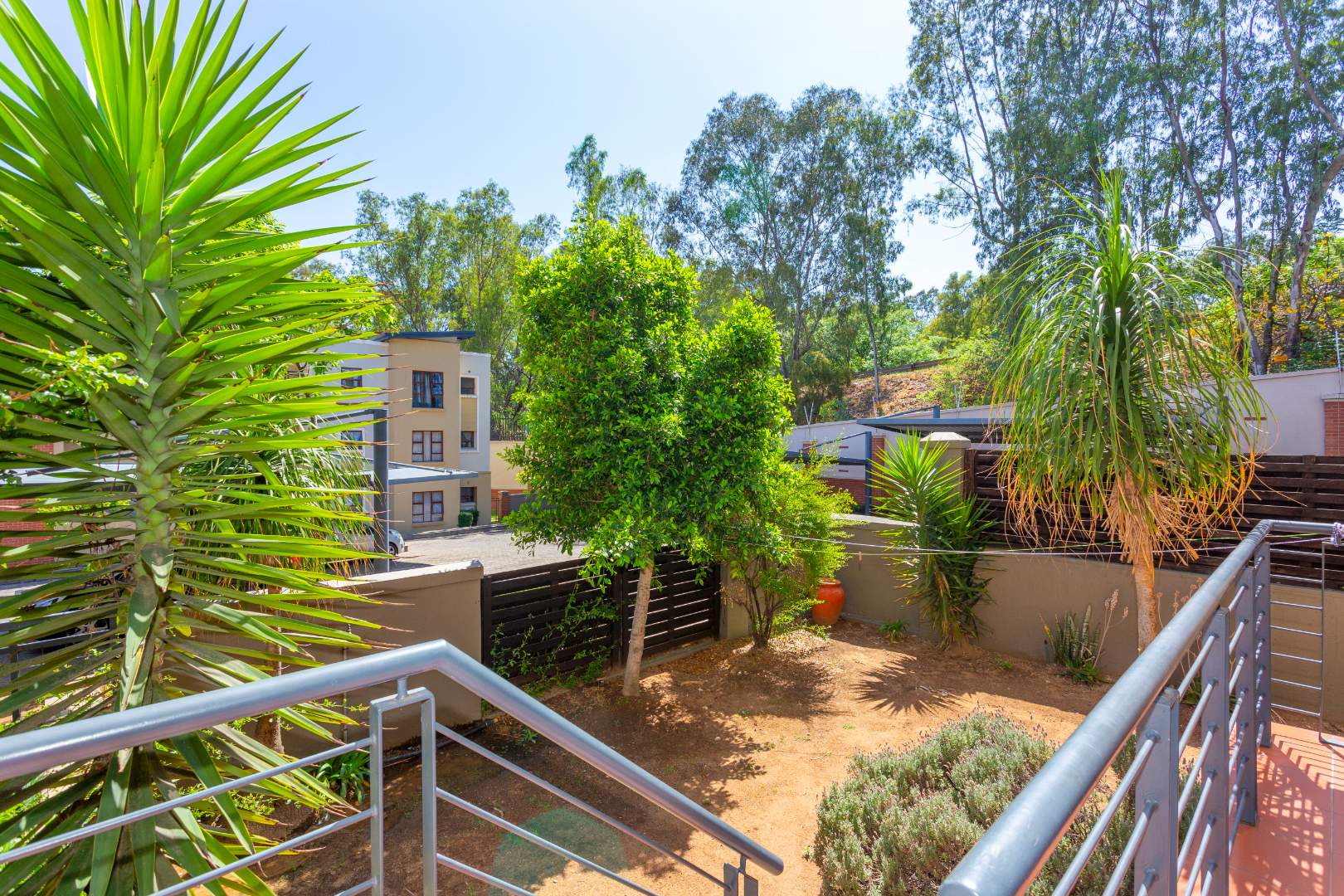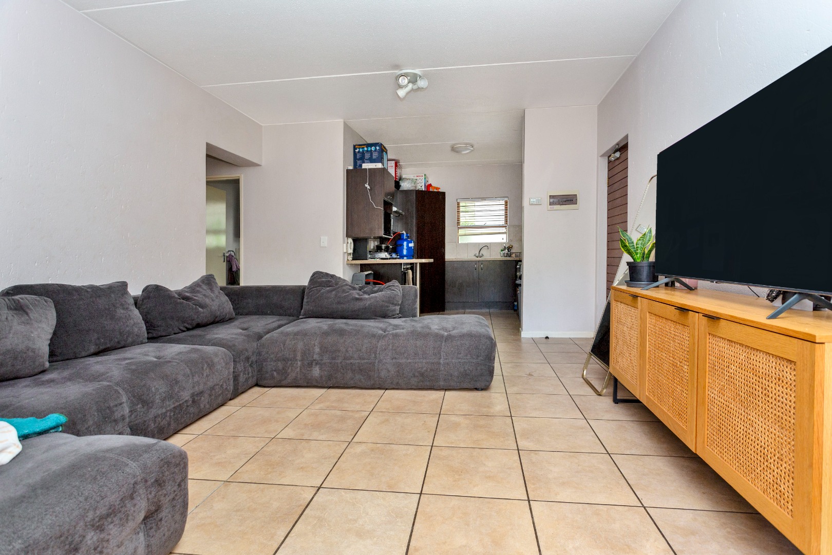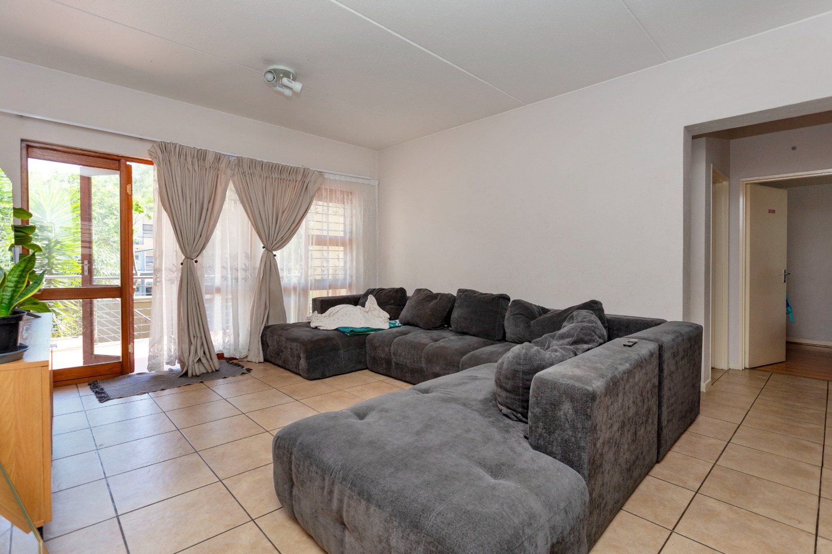 Discover modern living in this inviting 77sqm residence, ideally situated within a secure estate in Douglasdale, Sandton. The property boasts a welcoming exterior with a durable brick base, large windows, and a spacious tiled ground-floor patio, perfect for outdoor relaxation. Residents benefit from a large garden due to the unit being situated on a corner.
