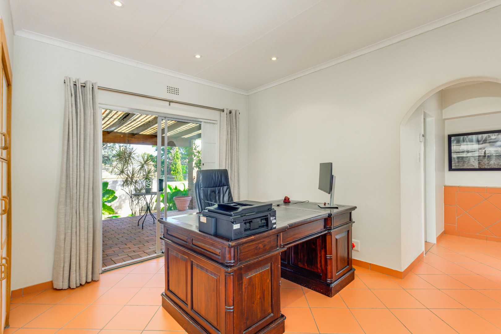 Boasting 3 spacious bedrooms and 3 bathrooms, staff quarters with kitchenette and bathroom as well as a completely separate office. This property perfectly blends family living with work-from-home functionality. A double automated garage with storage room and space to park up to 5 cars completes the package. Two separate storage rooms as well as an avery in the garden. All doors are fitted with slam lock security gates except for the front door. There is electric fencing on the front and the back wall of the home.