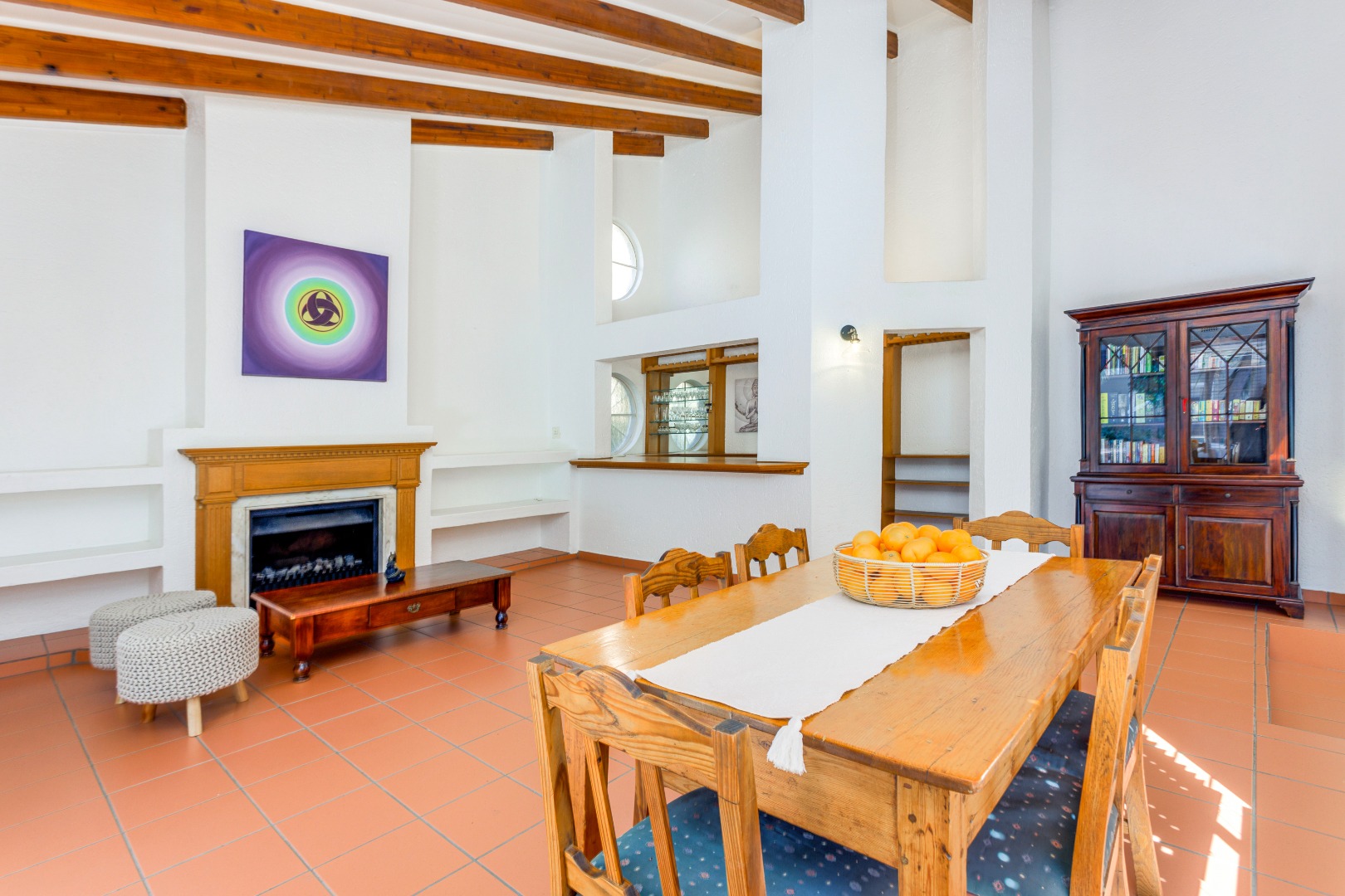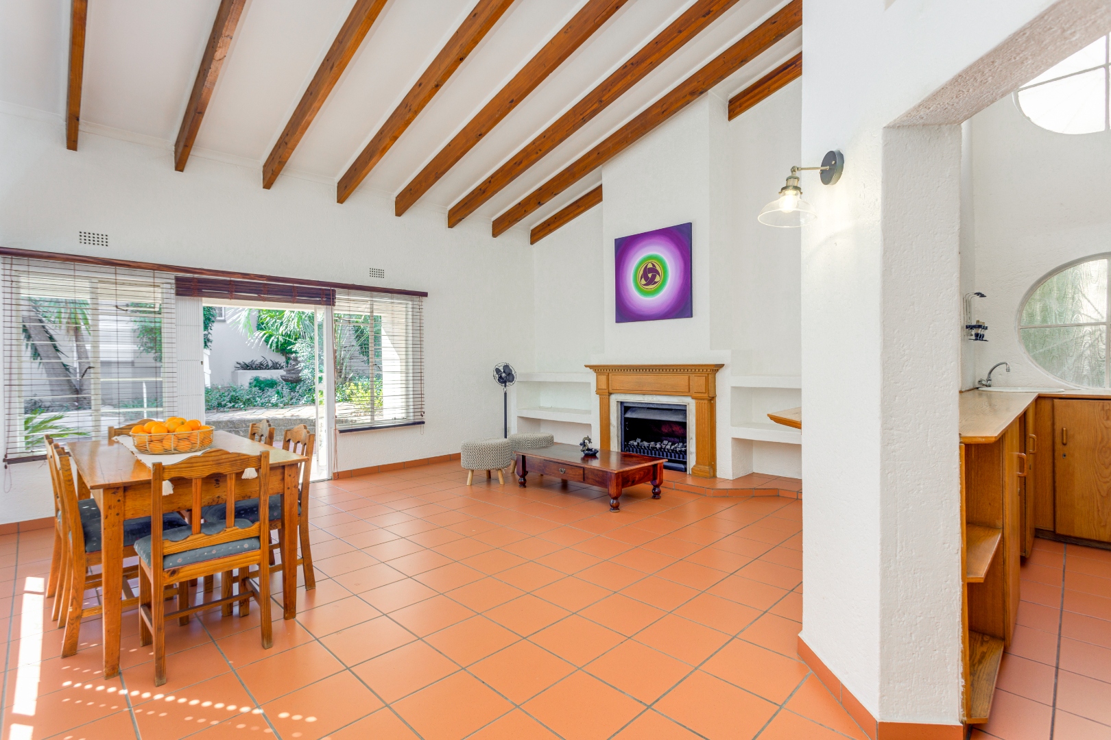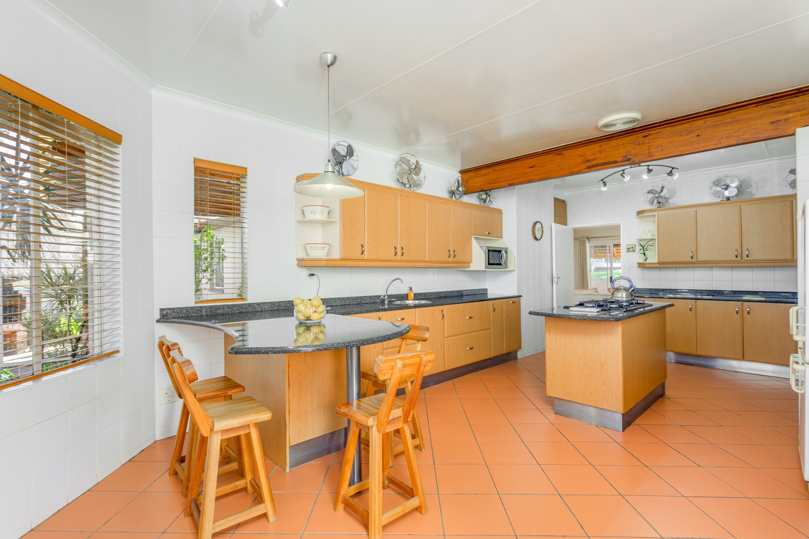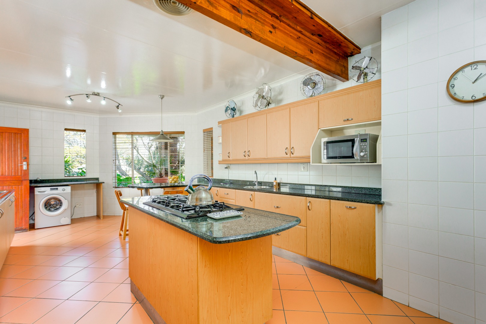 This home is designed for both relaxed living and effortless entertaining, featuring two covered patios, one with a built in braai, a sparkling pool, and three expansive reception areas. The largest reception area has a built in bar as well as a gas fireplace, perfect for entertaining! The heart of the home is a massive kitchen with granite tops, breakfast nook, centre island stove with a gas hob, and space for three undercounter appliances — ideal for families and keen entertainers alike.