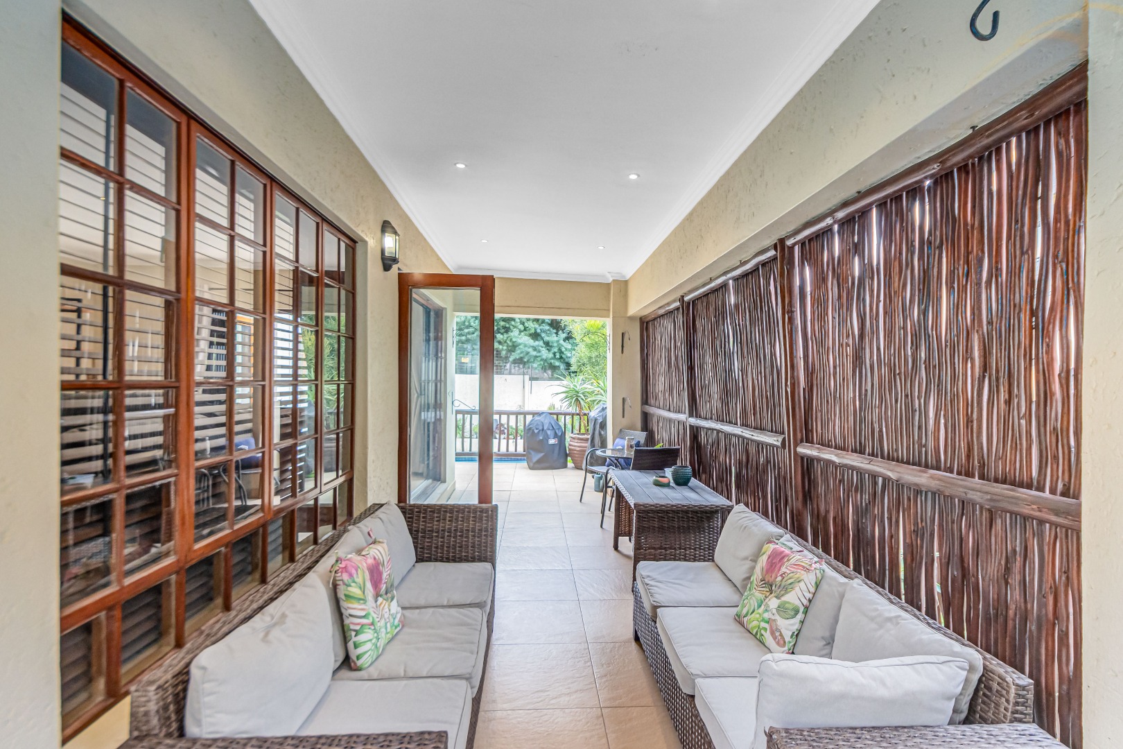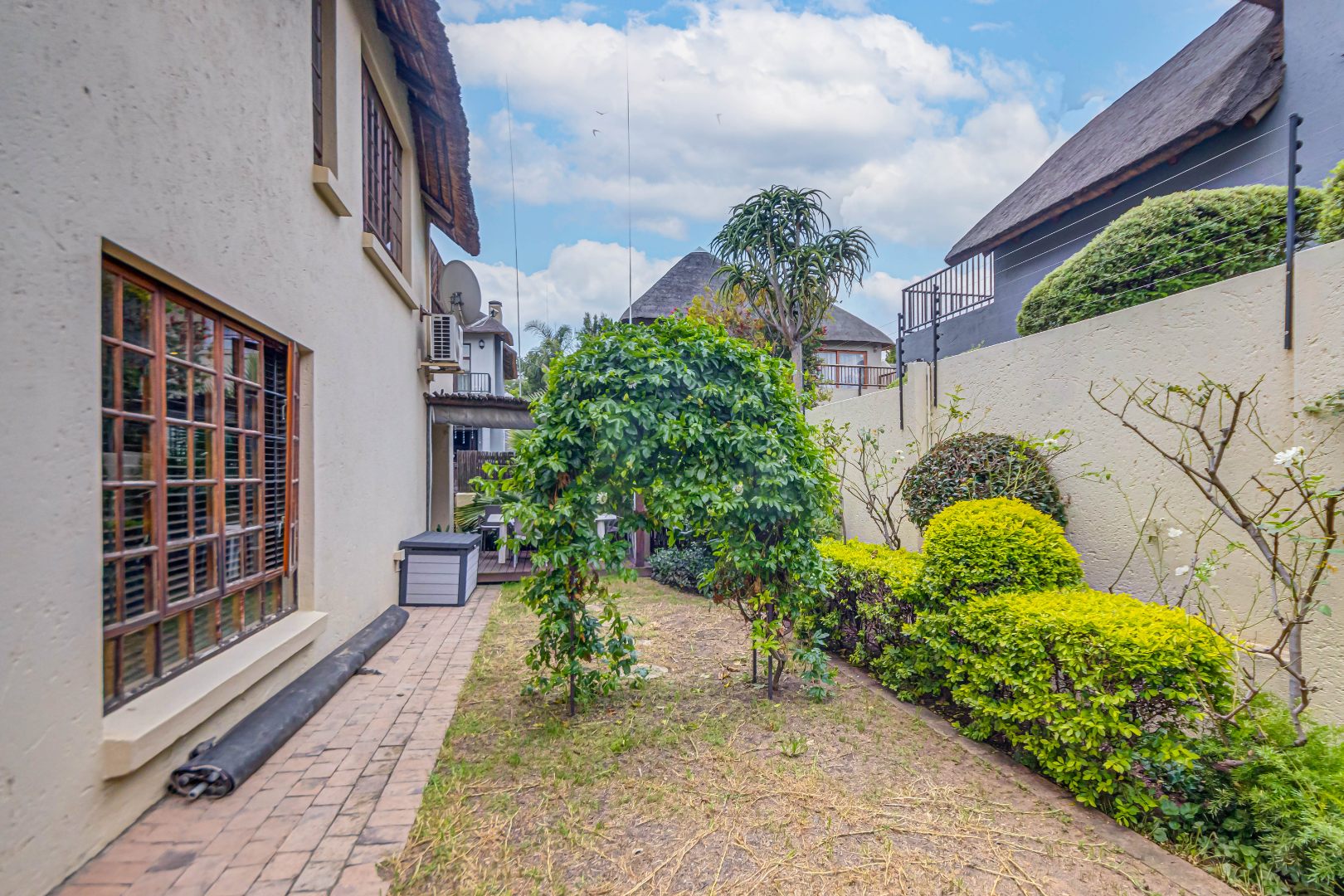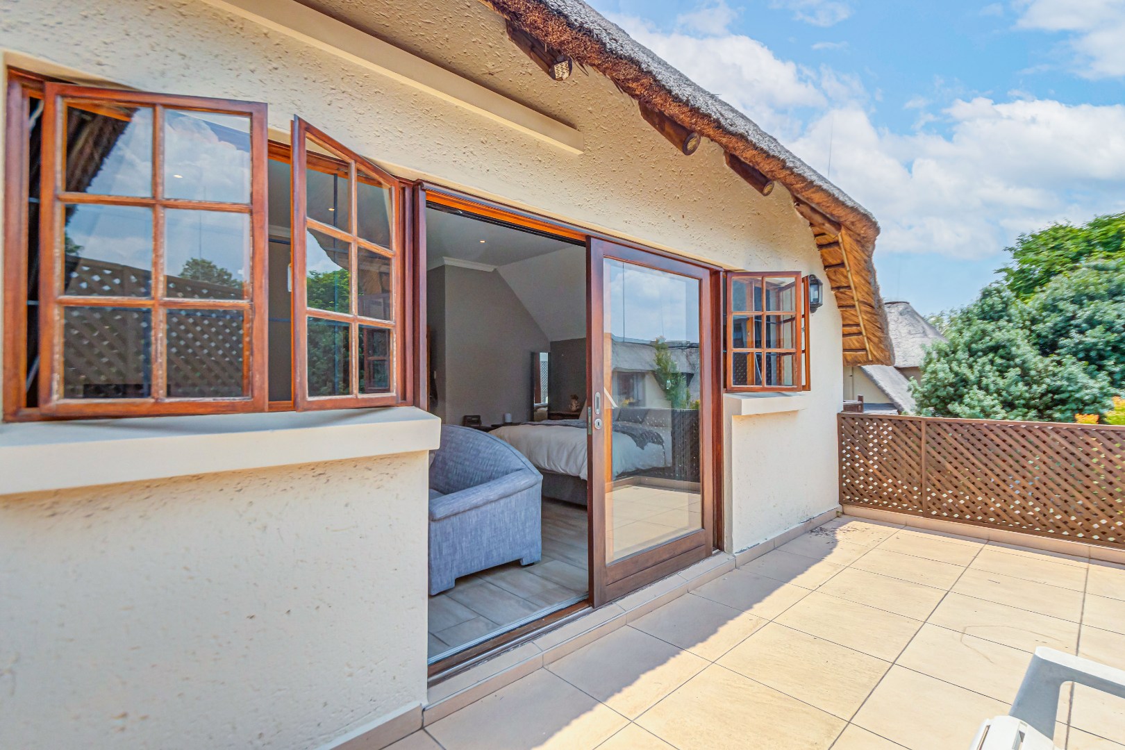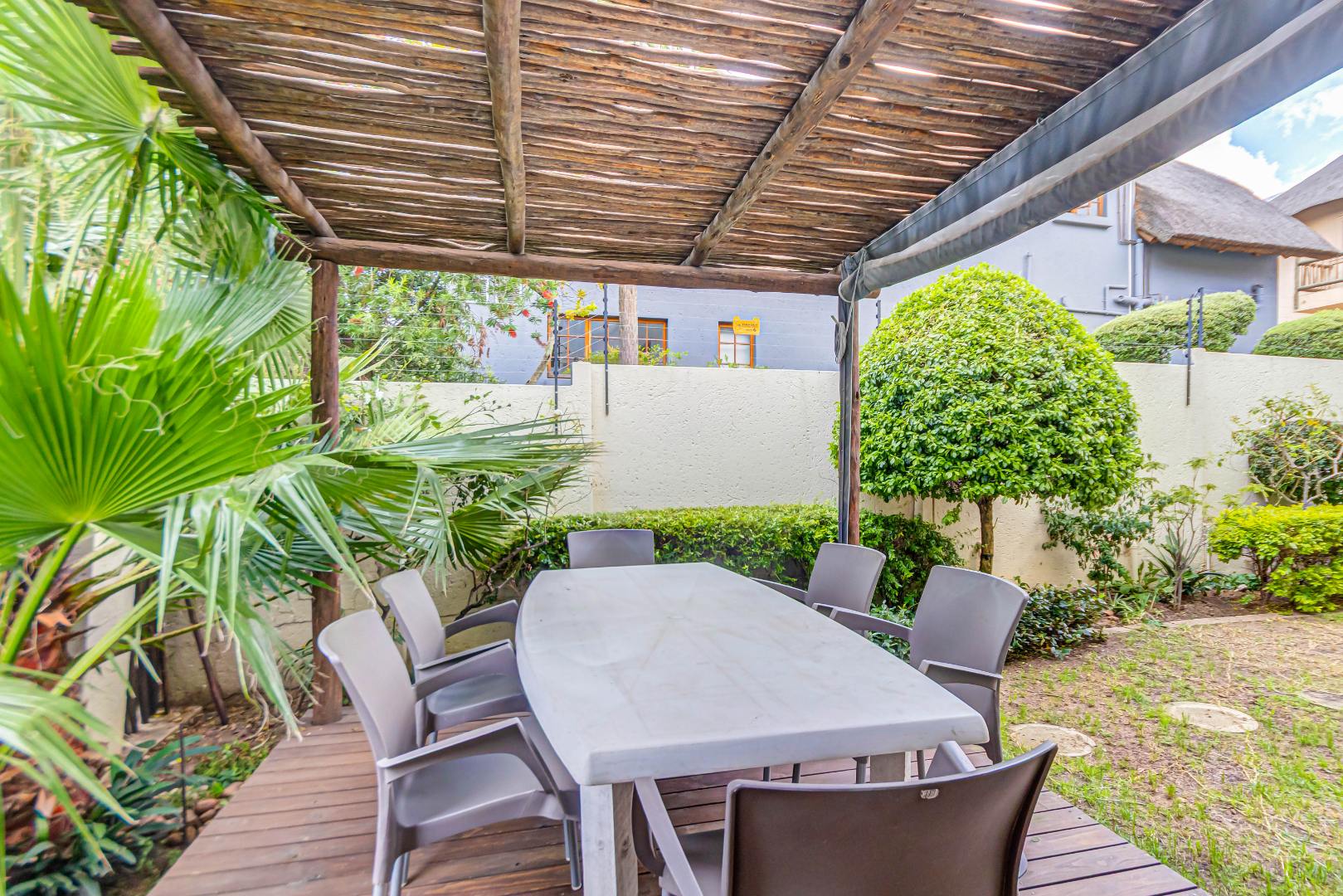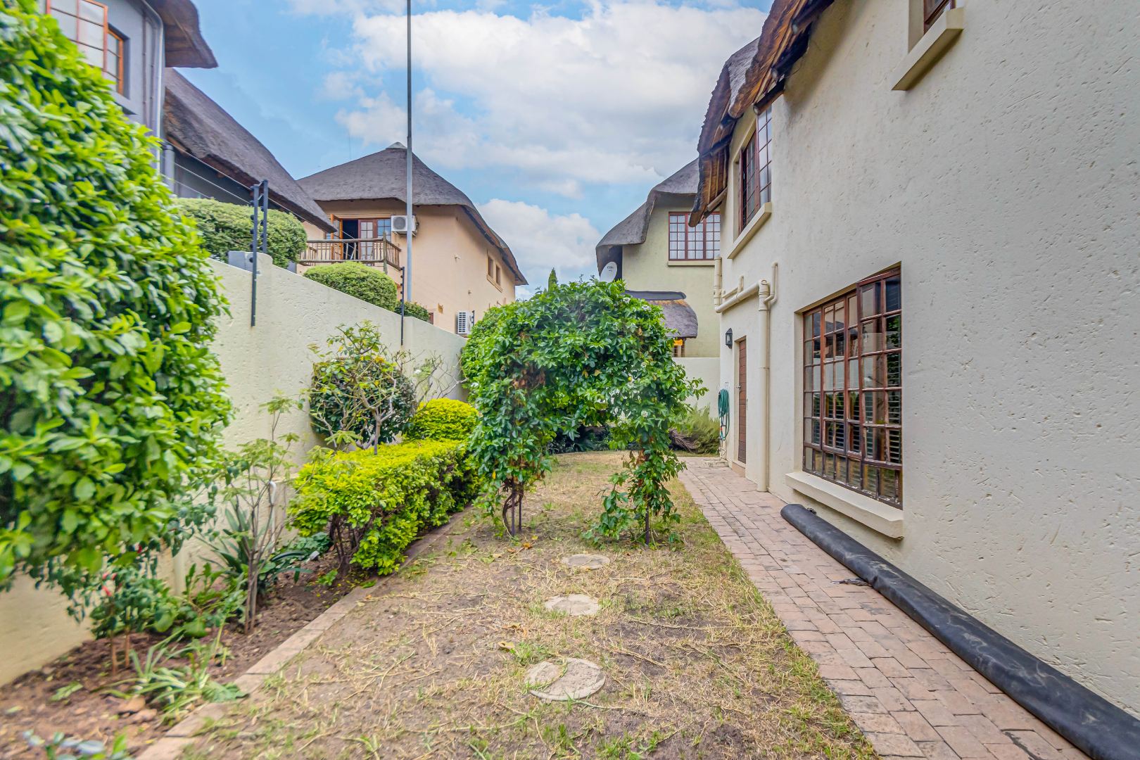 Discover luxury living in this exquisite 4 bedroom, 2.5 bathroom cluster FOR SALE situated in the prestigious Thanda Thula, Douglasdale. This beautiful and spacious, double story, thatched family home offers an expansive open-plan design that seamlessly connects the modern kitchen, living, and dining areas - ideal for effortless entertaining and everyday living. The downstairs area also features a guest toilet, scullery, clever under-stairs storage adding extra practicality, and convenient direct access to the double garage. Upstairs, the main bedroom is a private retreat complete with a large balcony, walk-in cupboard, and full en-suite bathroom. The second bedroom also enjoys its own balcony. All the bedrooms are generously sized. A spacious linen cupboard on the landing adds to the home’s thoughtful design. Stepping outside, there is a large covered patio overlooking a sparkling swimming pool and a low-maintenance garden - perfect for relaxed weekends and hosting friends. The property is fibre ready, pet friendly and located within a secure complex with 24hr security, offering peace of mind and a lock-up-and-go lifestyle without compromising on space or comfort.