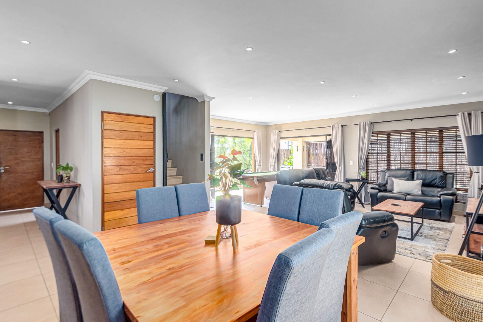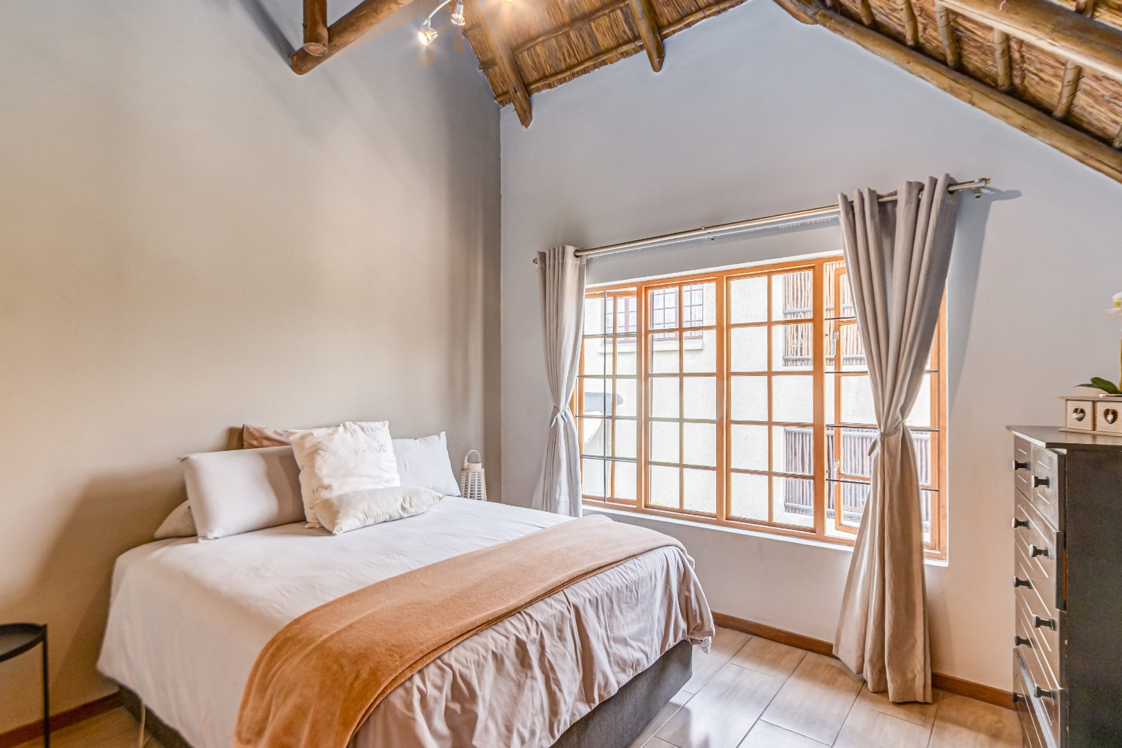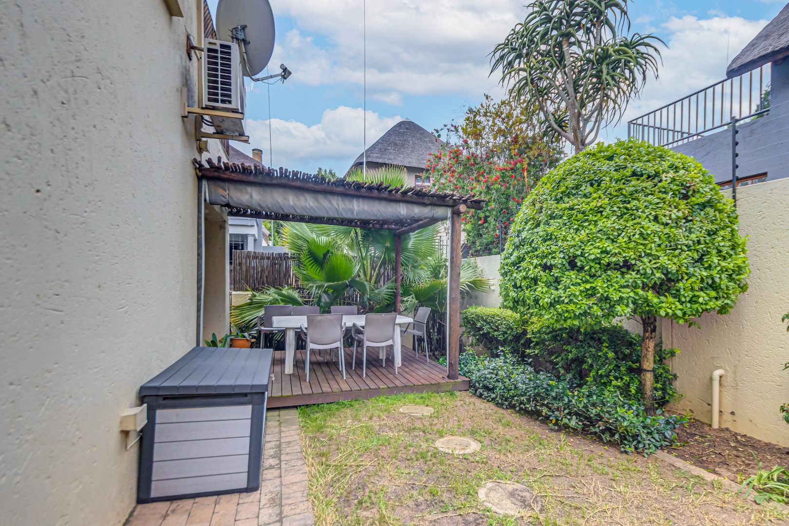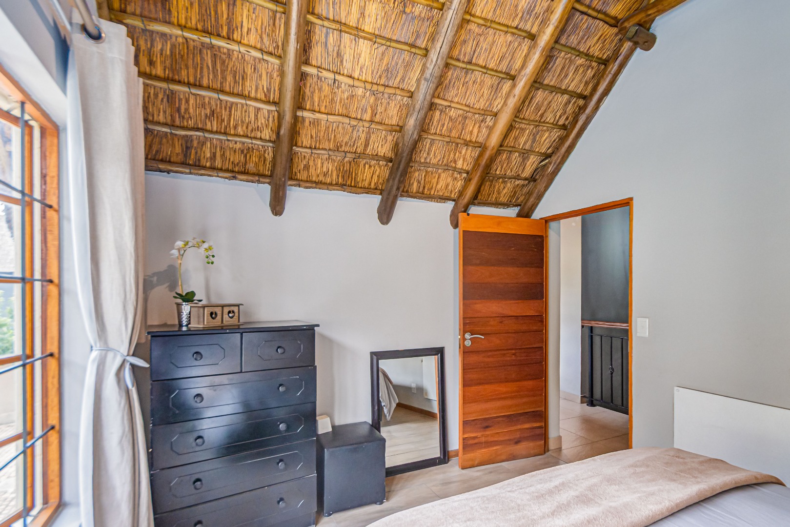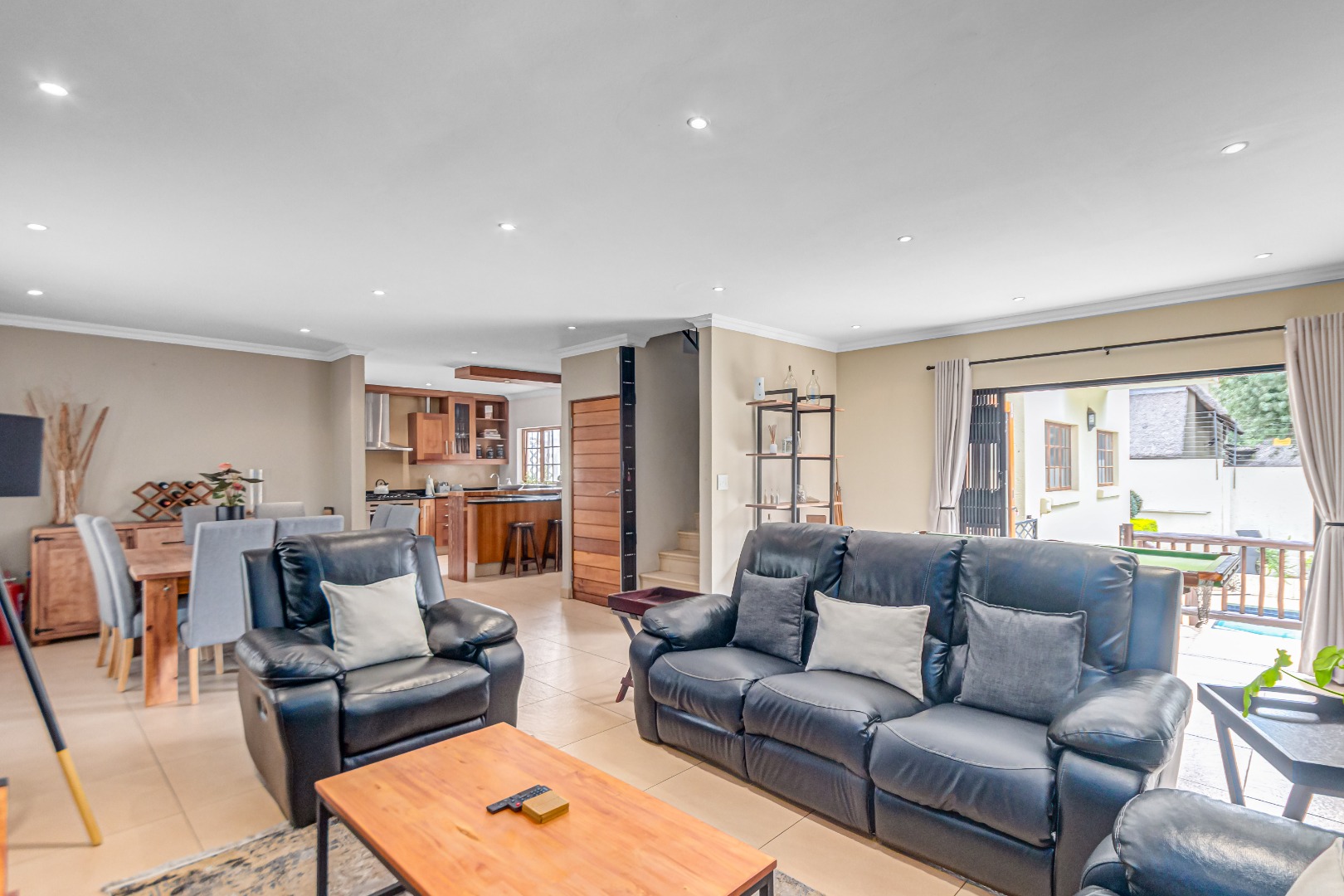 Discover luxury living in this exquisite 4 bedroom, 2.5 bathroom cluster FOR SALE situated in the prestigious Thanda Thula, Douglasdale. This beautiful and spacious, double story, thatched family home offers an expansive open-plan design that seamlessly connects the modern kitchen, living, and dining areas - ideal for effortless entertaining and everyday living. The downstairs area also features a guest toilet, scullery, clever under-stairs storage adding extra practicality, and convenient direct access to the double garage. Upstairs, the main bedroom is a private retreat complete with a large balcony, walk-in cupboard, and full en-suite bathroom. The second bedroom also enjoys its own balcony. All the bedrooms are generously sized. A spacious linen cupboard on the landing adds to the home’s thoughtful design. Stepping outside, there is a large covered patio overlooking a sparkling swimming pool and a low-maintenance garden - perfect for relaxed weekends and hosting friends. The property is fibre ready, pet friendly and located within a secure complex with 24hr security, offering peace of mind and a lock-up-and-go lifestyle without compromising on space or comfort.