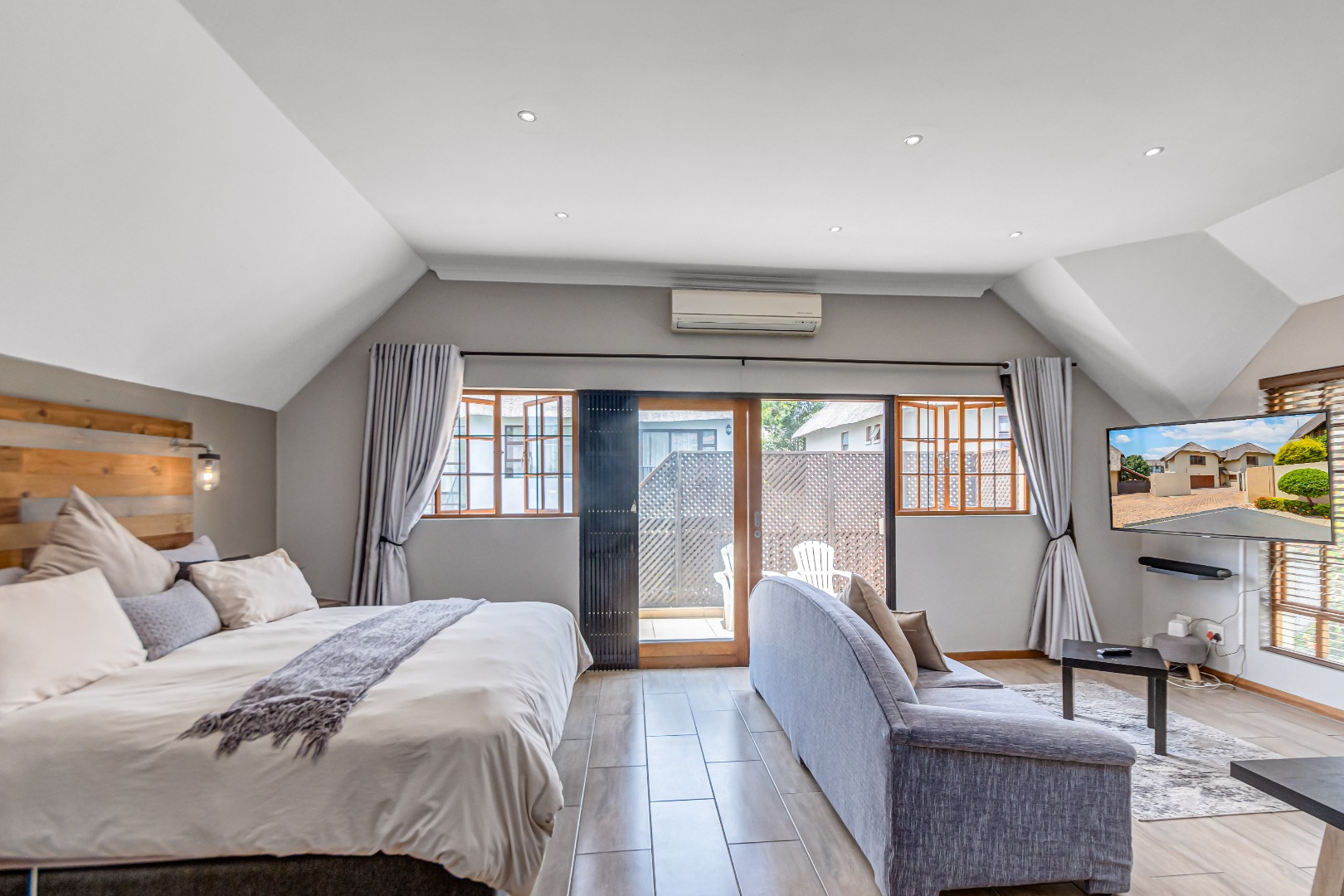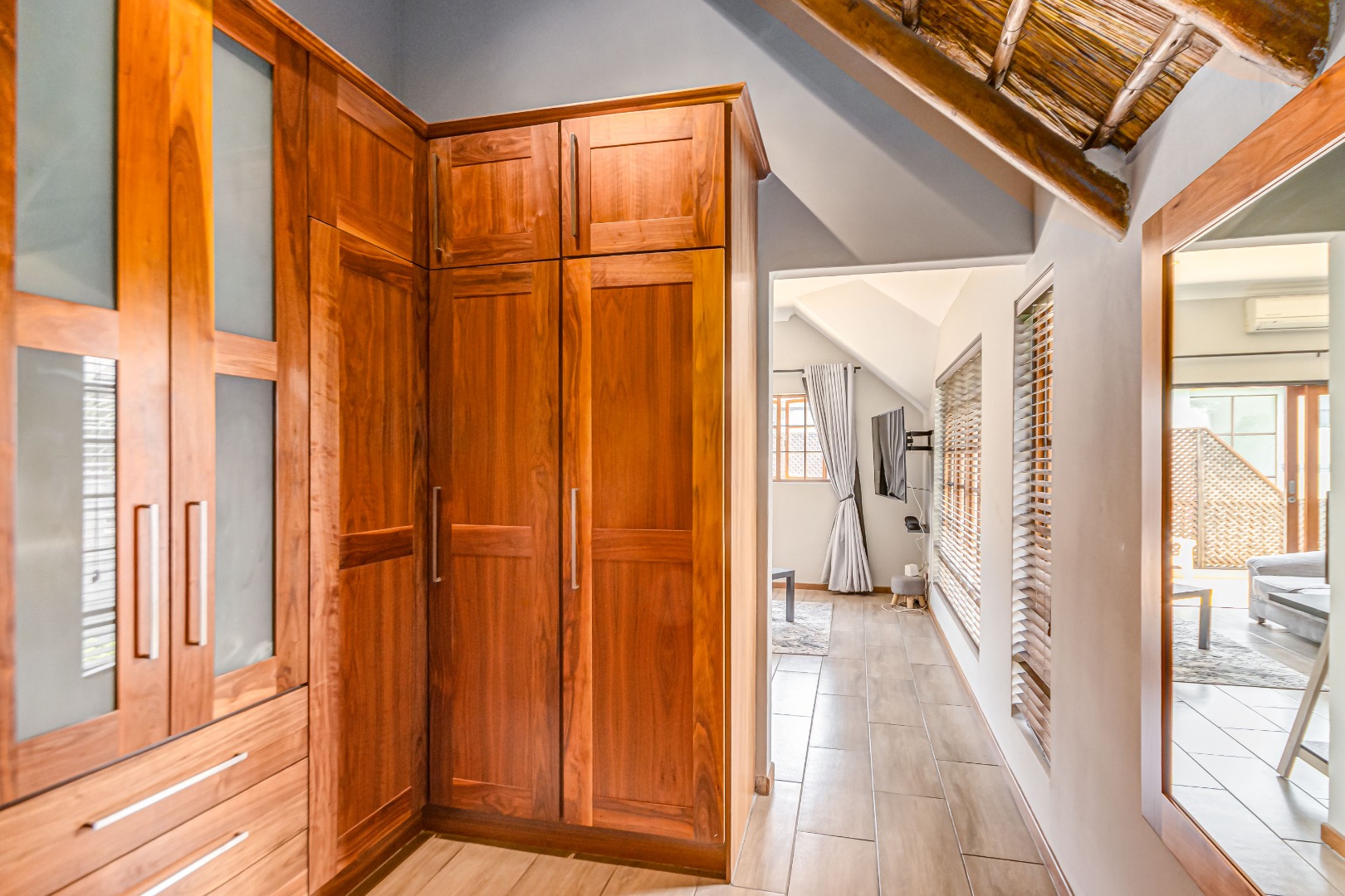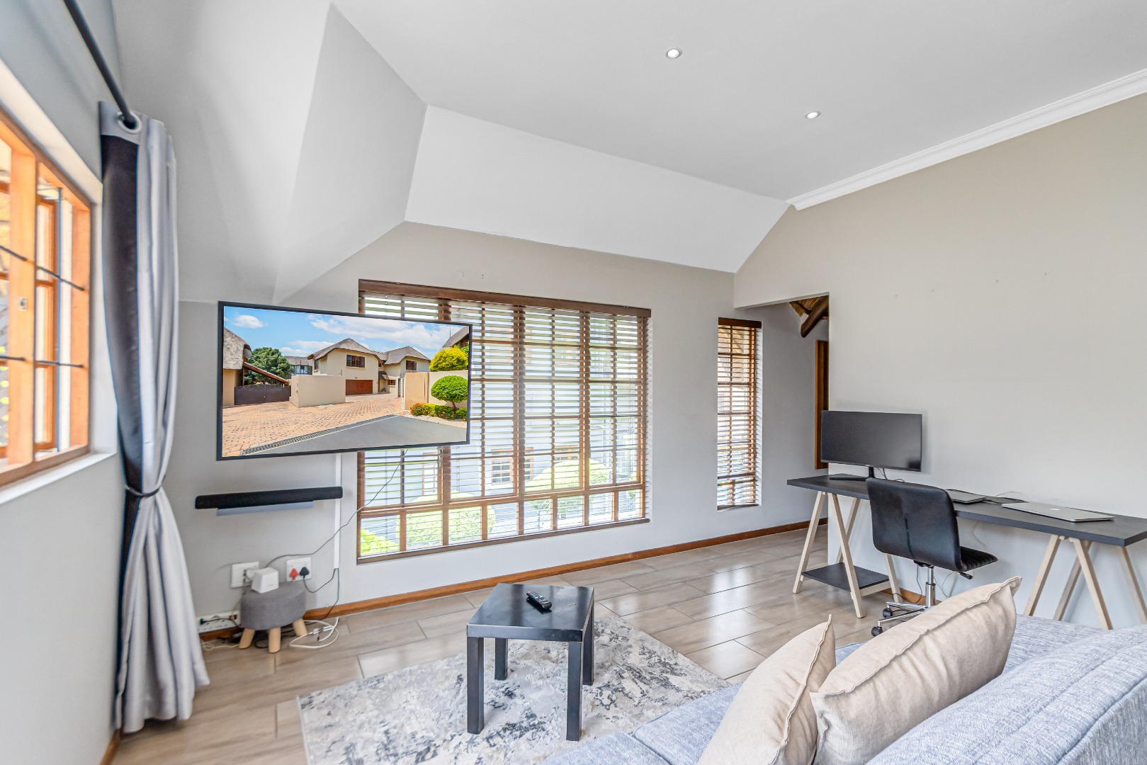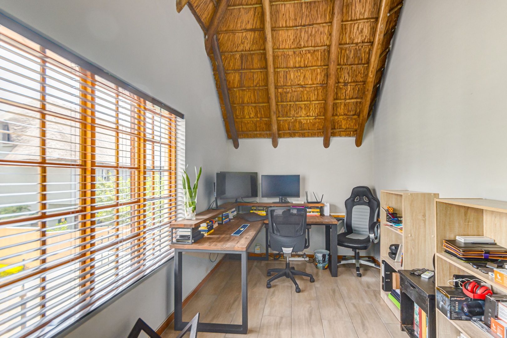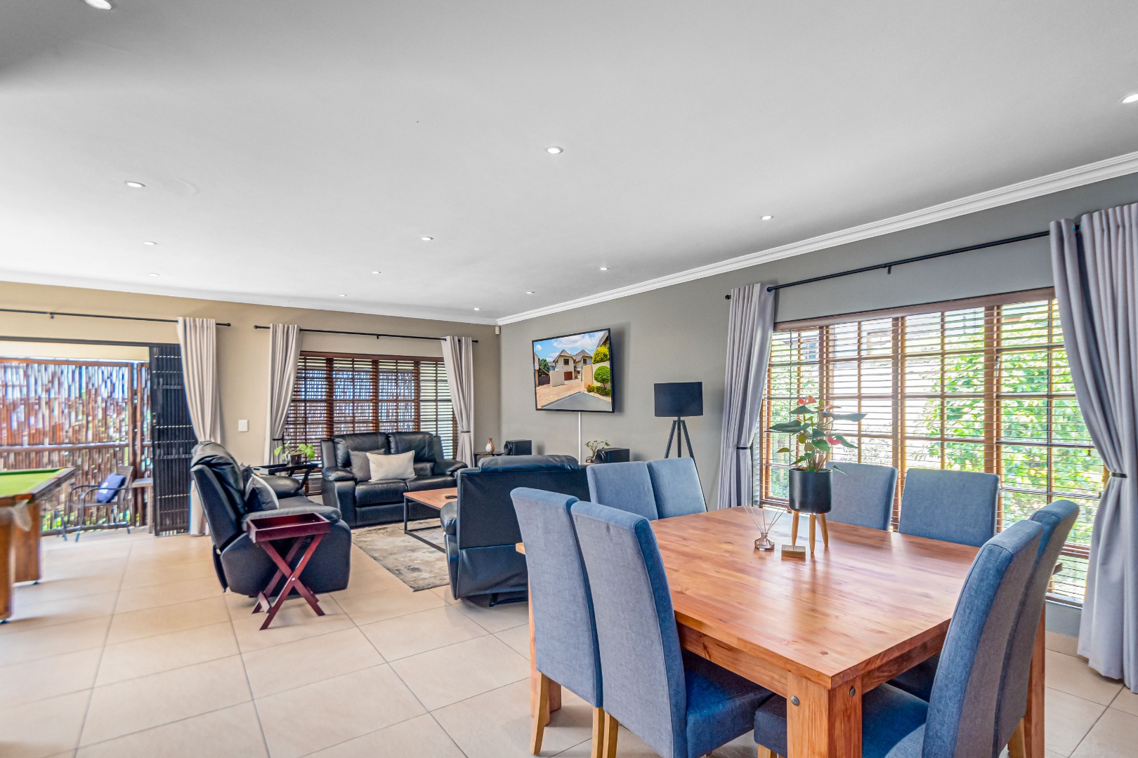 Discover luxury living in this exquisite 4 bedroom, 2.5 bathroom cluster FOR SALE situated in the prestigious Thanda Thula, Douglasdale. This beautiful and spacious, double story, thatched family home offers an expansive open-plan design that seamlessly connects the modern kitchen, living, and dining areas - ideal for effortless entertaining and everyday living. The downstairs area also features a guest toilet, scullery, clever under-stairs storage adding extra practicality, and convenient direct access to the double garage. Upstairs, the main bedroom is a private retreat complete with a large balcony, walk-in cupboard, and full en-suite bathroom. The second bedroom also enjoys its own balcony. All the bedrooms are generously sized. A spacious linen cupboard on the landing adds to the home’s thoughtful design. Stepping outside, there is a large covered patio overlooking a sparkling swimming pool and a low-maintenance garden - perfect for relaxed weekends and hosting friends. The property is fibre ready, pet friendly and located within a secure complex with 24hr security, offering peace of mind and a lock-up-and-go lifestyle without compromising on space or comfort.