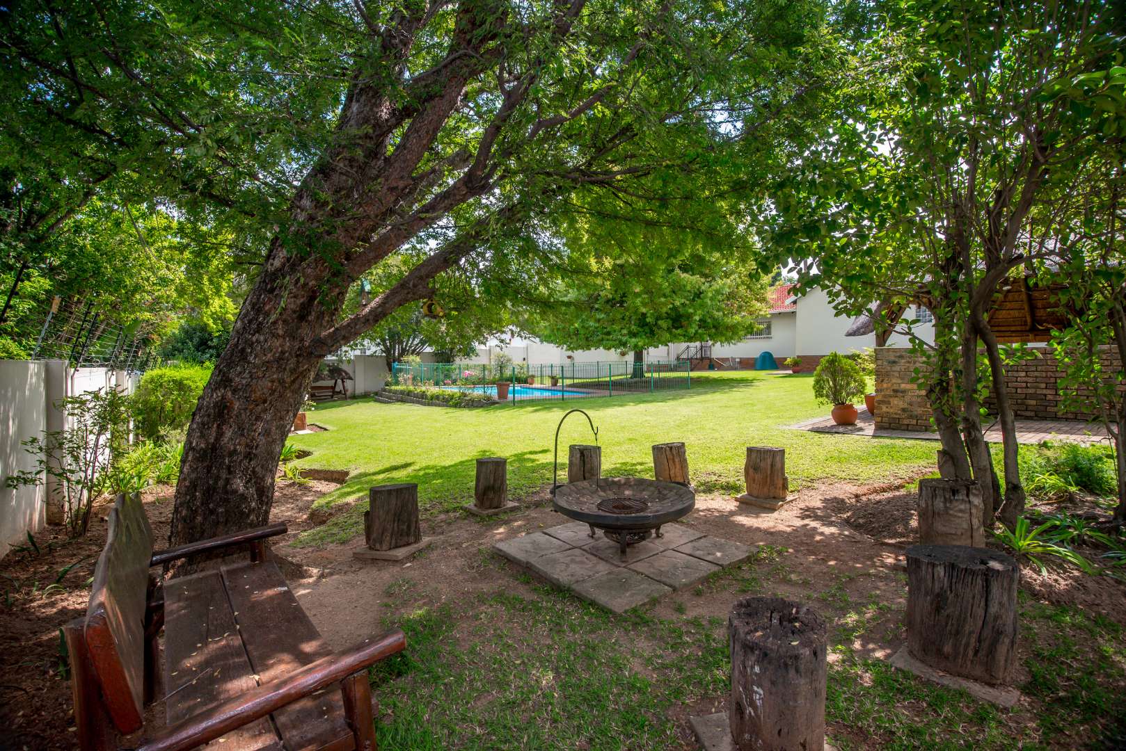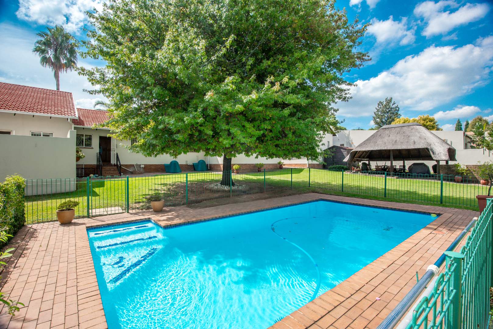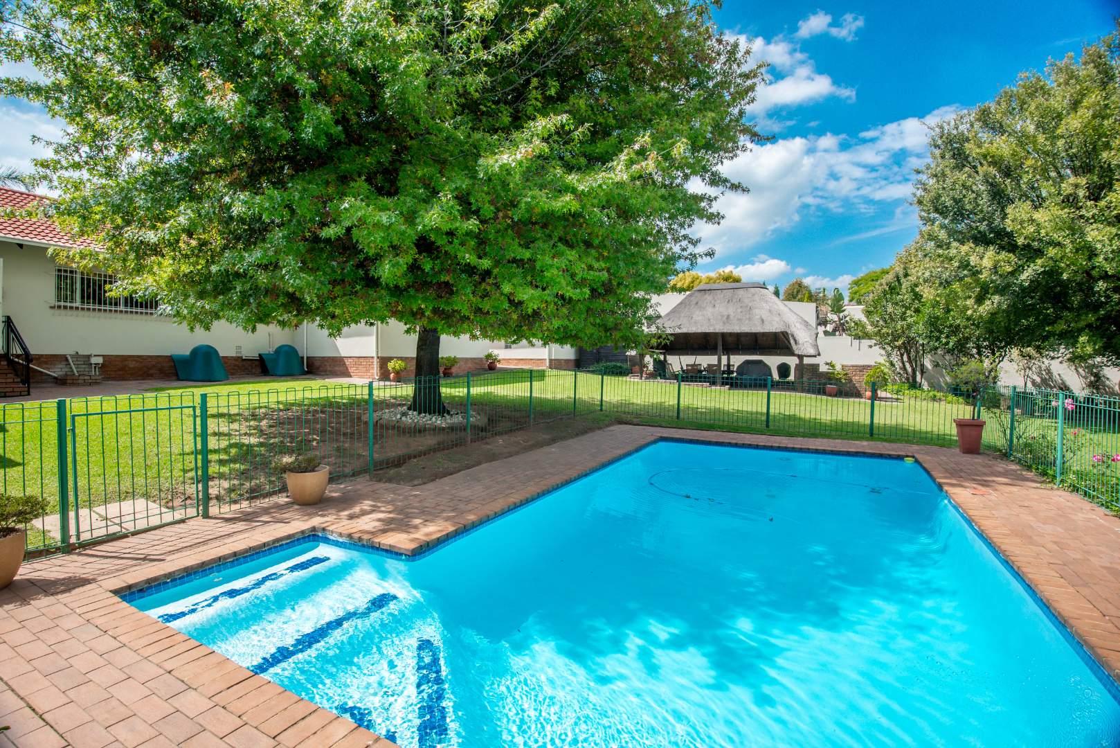 Inside this property, you'll find plenty of light and airy rooms with a massive separate fully equipped cottage, a separate entrance to a fairly large office space/study, a charming lapa, a massive sparkling swimming pool, a magnificent garden where tall lush trees surround the boundary walls, a boma tucked away in a peaceful corner of the garden, an open plan dinning room and lounge with a combustion fireplace in the centre – The two kitchens mean you'll never run out of cooking space, whether you're whipping up a quick snack in the cottage or hosting a big dinner party in the main house. Plus, it's got that lovely outdoor lifestyle vibe in the garden for the ones that enjoy entertaining family, friends, playdates for kids, your furry friends will love it too! and has the space for lots of celebrations/functions/parties to be held throughout the year.