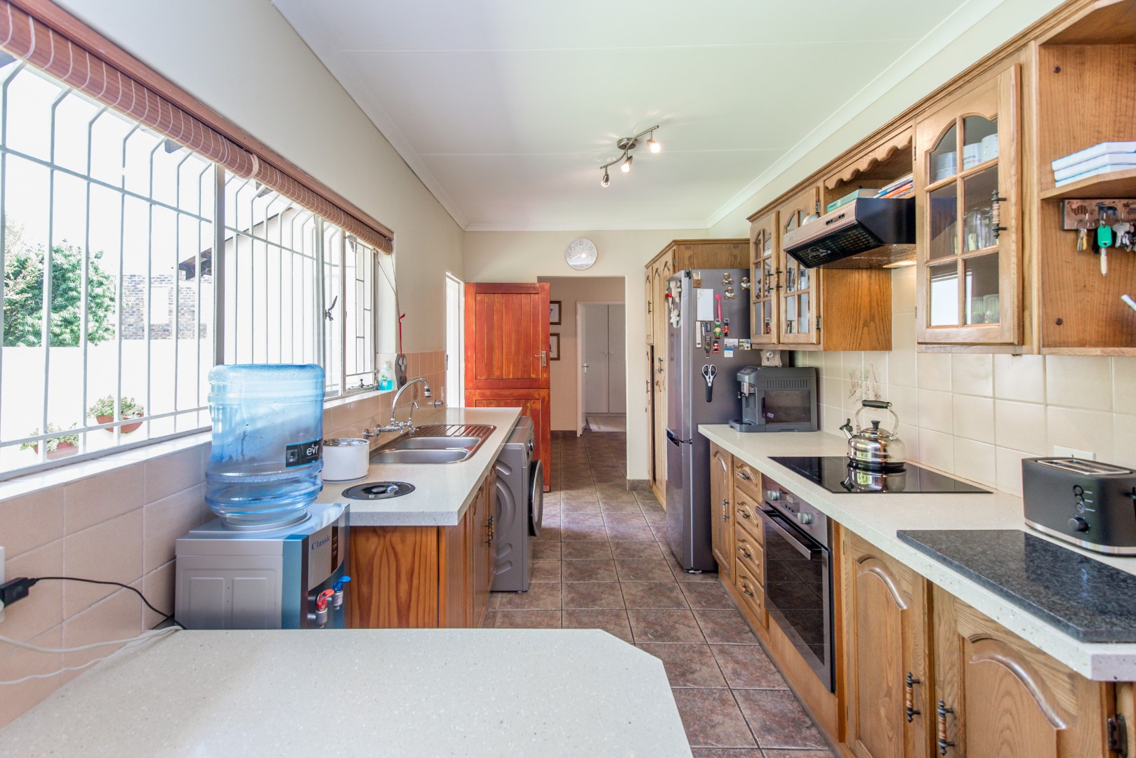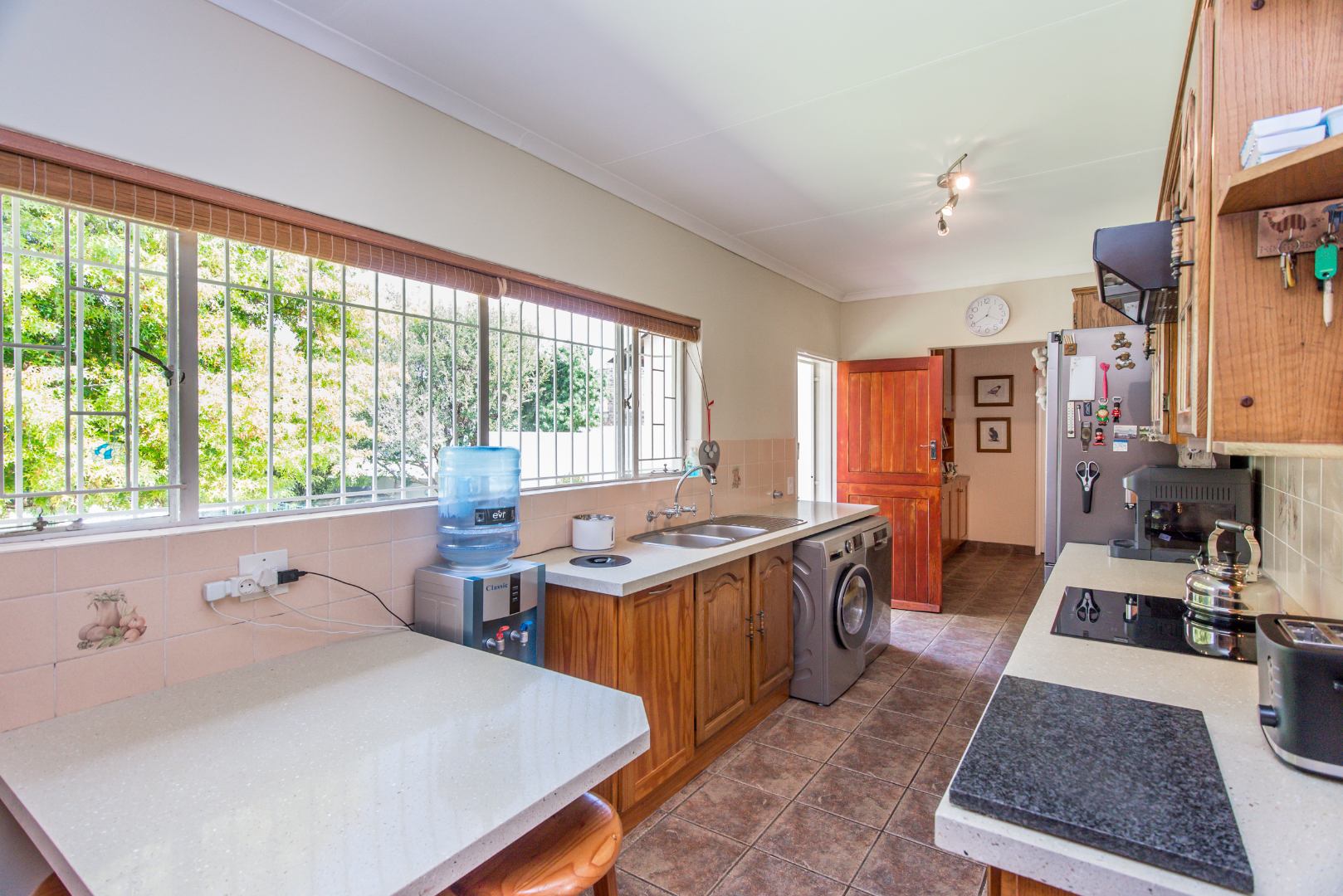 Practicality is key with this home, boasting two garages and four parking spots, so there’s always space for your vehicles. You’ll also appreciate the staff quarters. Security is top-notch with an access gate, alarm, electric fencing, intercom, CCTV, burglar bars, and a security gate. Plus, with a battery inverter, fibre, and ADSL, you’re all set for modern living. This home truly has it all!