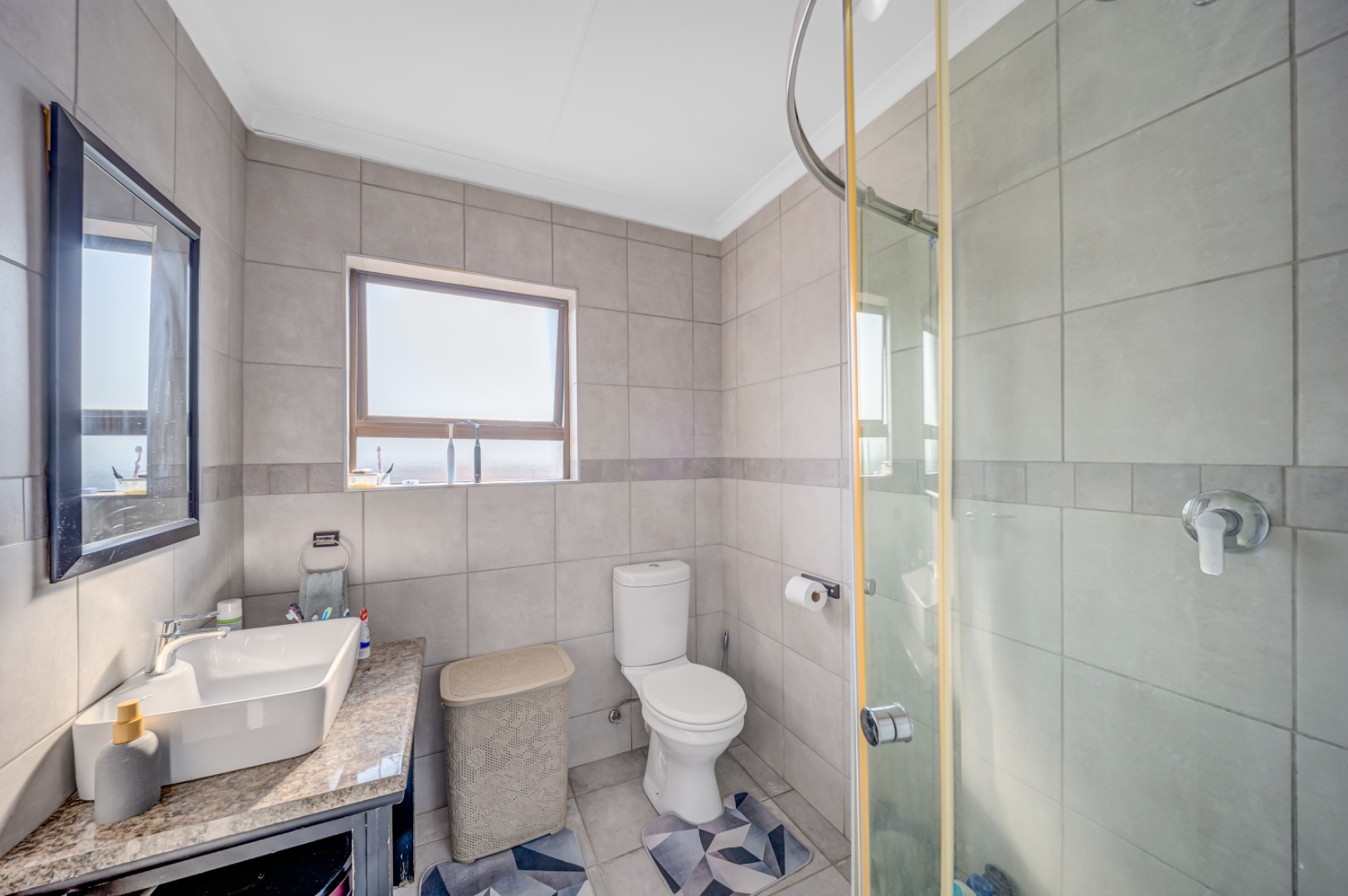 Both bedrooms are well-sized and benefit from the apartment’s light and airy feel. The bathroom is fitted with a shower, basin and toilet, and includes a window for natural light and ventilation, adding to the overall comfort of the home.