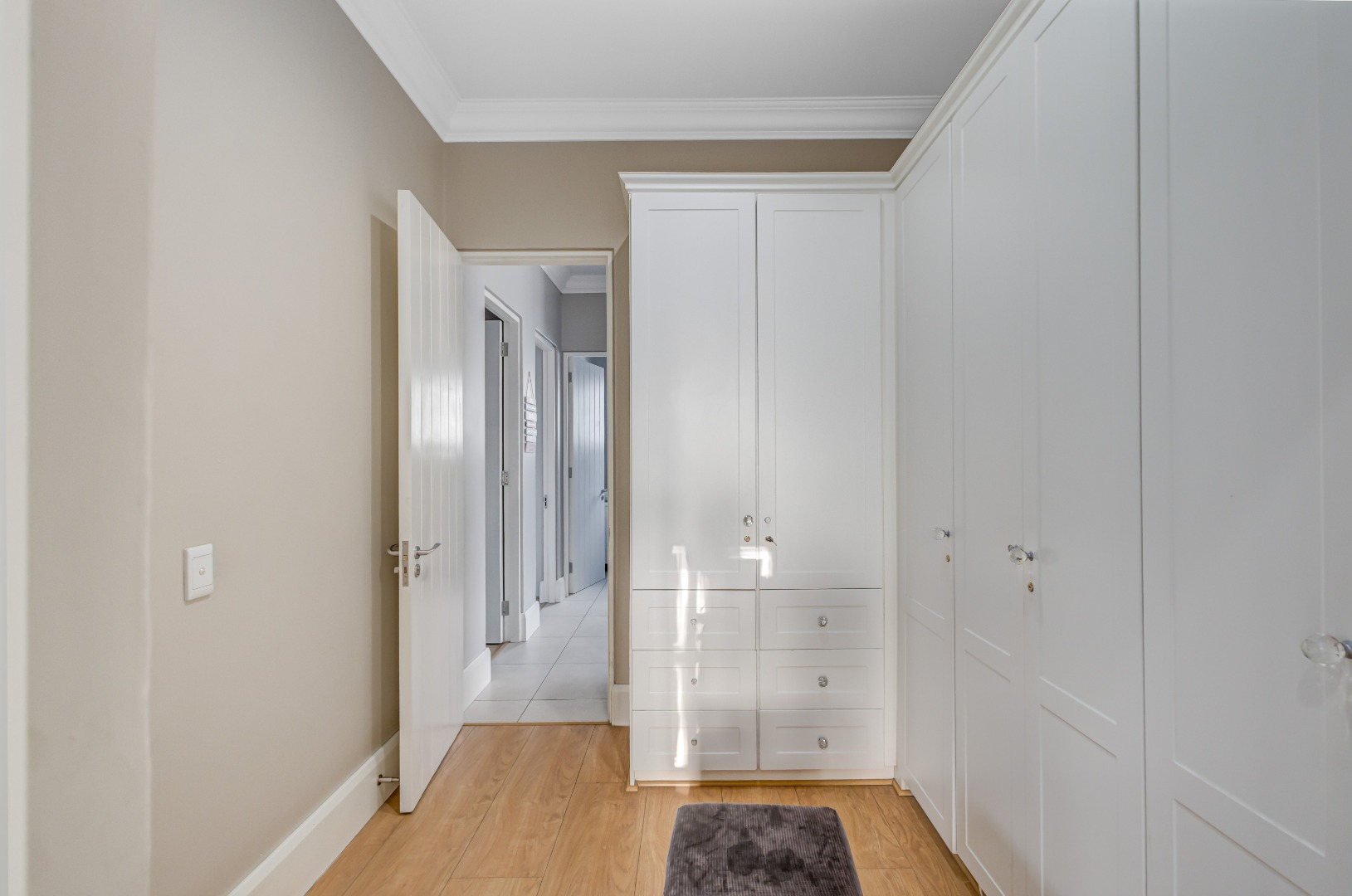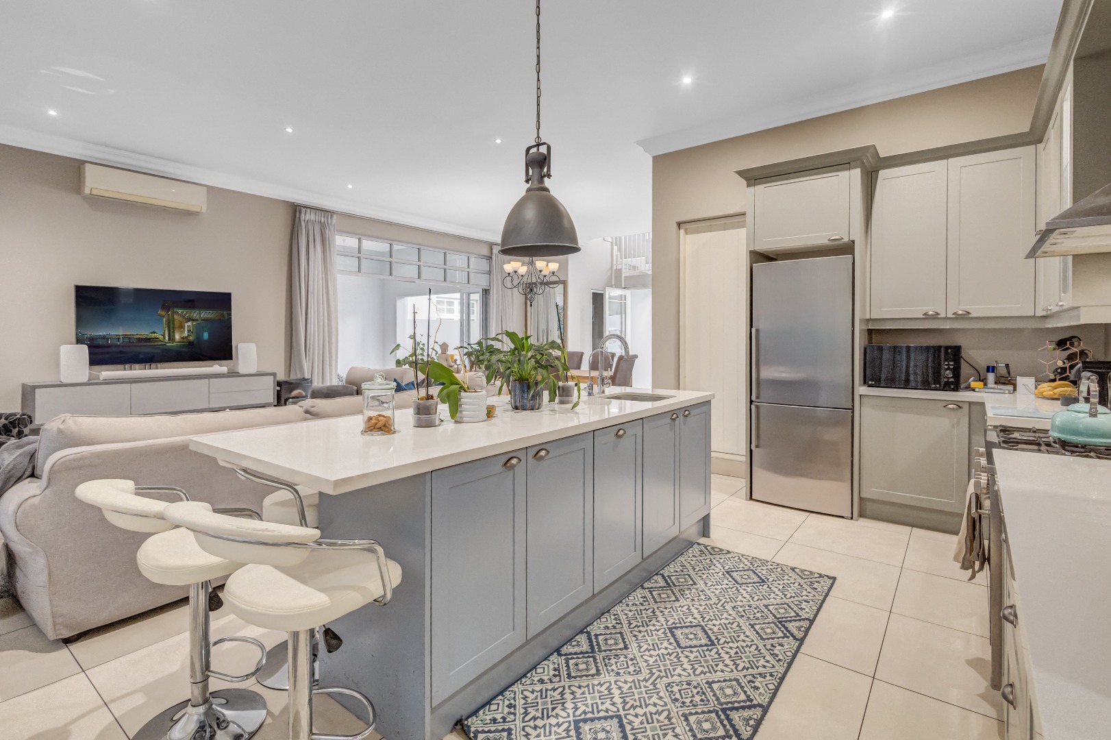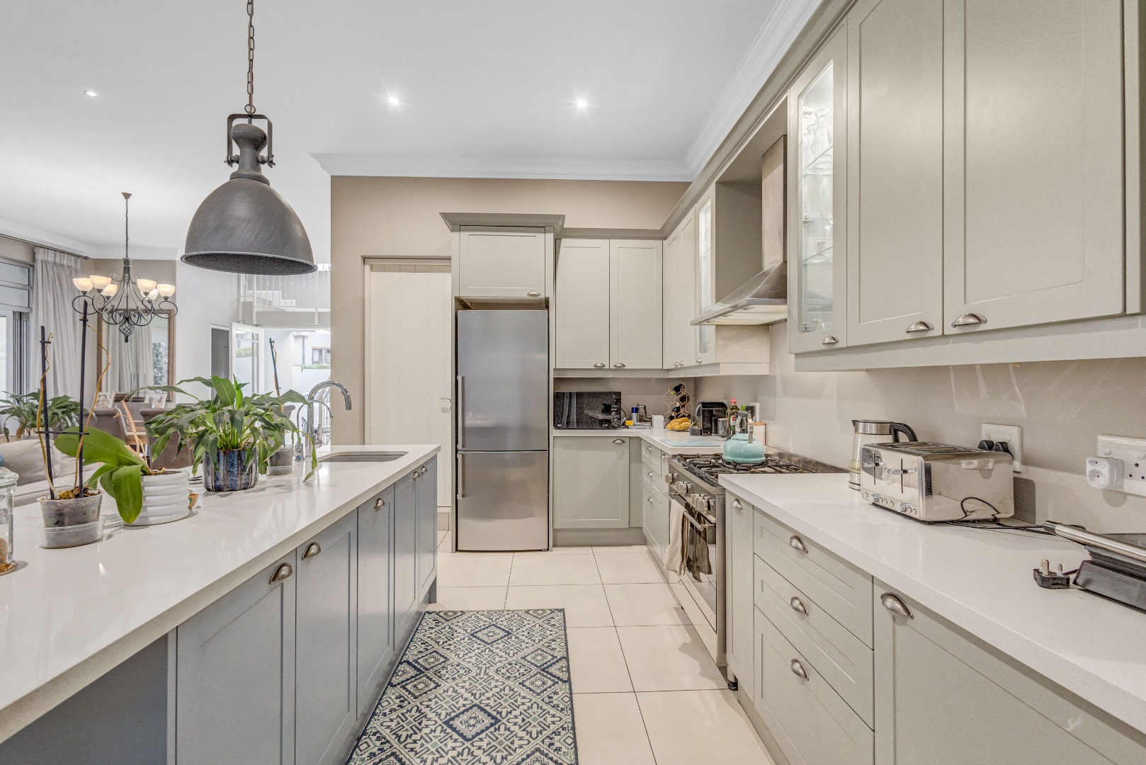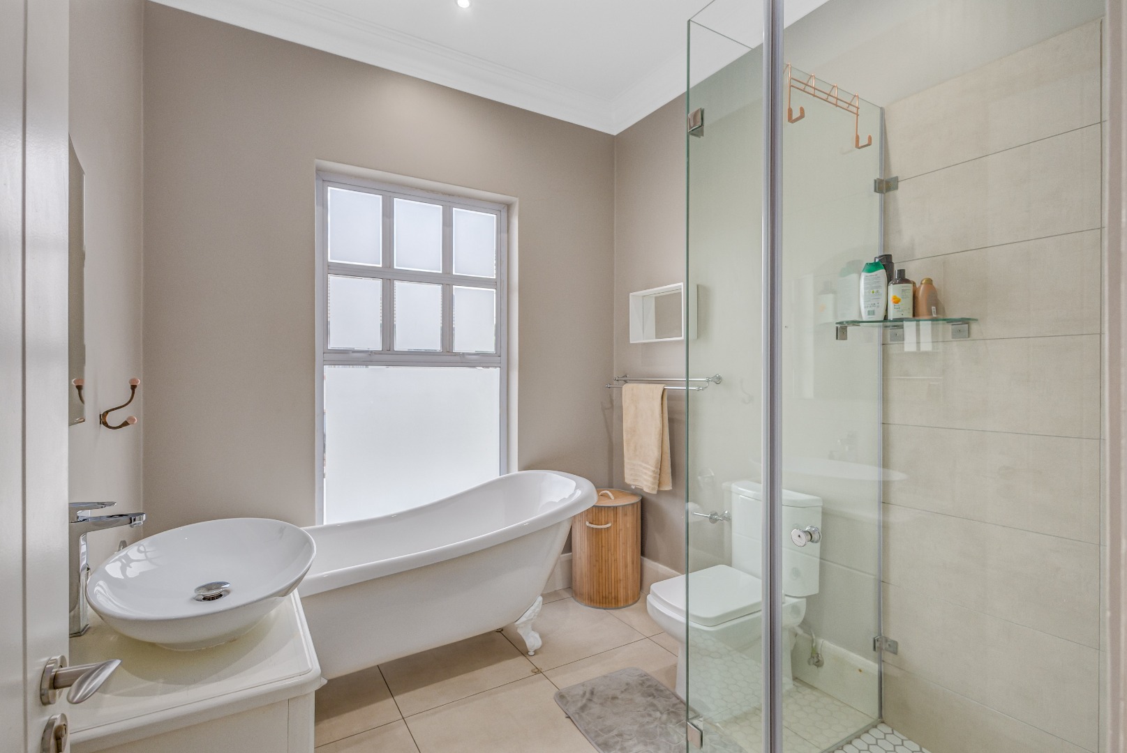 Nestled in the heart of the sought-after Hawthorn Village Estate, this beautifully maintained 4 bedroom, 3.5 bathroom family home offers the perfect blend of elegance, space, and functionality. Designed for modern living, all four bedrooms are located upstairs, each featuring laminate wooden flooring and built-in cupboards. The main bedroom is a true retreat with its walk-in cupboards, luxurious en-suite bathroom boasting a ball-and-claw bath and double vanity, and a private balcony ideal for enjoying your morning coffee. The second and third bedrooms are ideal for children and share easy access to a modern bathroom with a shower, while the fourth bedroom serves perfectly as a guest suite with a full bathroom nearby. A study nook on the landing creates the ideal work-from-home or homework space. Downstairs, you’re welcomed into a large, light-filled open-plan living area that seamlessly combines the lounge, dining room, and kitchen. The living area is enhanced by double-volume ceilings, an inviting fireplace, and air conditioning for year-round comfort. The spacious kitchen offers ample storage, workspace, and modern finishes, making it the perfect hub for family gatherings. Stacking doors open onto an entertainment patio that overlooks a beautifully manicured garden, creating the perfect indoor-outdoor flow for entertaining or simply relaxing in peace. The home also includes a double automated garage with extra storage, battery backup power, aluminum window and door frames and excellent security, making it the ideal family sanctuary in a premium estate setting.