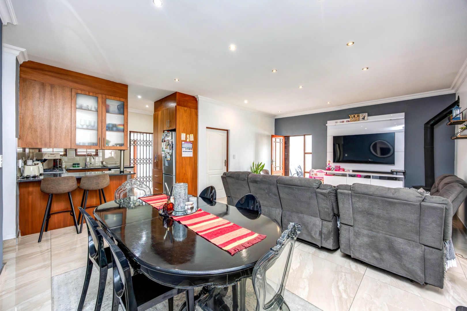 Step inside to a welcoming open-plan living area, where natural light flows through the home, creating a warm and inviting atmosphere. The fireplace adds a cozy touch, perfect for relaxed evenings with family or entertaining guests.