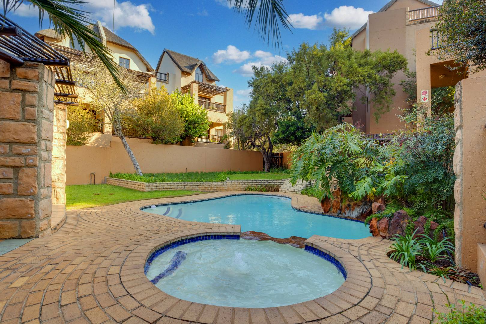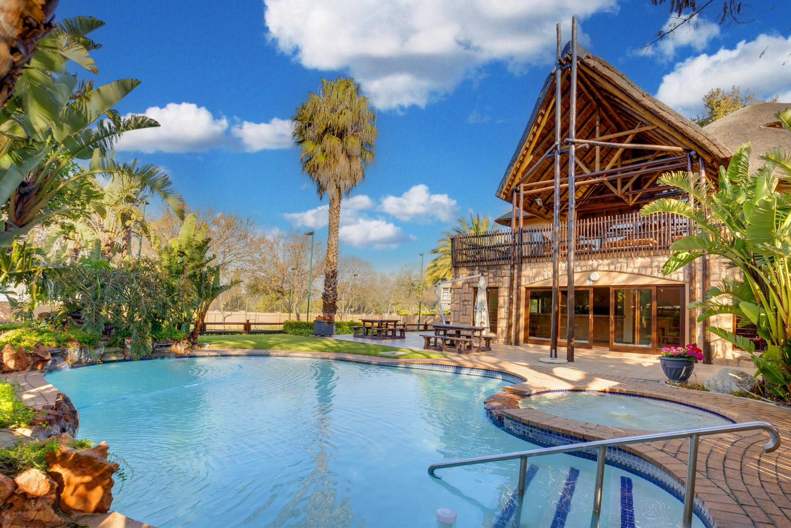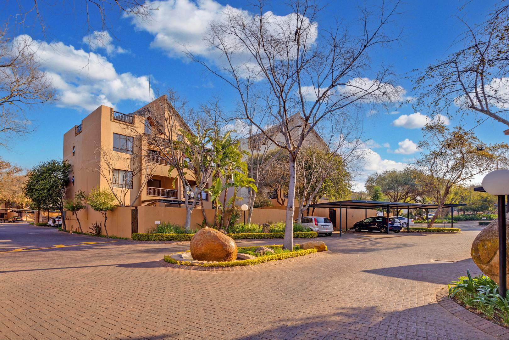 The living area is thoughtfully tiled, making it easy to maintain. Exterior benefits include one covered carport conveniently located near the unit, as well as ample visitor parking. The complex itself boasts beautifully landscaped grounds with mature trees, 2 pools, a tennis court, and 24-hour security. Plus, it's within walking distance to the Fourways shops and Monte Casino, making it a prime location for your new home.