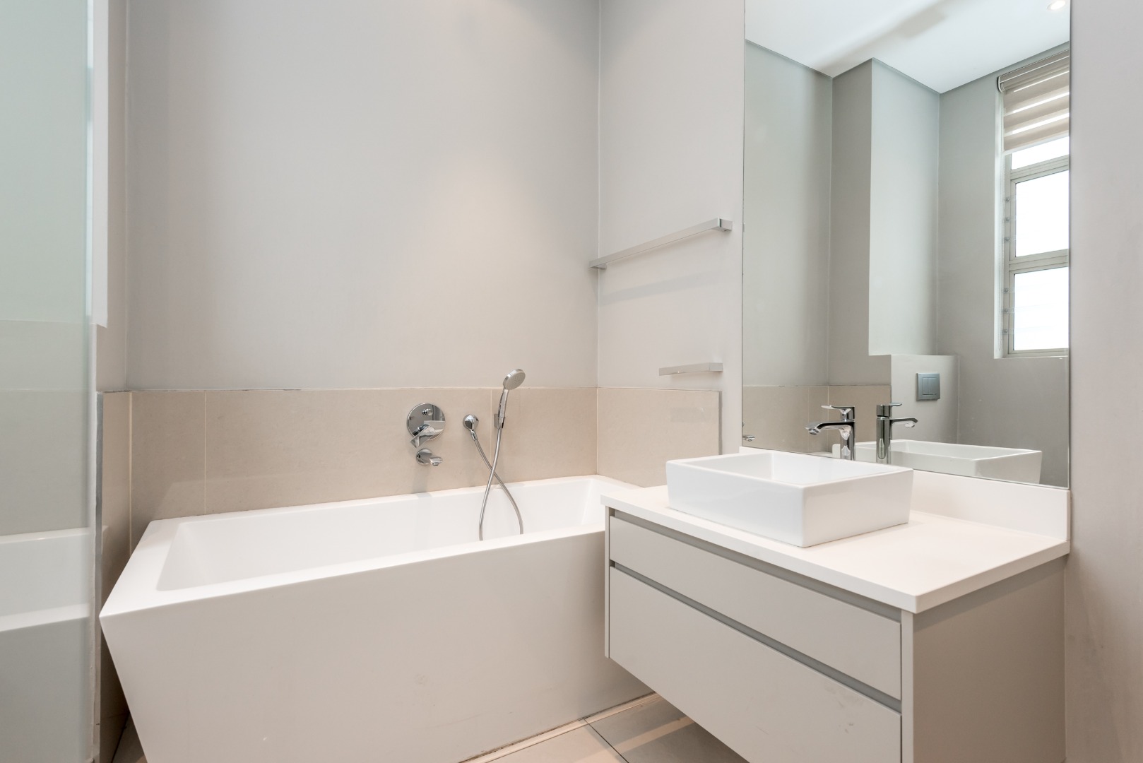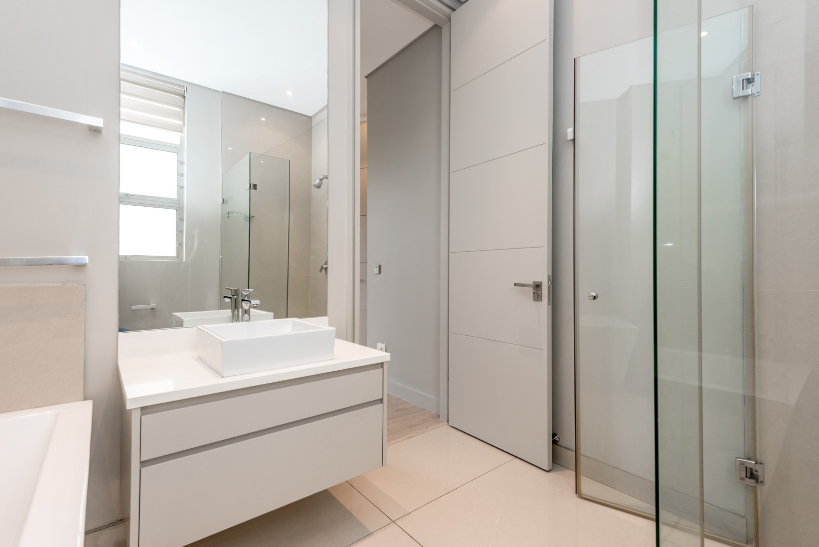 The apartment features two well-appointed bedrooms, each benefiting from its own en-suite bathroom, ensuring privacy and comfort. The contemporary finishes extend throughout these private spaces, offering a serene retreat.