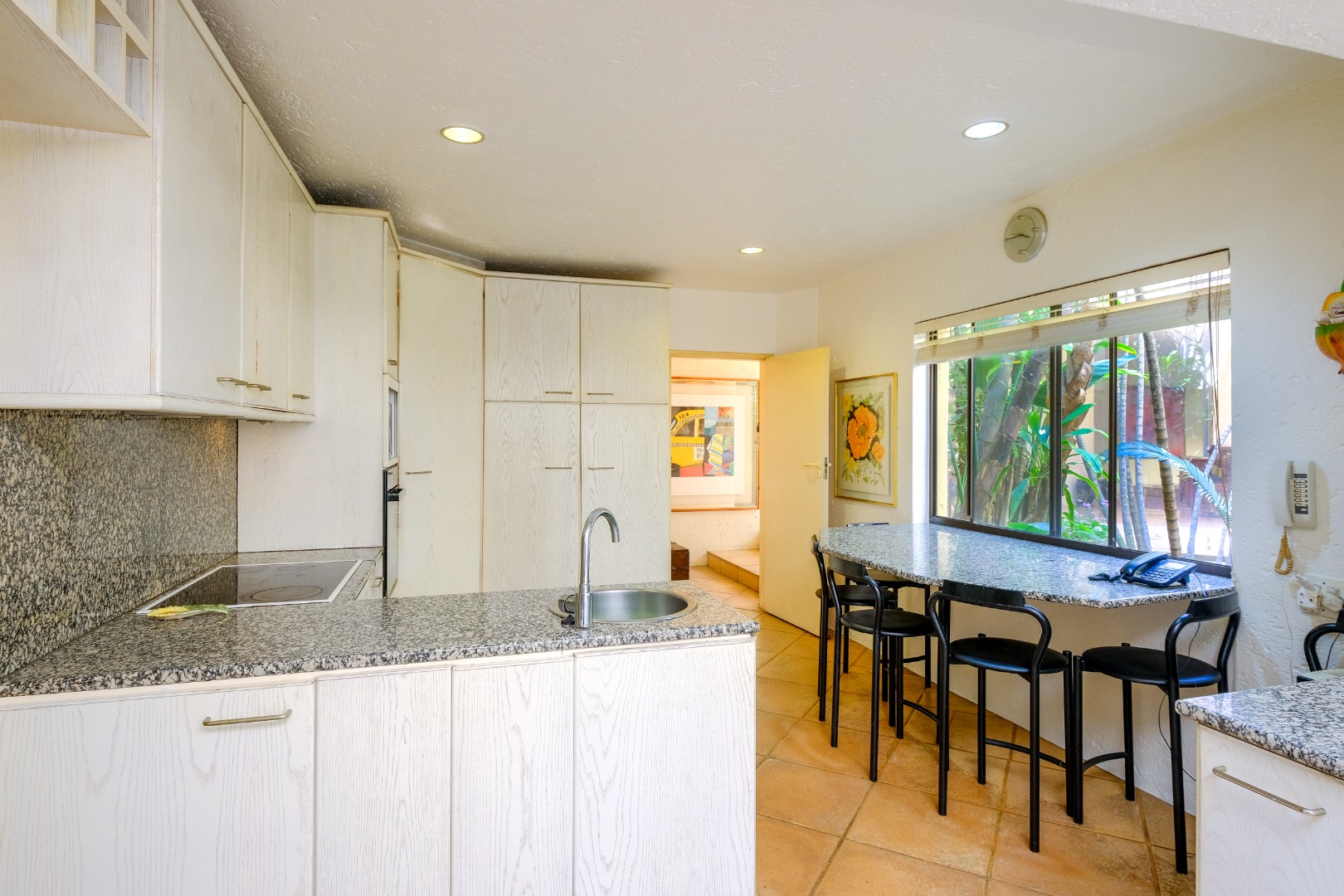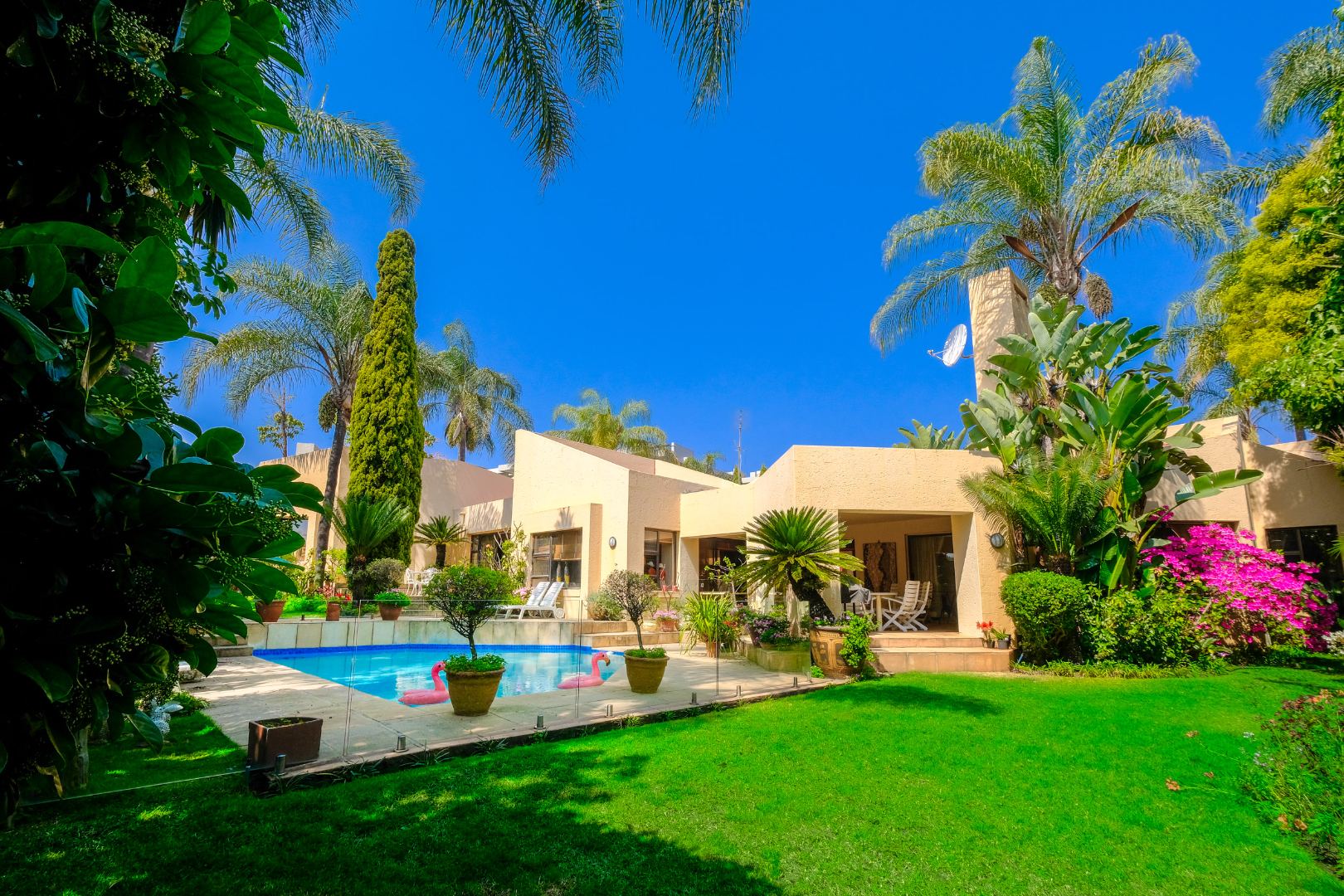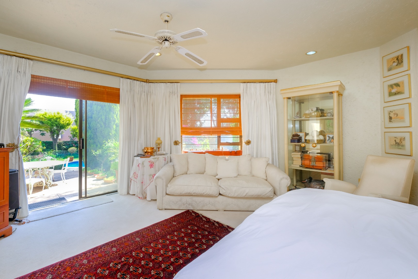 All the bedrooms are spacious, light and airy, with built in cupboards, two en suite with fans and the Master bedroom has a walk-in-closet with a fan and aircon too that lead out onto the second patio amongst the well kept garden and pool.