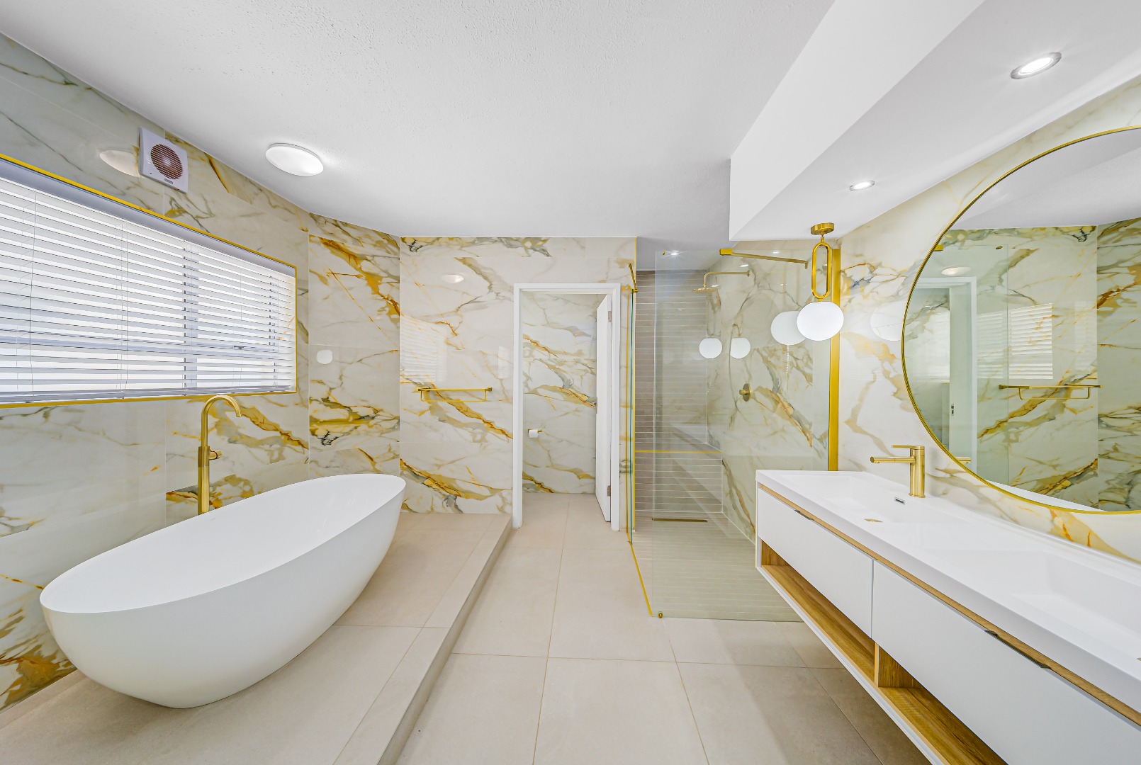 The bathrooms? Spa-level. Freestanding tubs. Marble drama. Gold details.