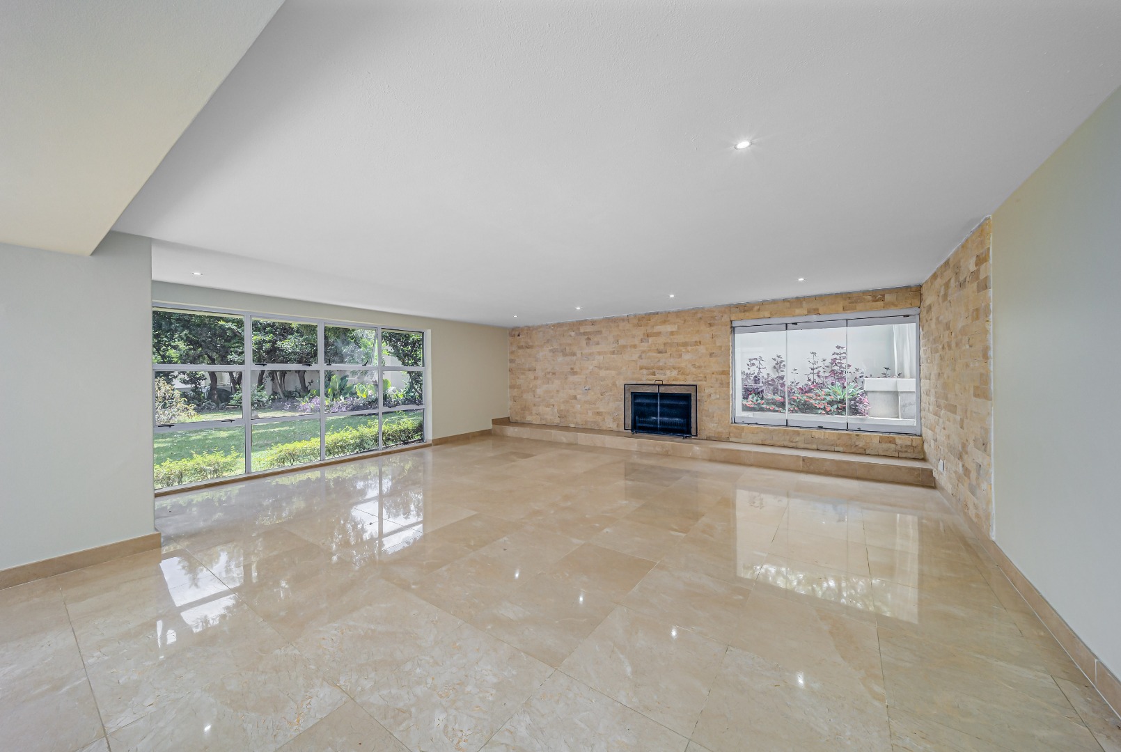 From the second you step in, those glossy floors and that statement fireplace say one thing: