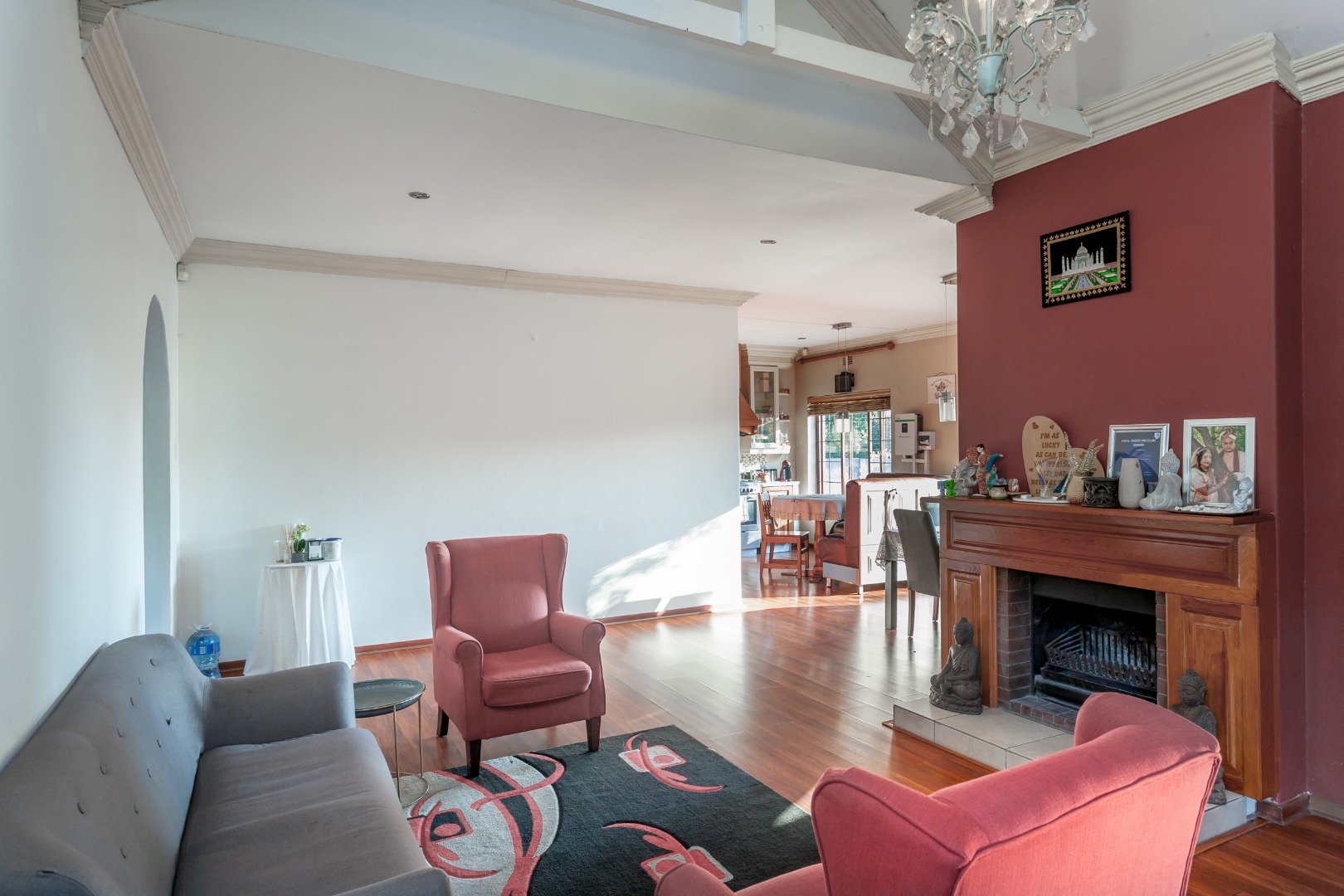 The heart of the home lies in its expansive receptions areas with high ceilings most of which flow effortlessly onto a massive covered patio the ultimate space for year-round entertaining or relaxed family time that overlooks a good sized garden and a sparkling swimming pool.