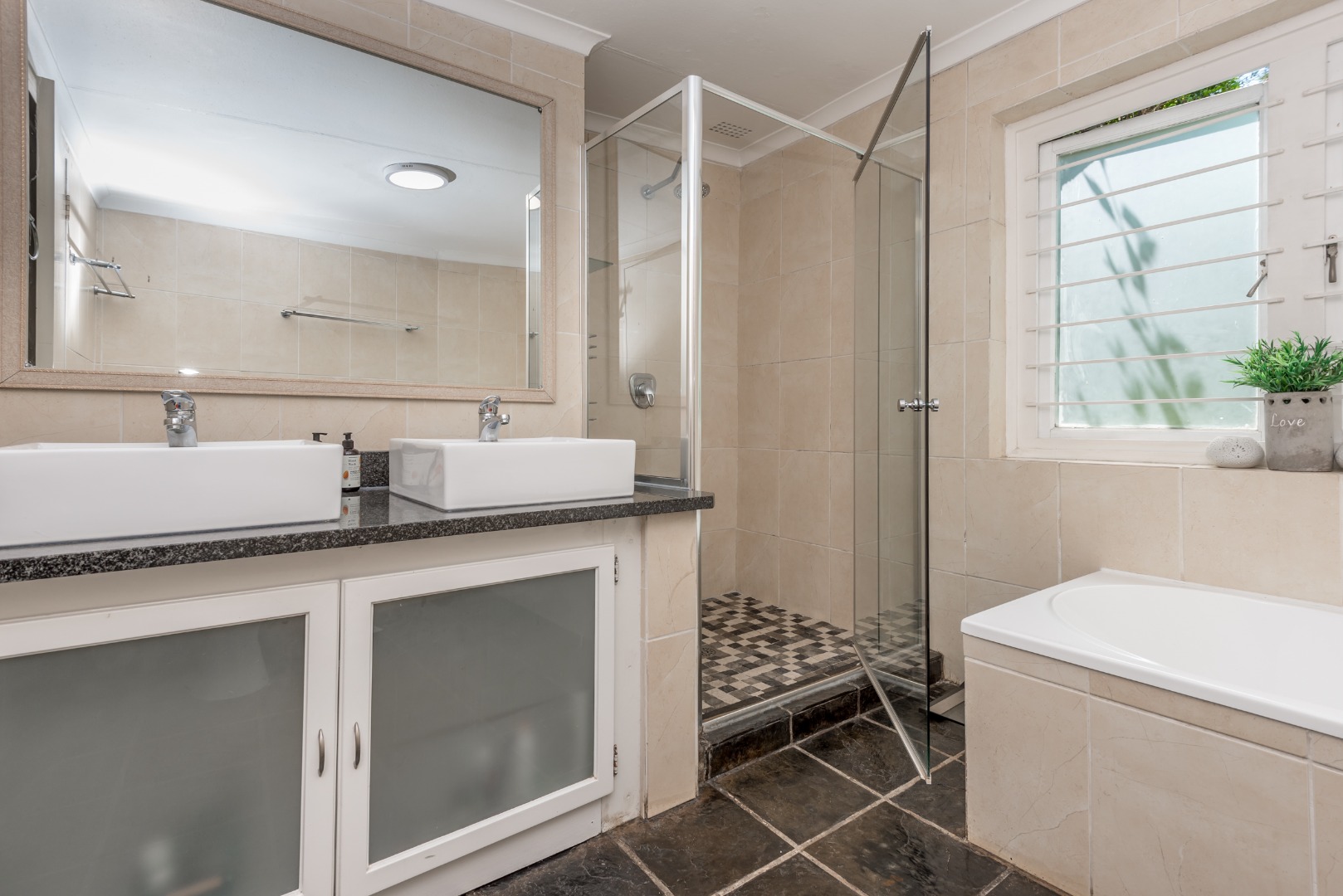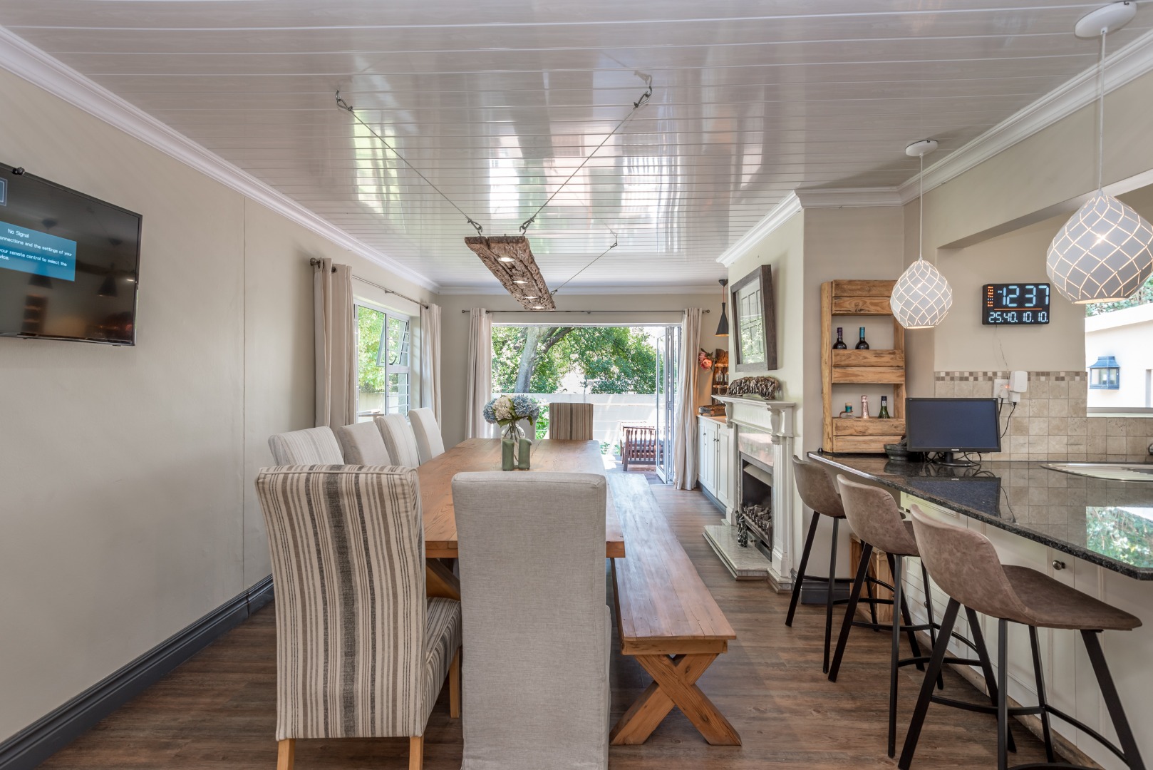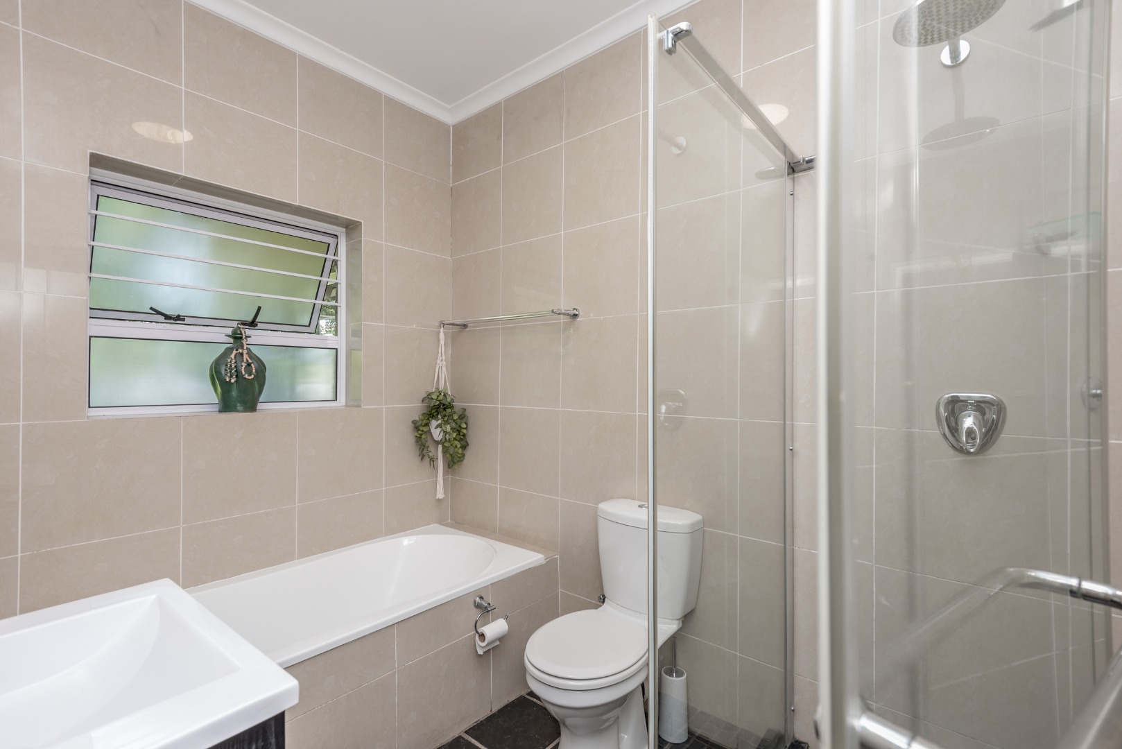 Security is a top priority here, with features like an access gate, alarm system, electric fencing, intercom, CCTV, burglar bars, and security gates, all within a totally walled property in a gated community and a boomed off area. You'll also appreciate the modern touches like air conditioning, a solar geyser, solar panels, a battery inverter for backup power, a generator and an irrigation system to keep your garden lush. Fibre internet connectivity ensures you stay connected.