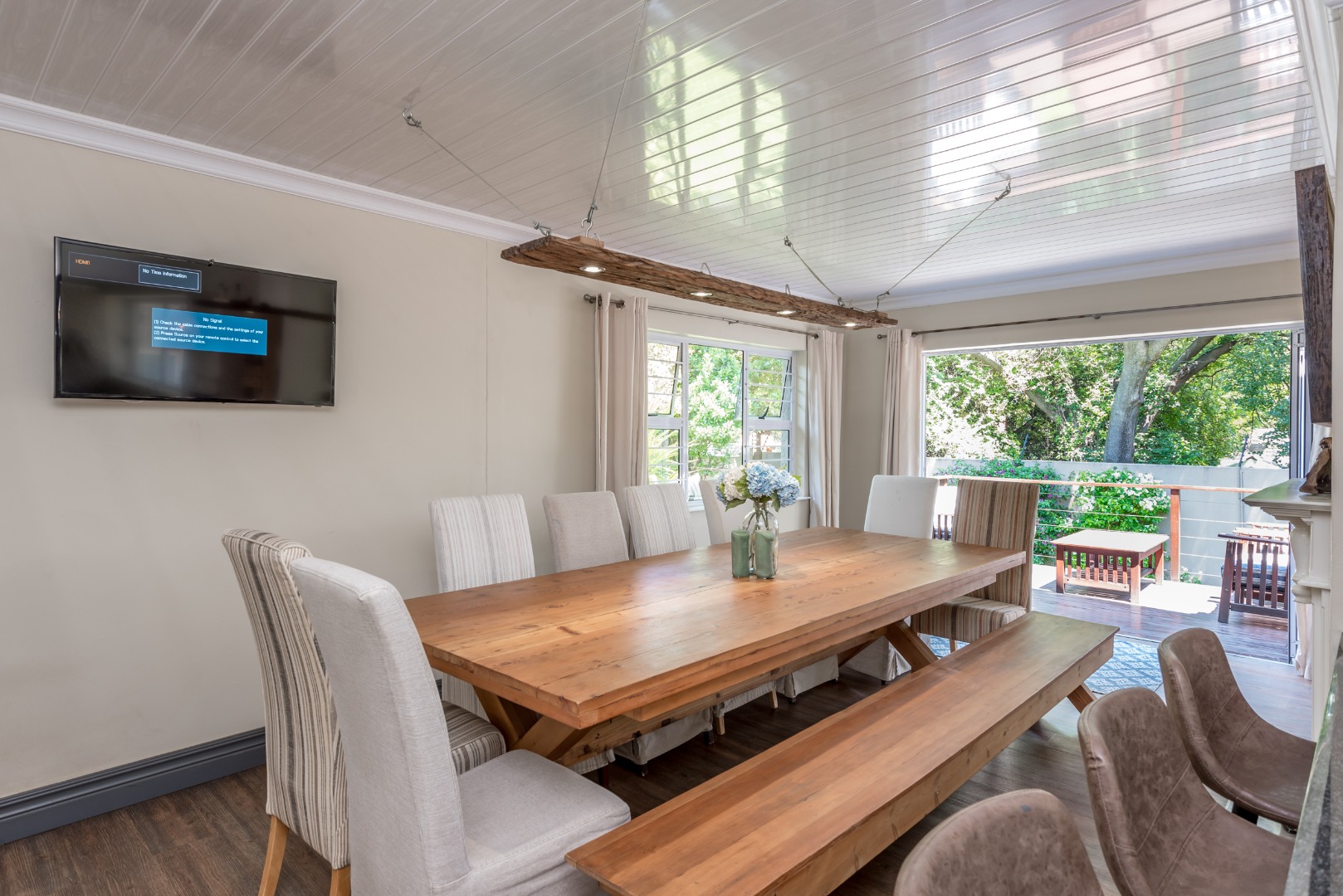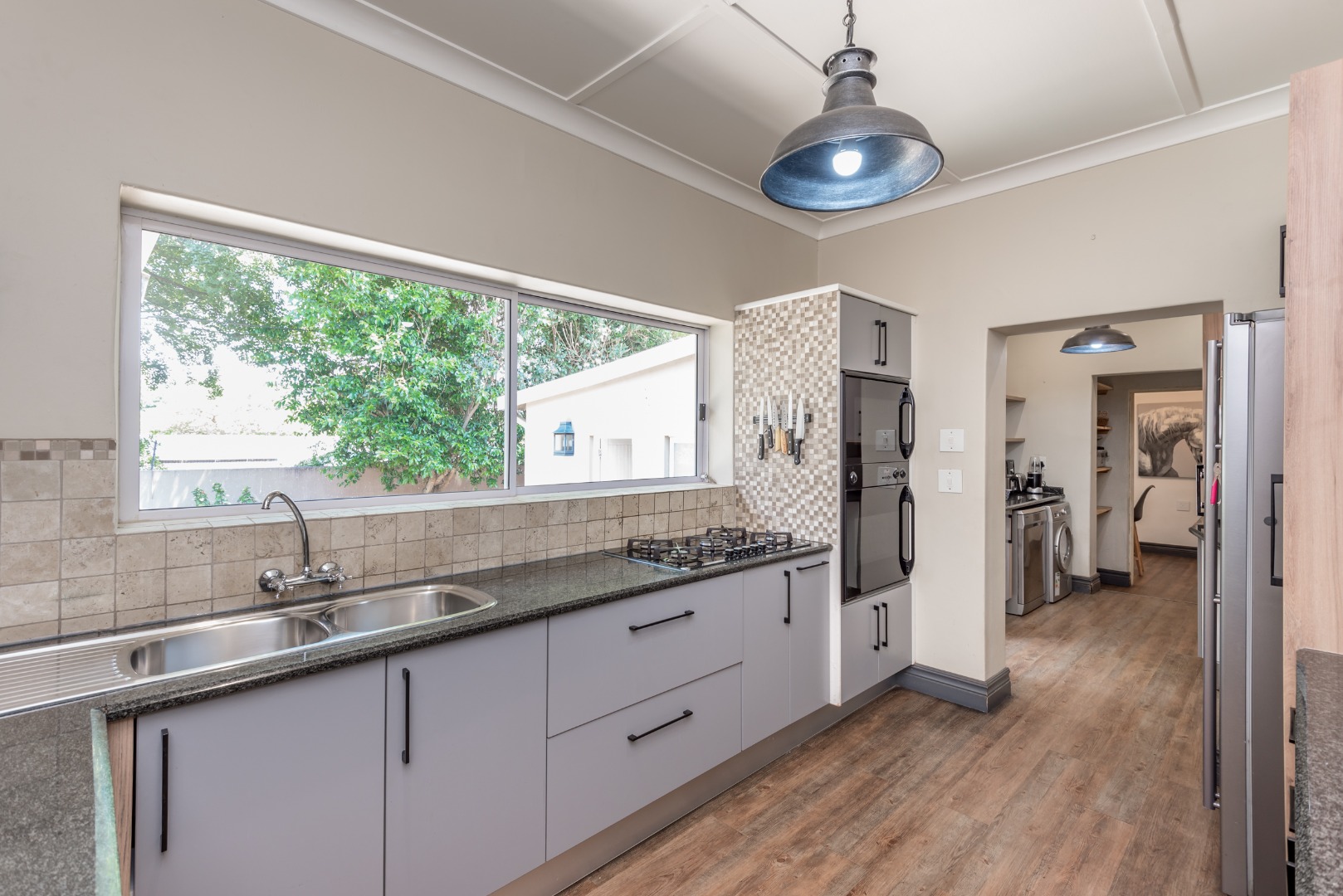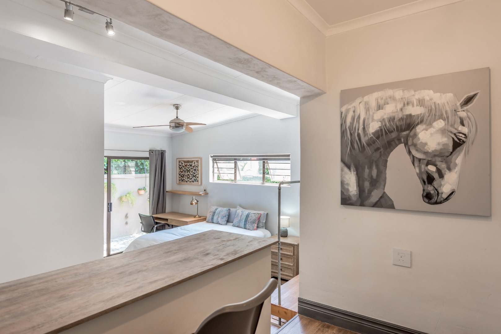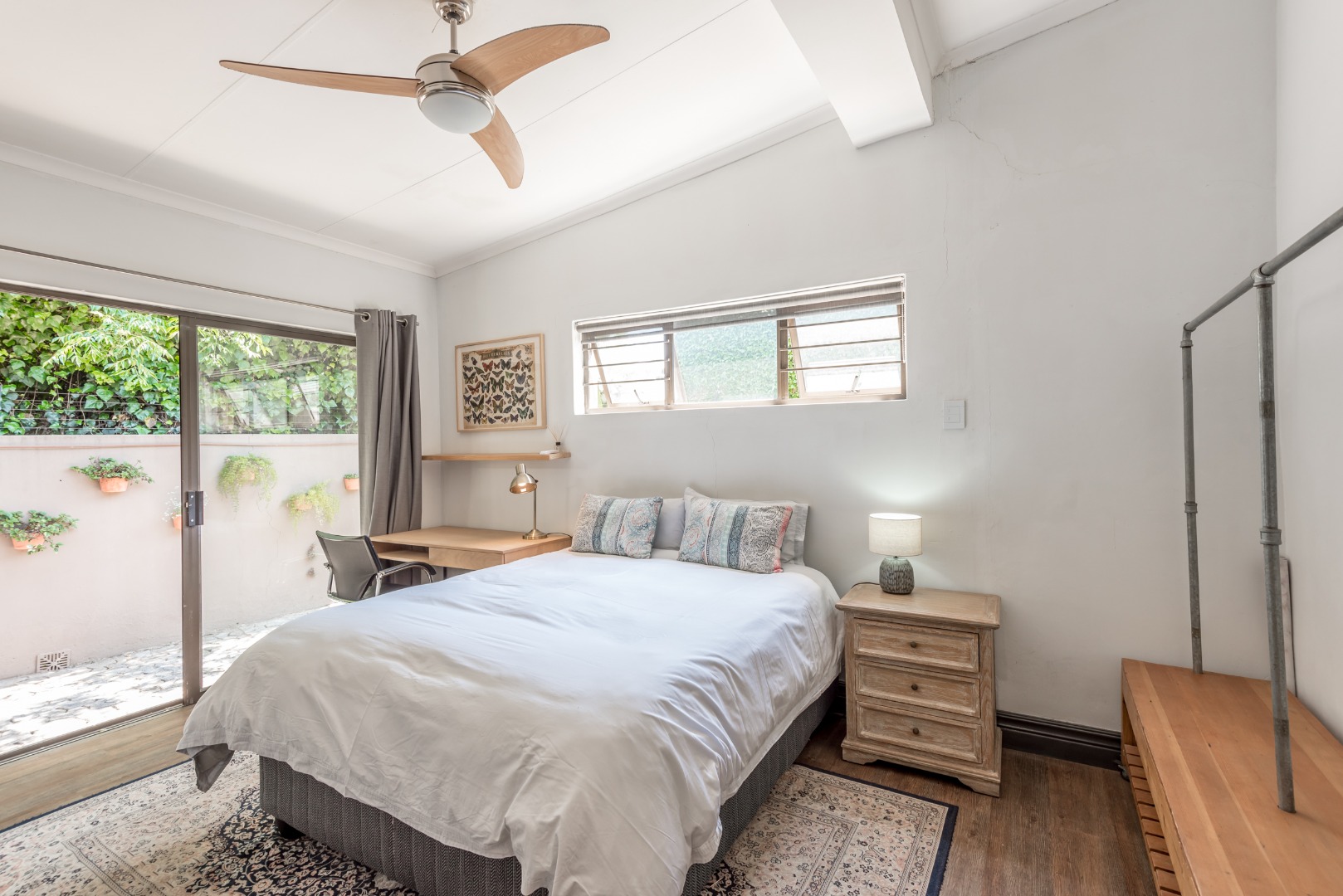 Security is a top priority here, with features like an access gate, alarm system, electric fencing, intercom, CCTV, burglar bars, and security gates, all within a totally walled property in a gated community and a boomed off area. You'll also appreciate the modern touches like air conditioning, a solar geyser, solar panels, a battery inverter for backup power, a generator and an irrigation system to keep your garden lush. Fibre internet connectivity ensures you stay connected.
