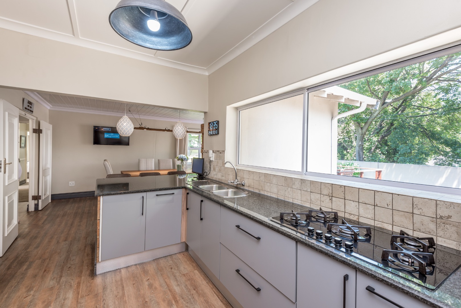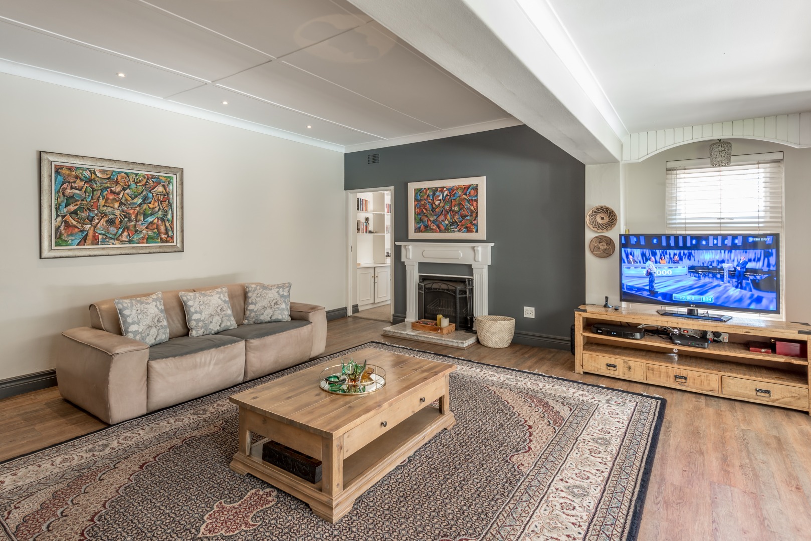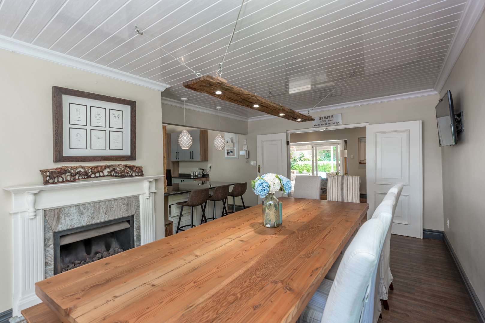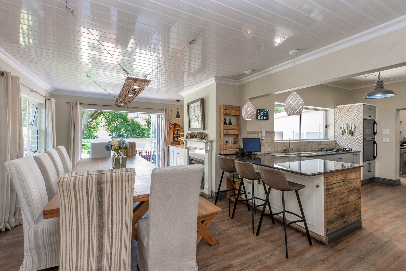 Come and discover this lovely family home with high ceilings, lots of natural light shinning throughout, nestled in a secure, gated community in the heart of Parkmore, Sandton. This suburban gem offers a relaxed lifestyle with plenty of space for everyone. As you step inside, you'll find a welcoming open-plan layout that connects the living areas seamlessly. The home features a comfortable lounge with a cozy fireplace for those cooler evenings, and a dedicated 12 to 14 seater dining room that also is blessed with a gas fireplace overlooking an outside decked area and garden that connects the indoor and outdoor spaces beautifully, perfect for family meals or entertaining friends. You'll also love the built-in bar, ideal for mixing your favourite drinks whilst watching all the favourable sports your heart desires on TV . A massive covered patio that overlooks a sparkling swimming pool and a well kept manicured garden The kitchen is well-equipped with a pantry a breakfast nook and a scullery, making meal prep a breeze, and there's even a dedicated study for when you need to focus.