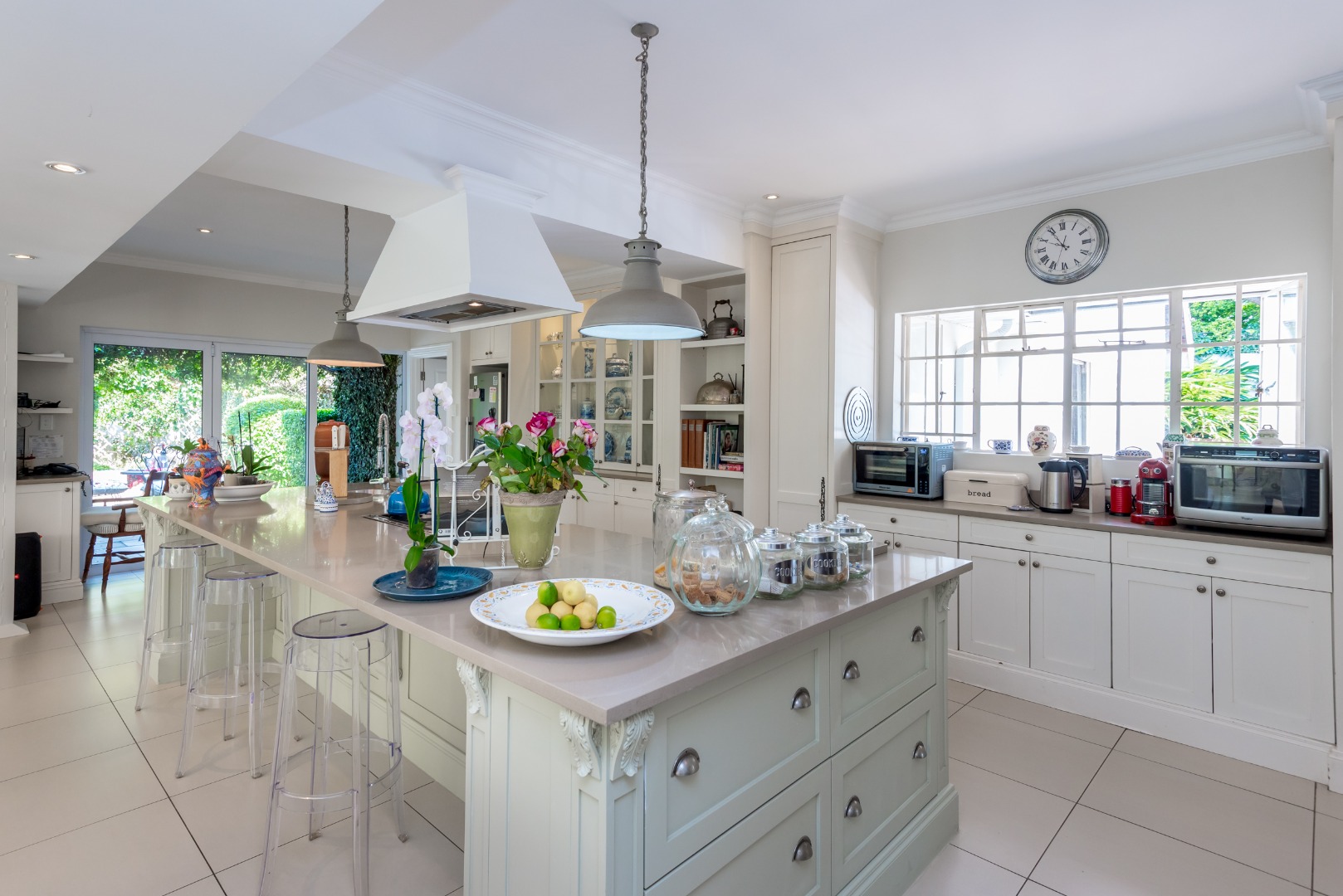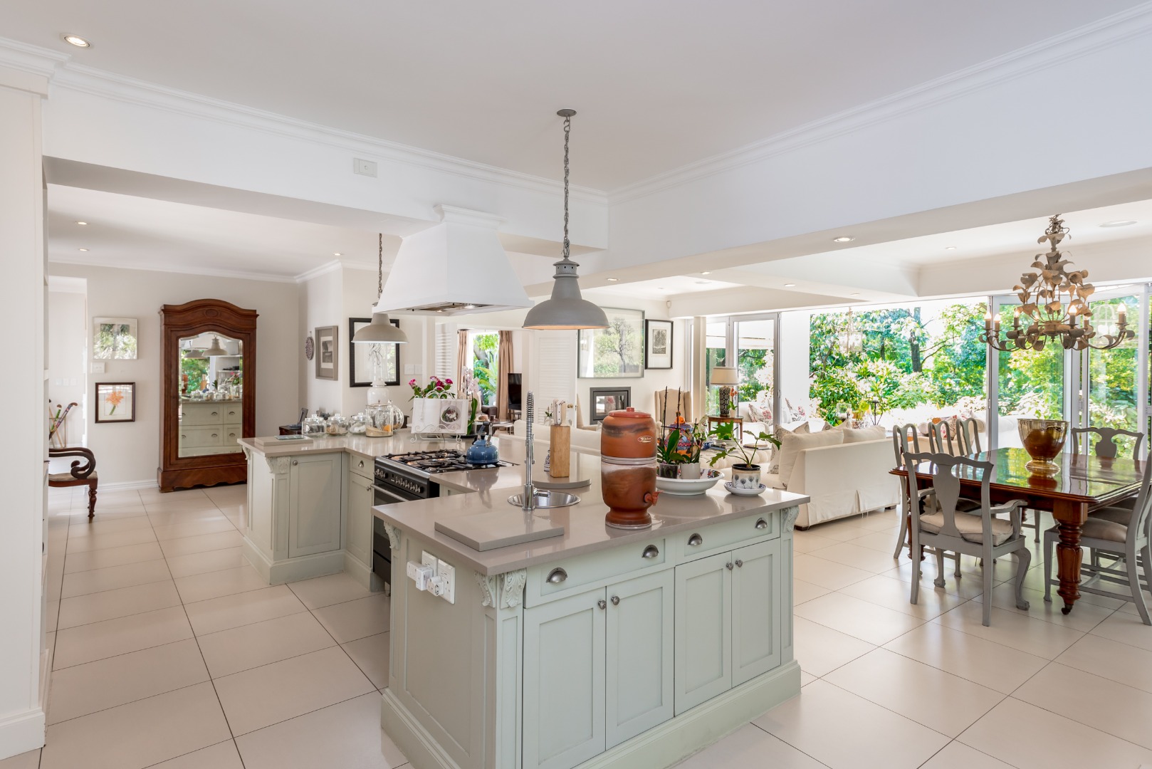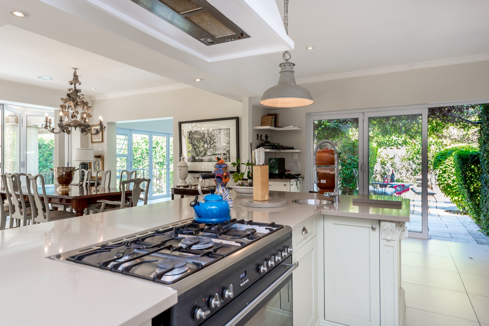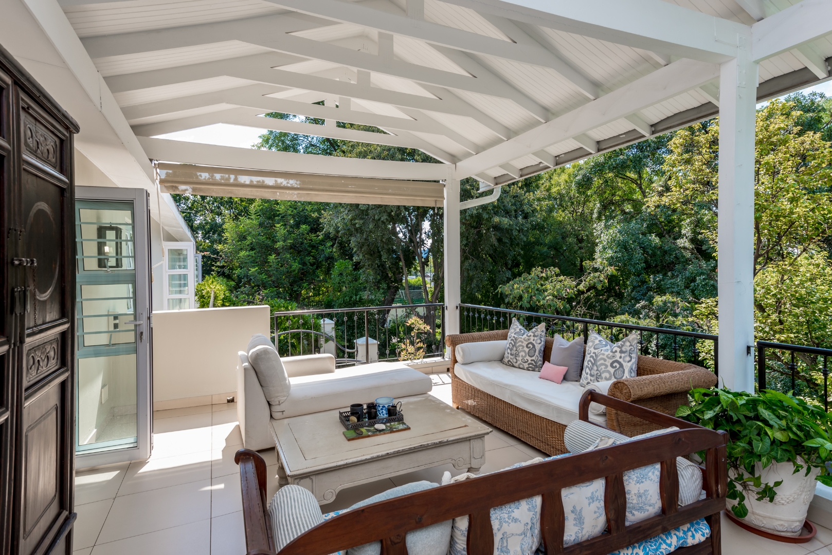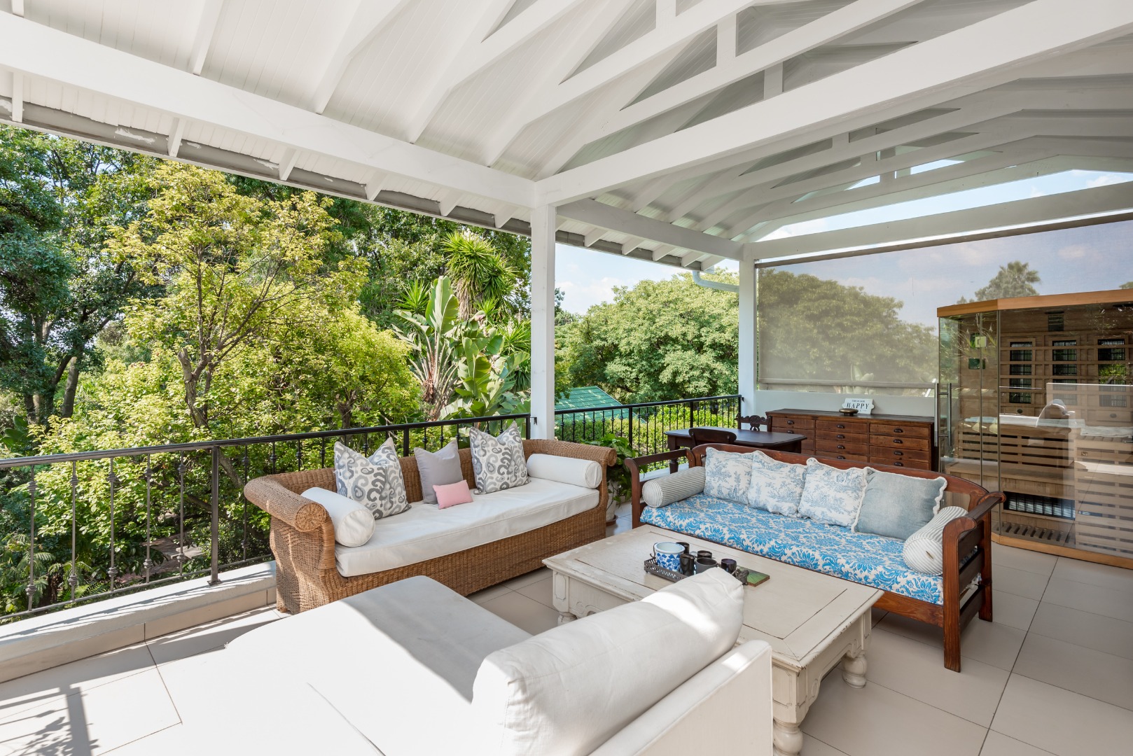 Surrounded by tall lush trees, and rolling greenery, the home enjoys beautiful views of blue skies and tranquil garden vistas. the sparkling pool the Boma, the trampoline are all situated in an awesome manicured garden, ideal for invites long evenings of entertainment under the stars or children playing freely in a secure and expansive setting.