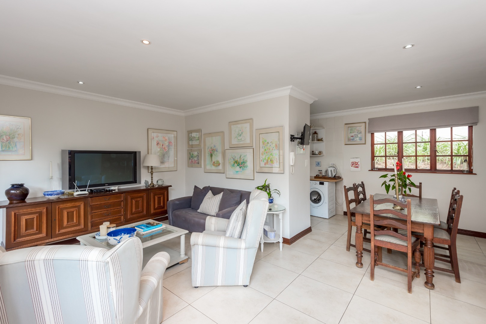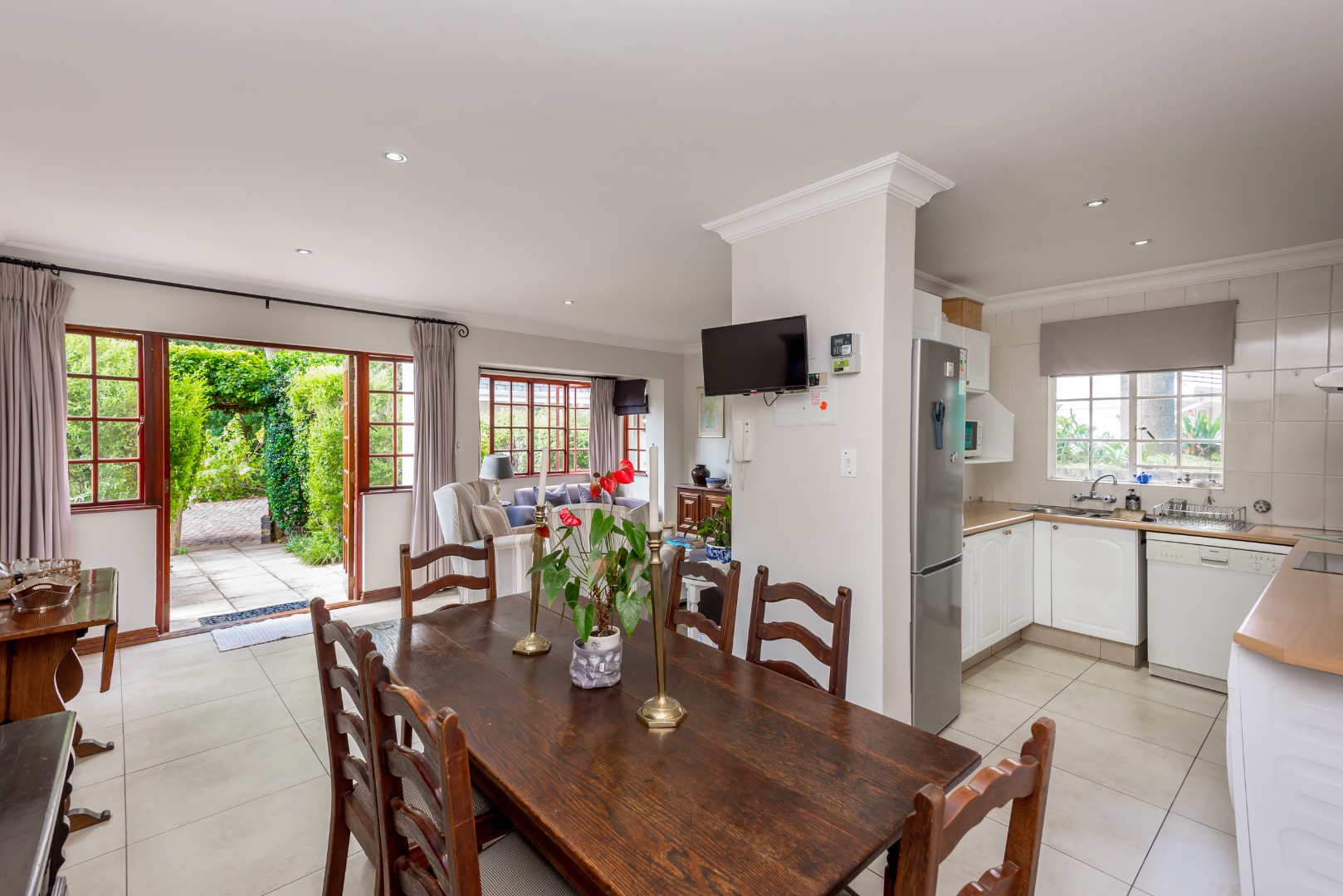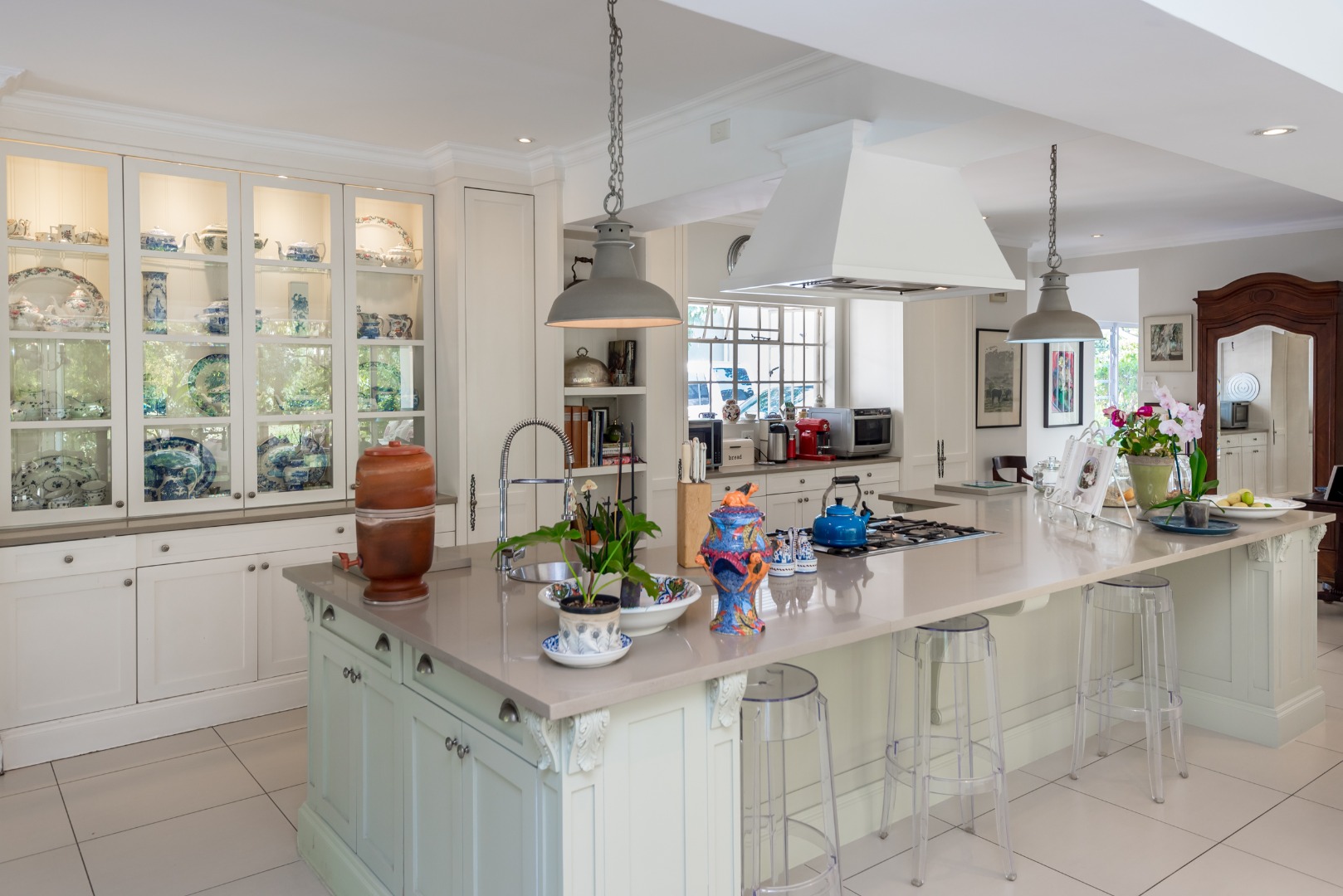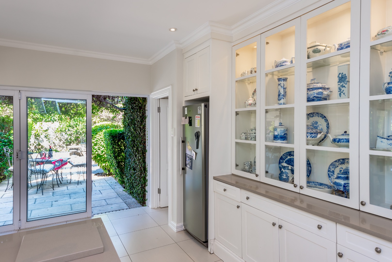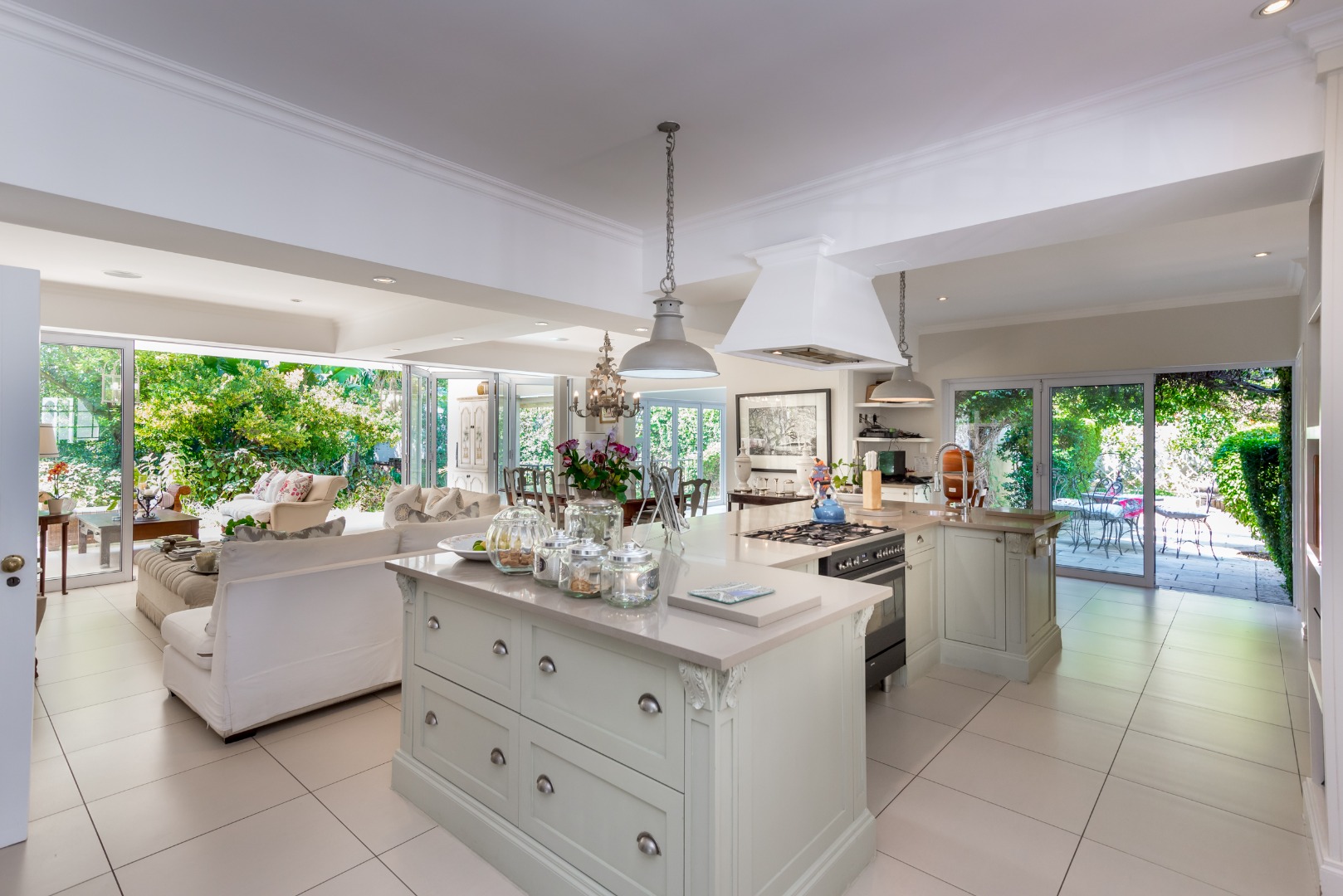 Surrounded by tall lush trees, and rolling greenery, the home enjoys beautiful views of blue skies and tranquil garden vistas. the sparkling pool the Boma, the trampoline are all situated in an awesome manicured garden, ideal for invites long evenings of entertainment under the stars or children playing freely in a secure and expansive setting.